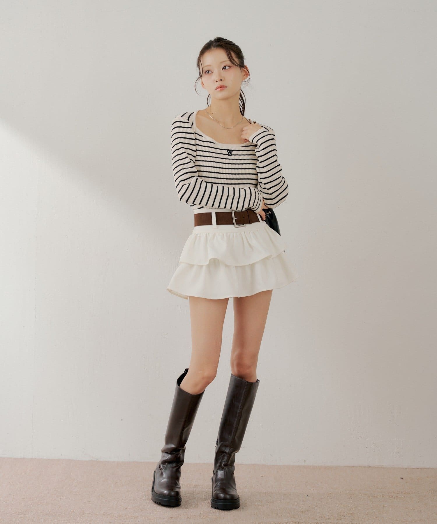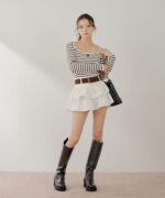 ・足元はロングブーツで合わせるとスタイルアップも叶います。