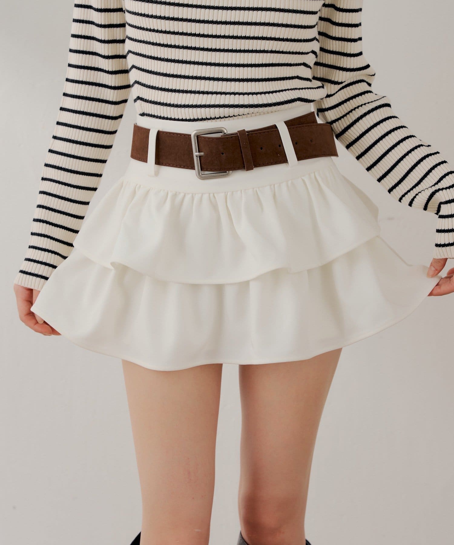 大人可愛いを叶える、ベルト付ローウエストティアードスカート登場!