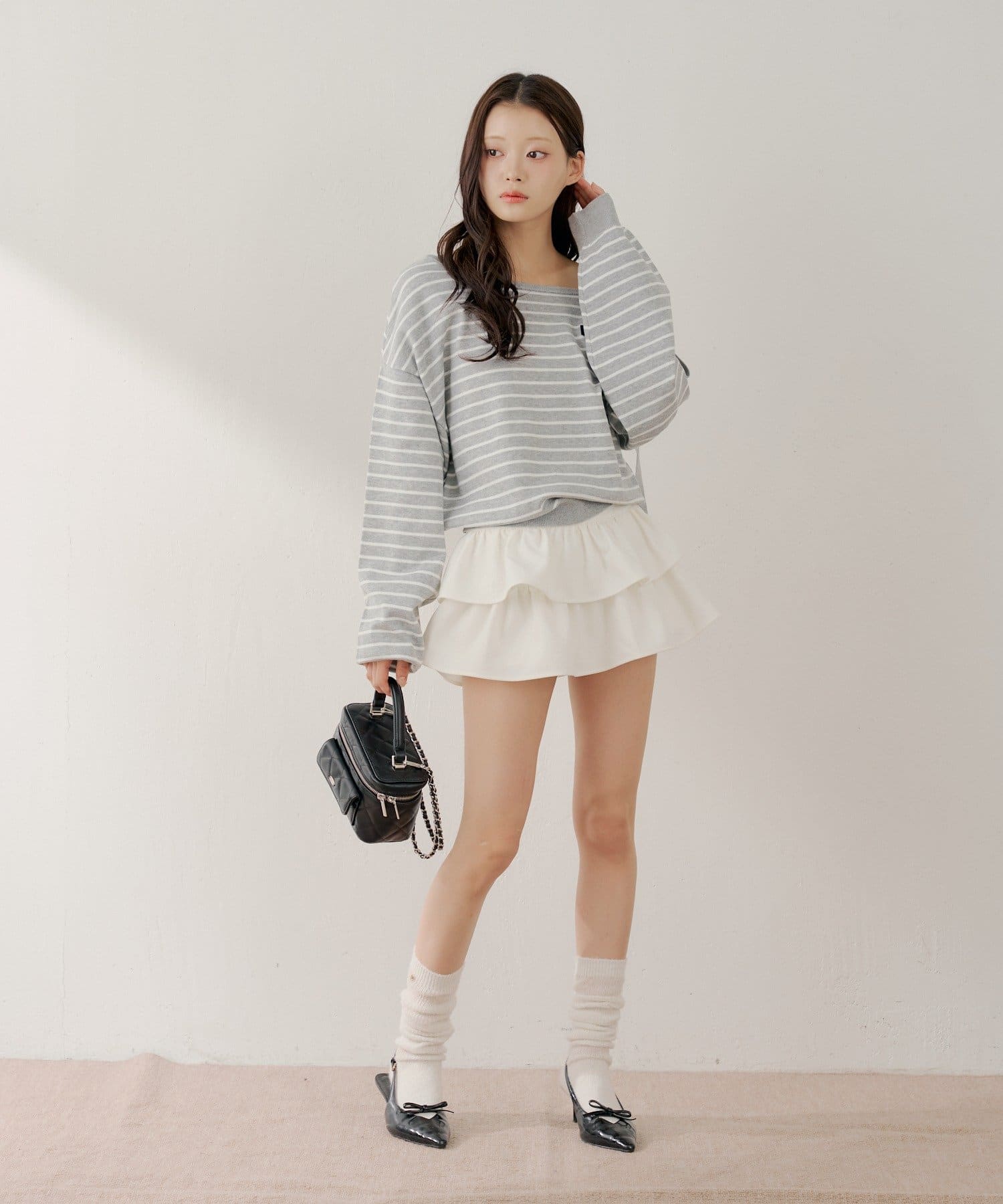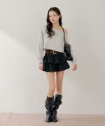 ・ニットやブラウスと合わせると、フェミニンなスタイルに仕上がります。