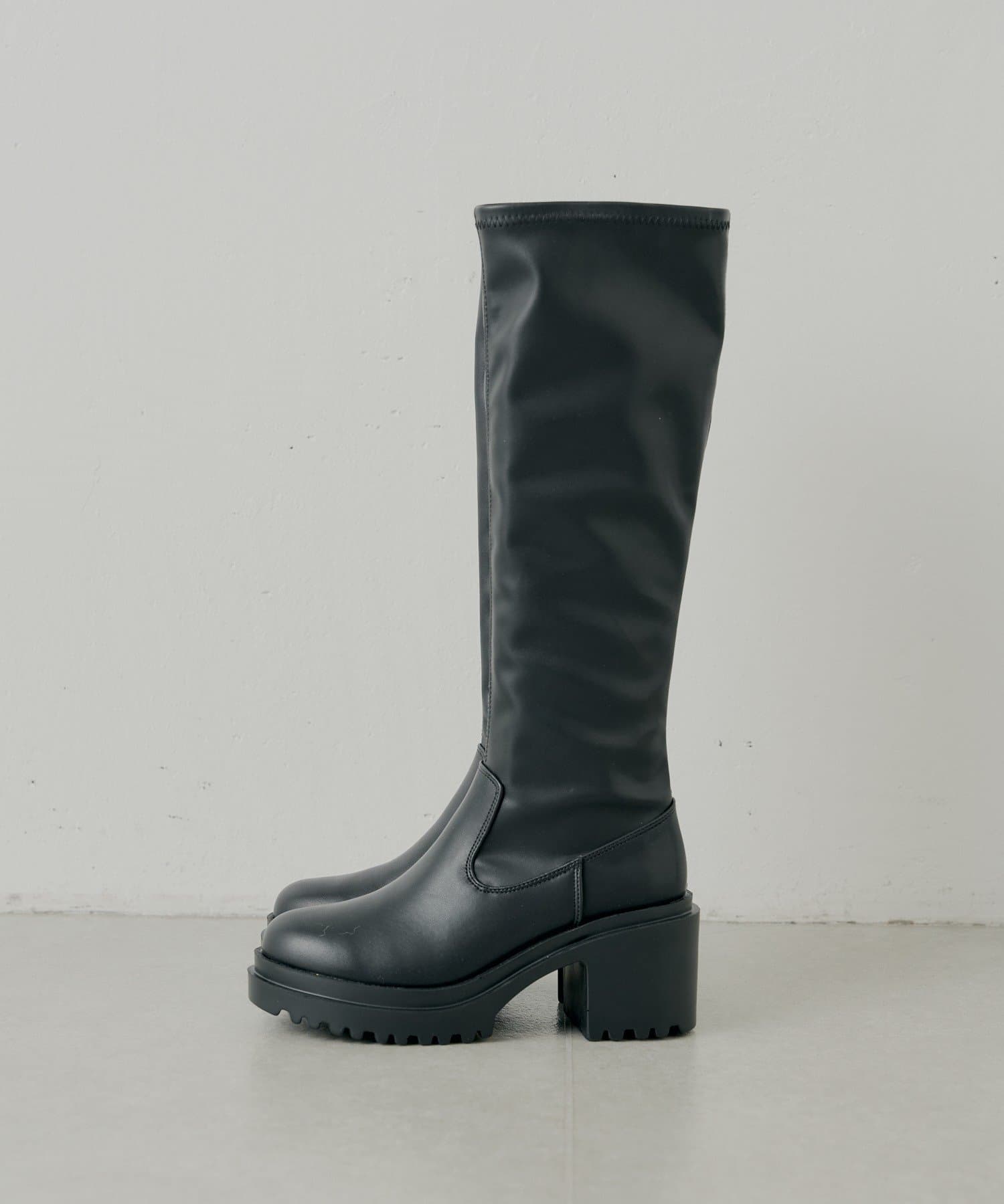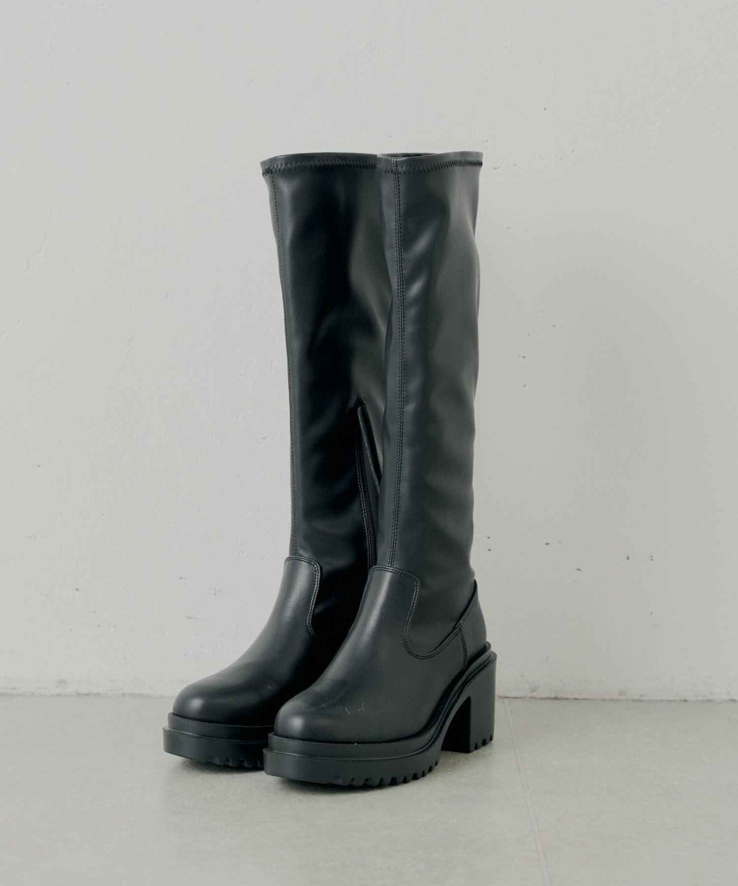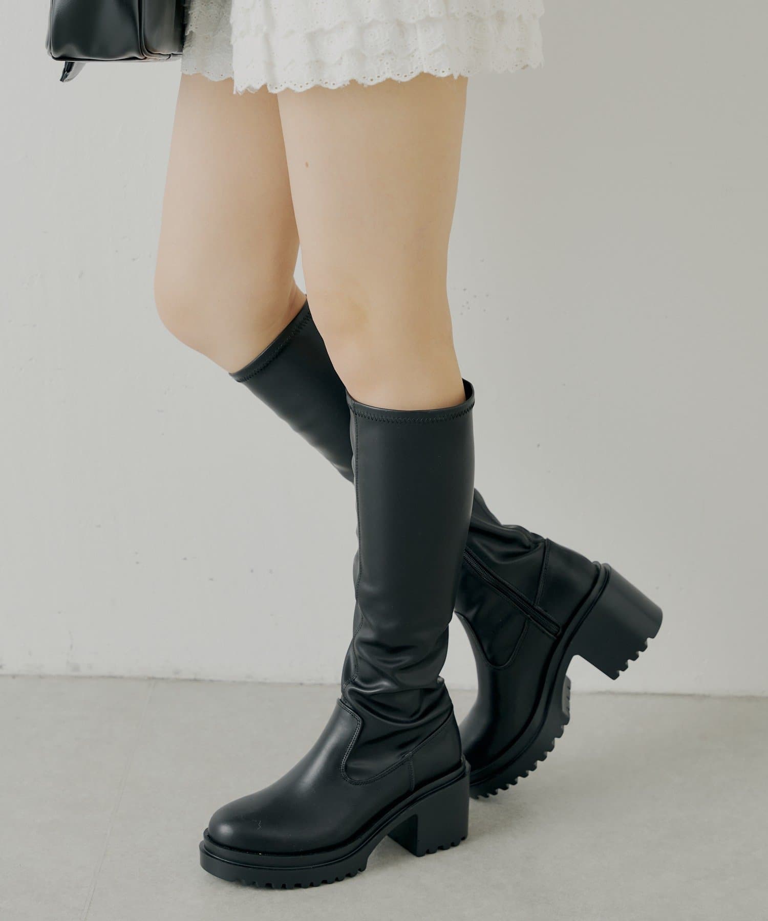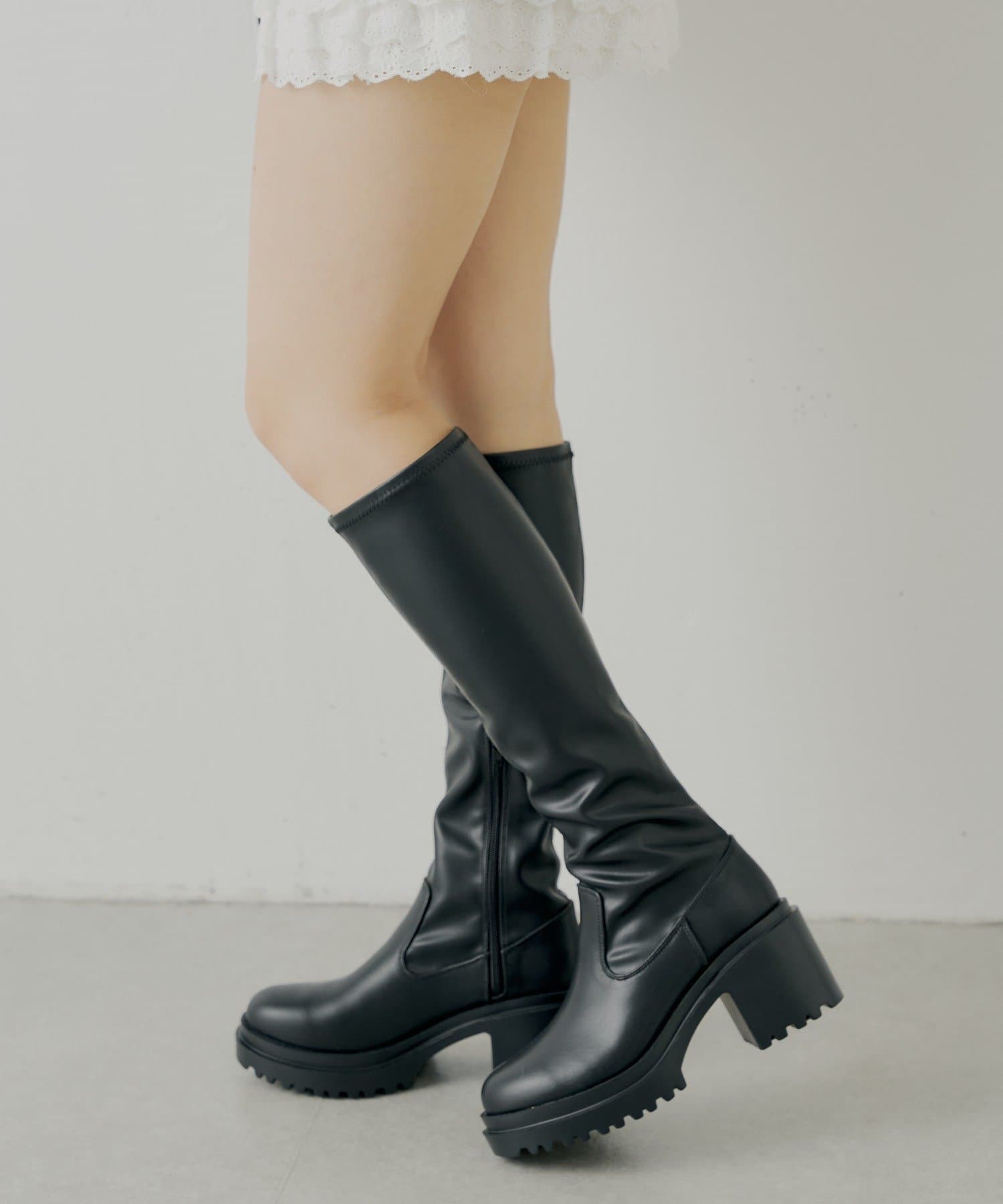 スタイルアップと履き心地を両立した厚底チャンキーストレッチロングブーツ