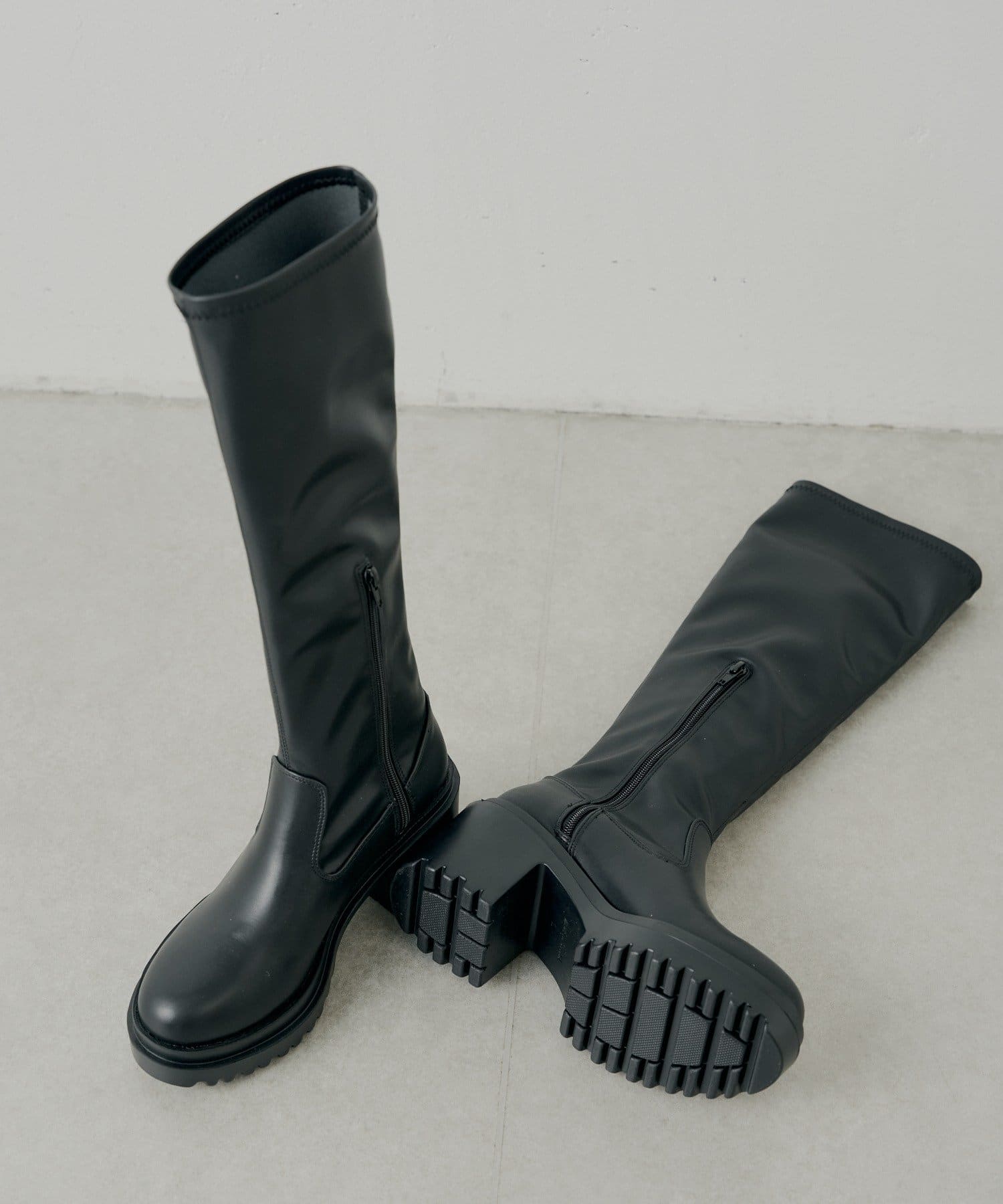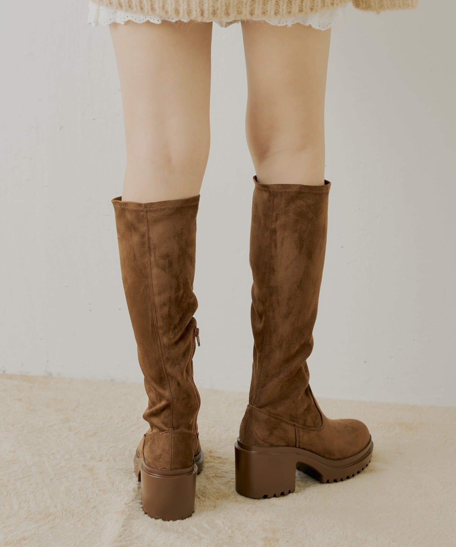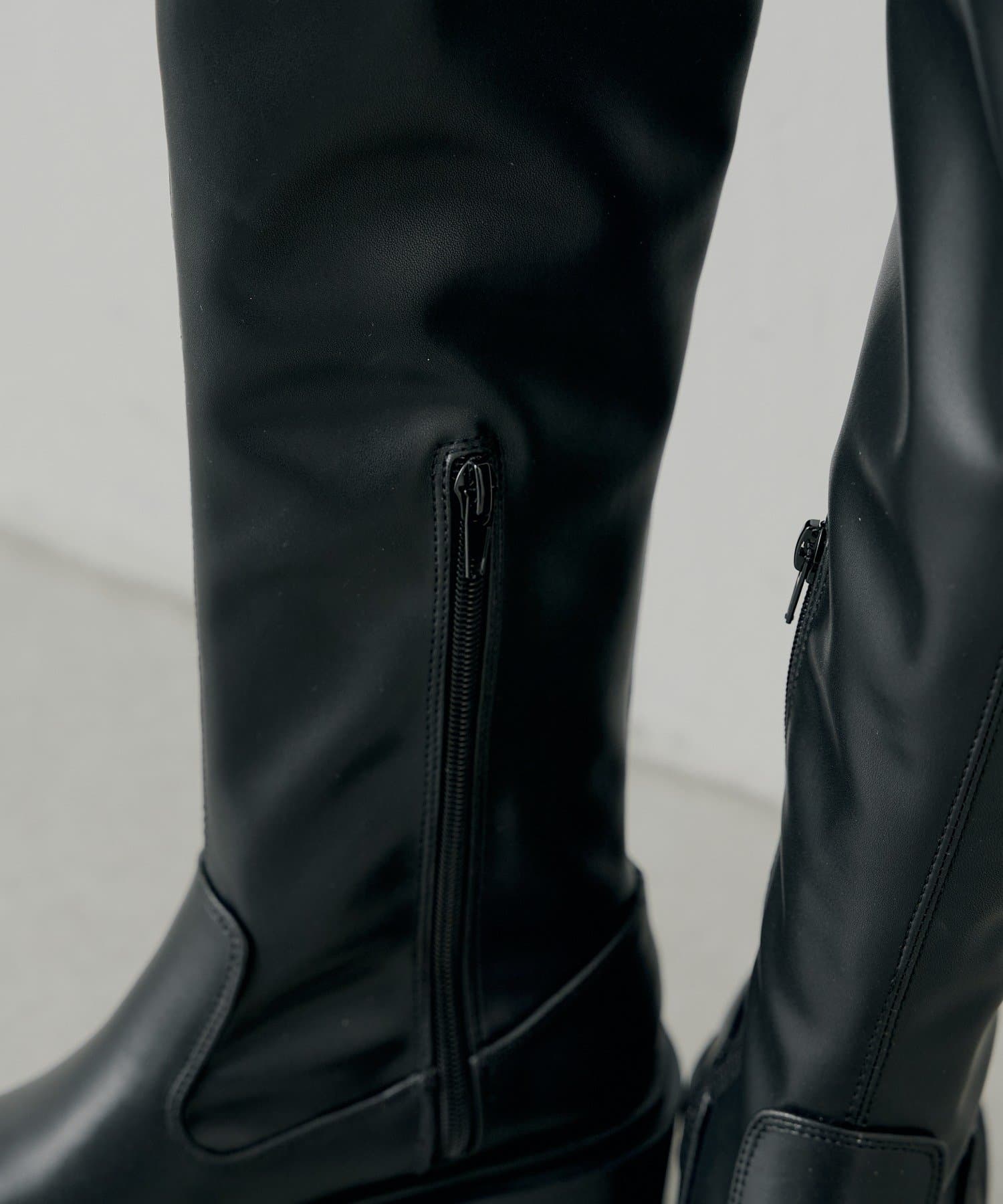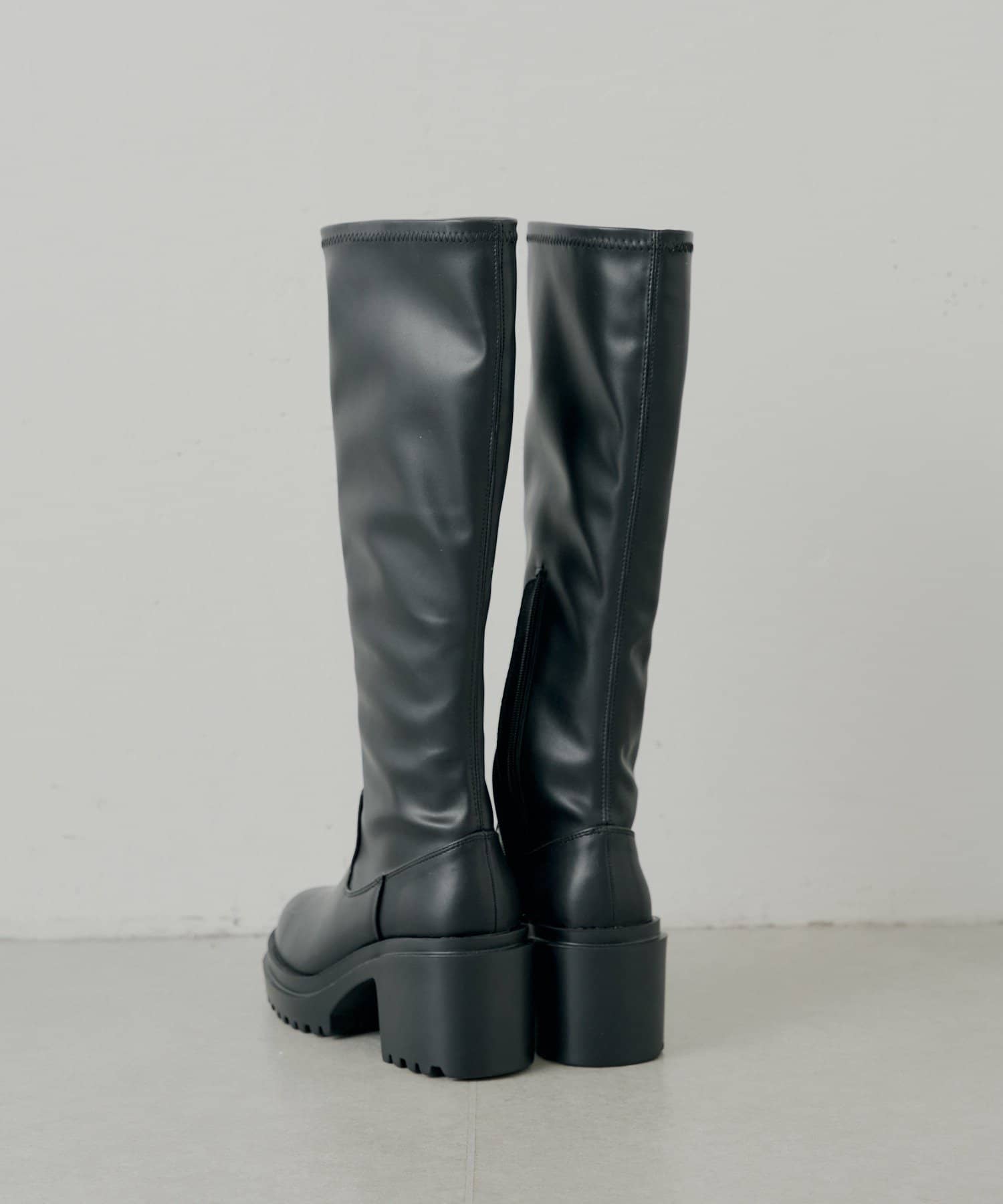 スタイルアップと履き心地を両立した厚底チャンキーストレッチロングブーツ