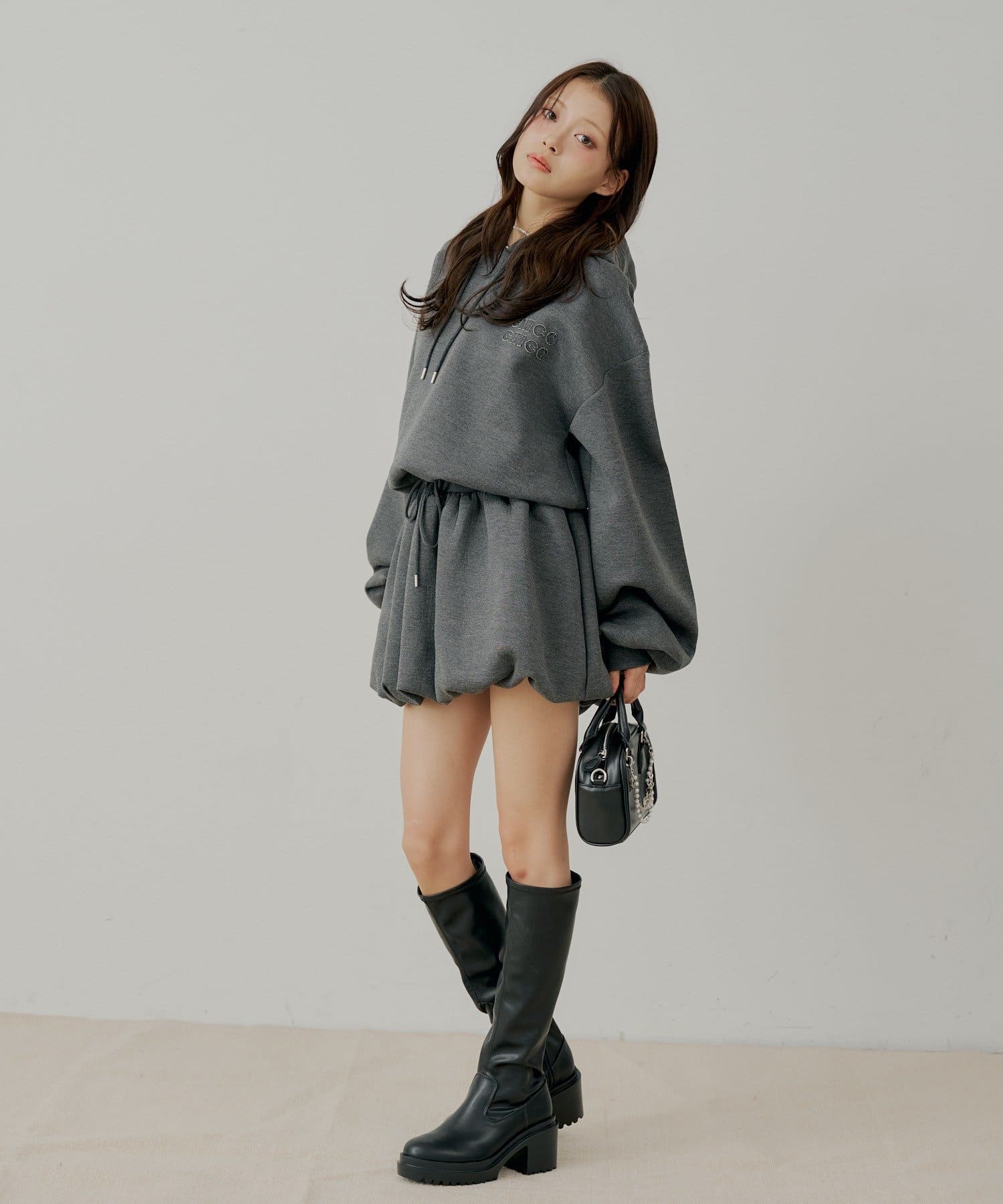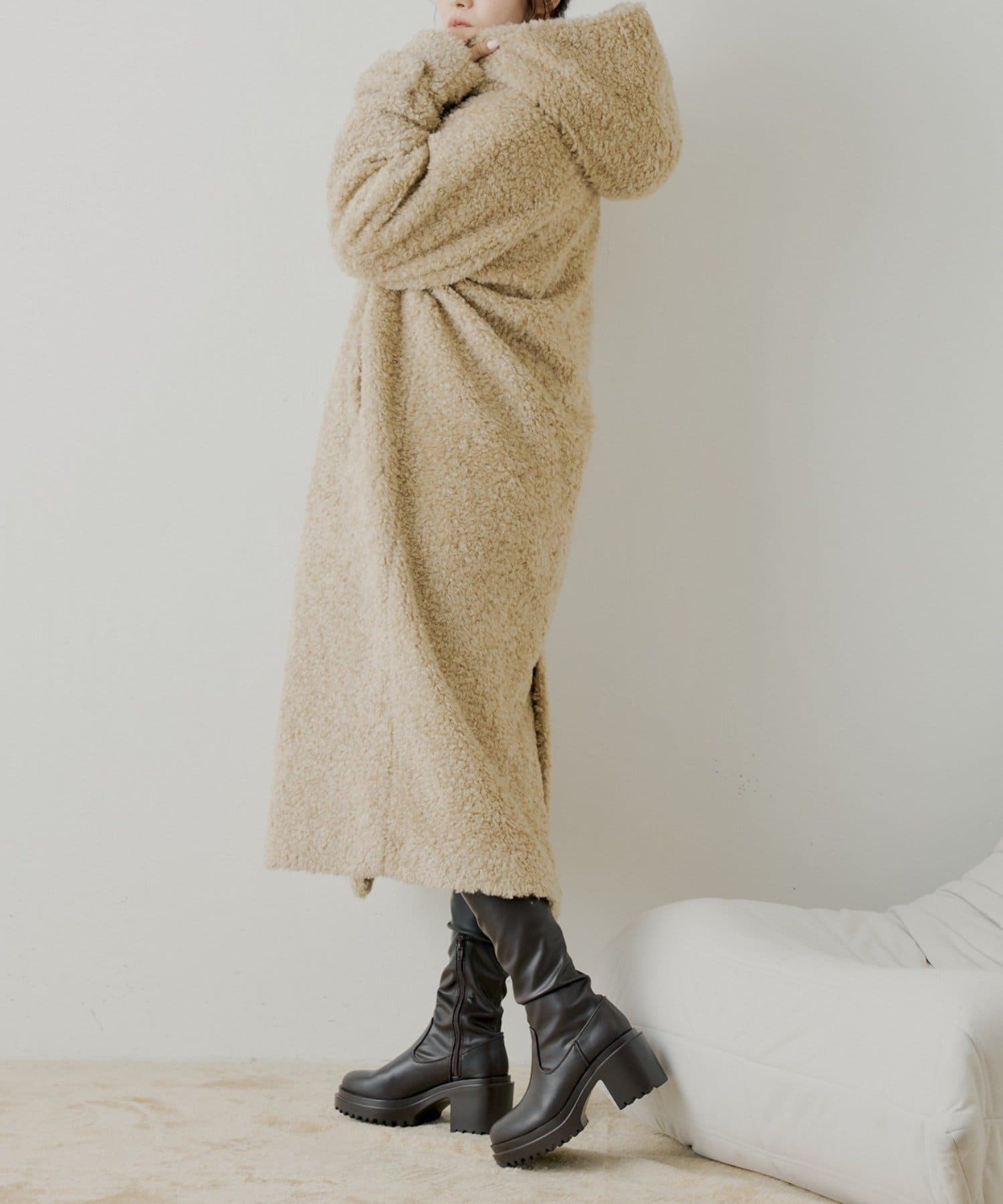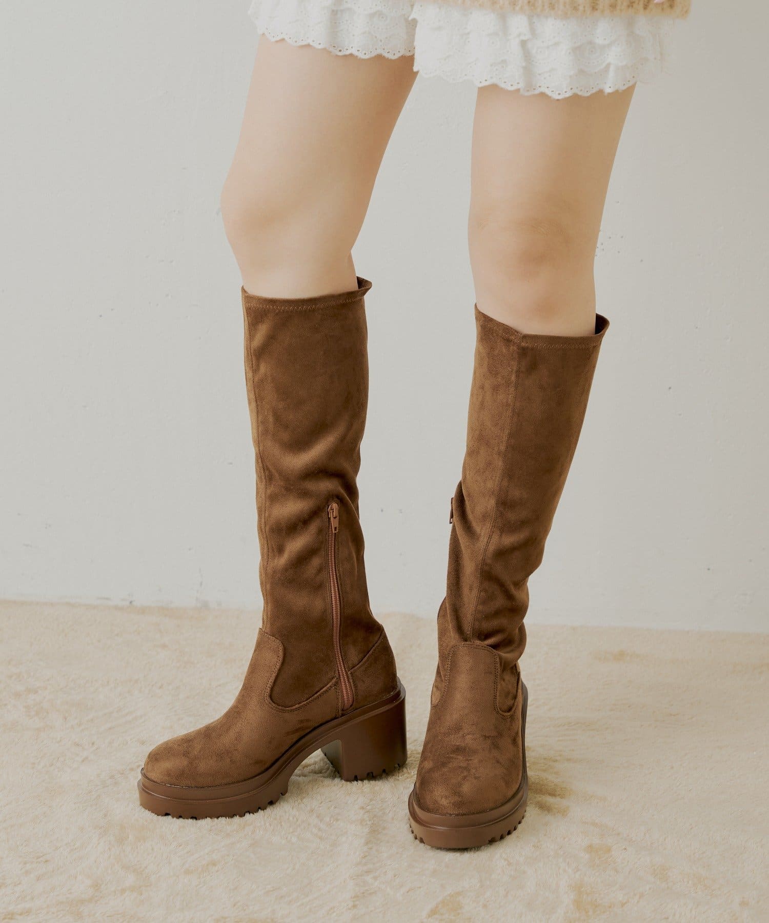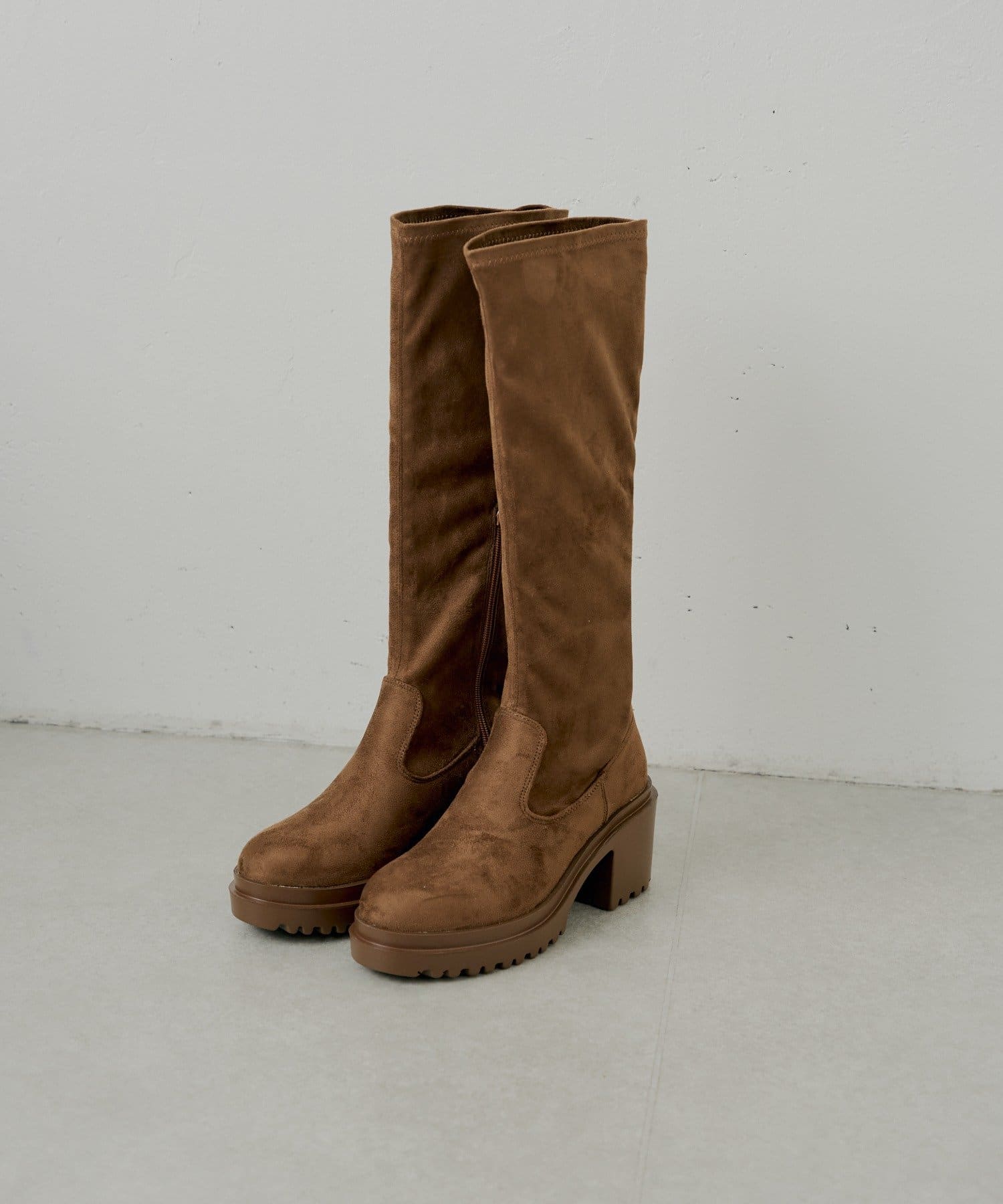 スタイルアップと履き心地を両立した厚底チャンキーストレッチロングブーツ