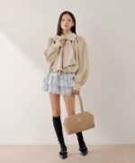 ・ミニボトムと合わせるとフェミニンなスタイルに仕上がります。