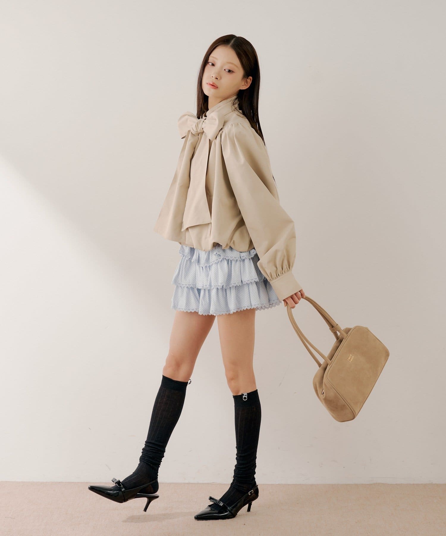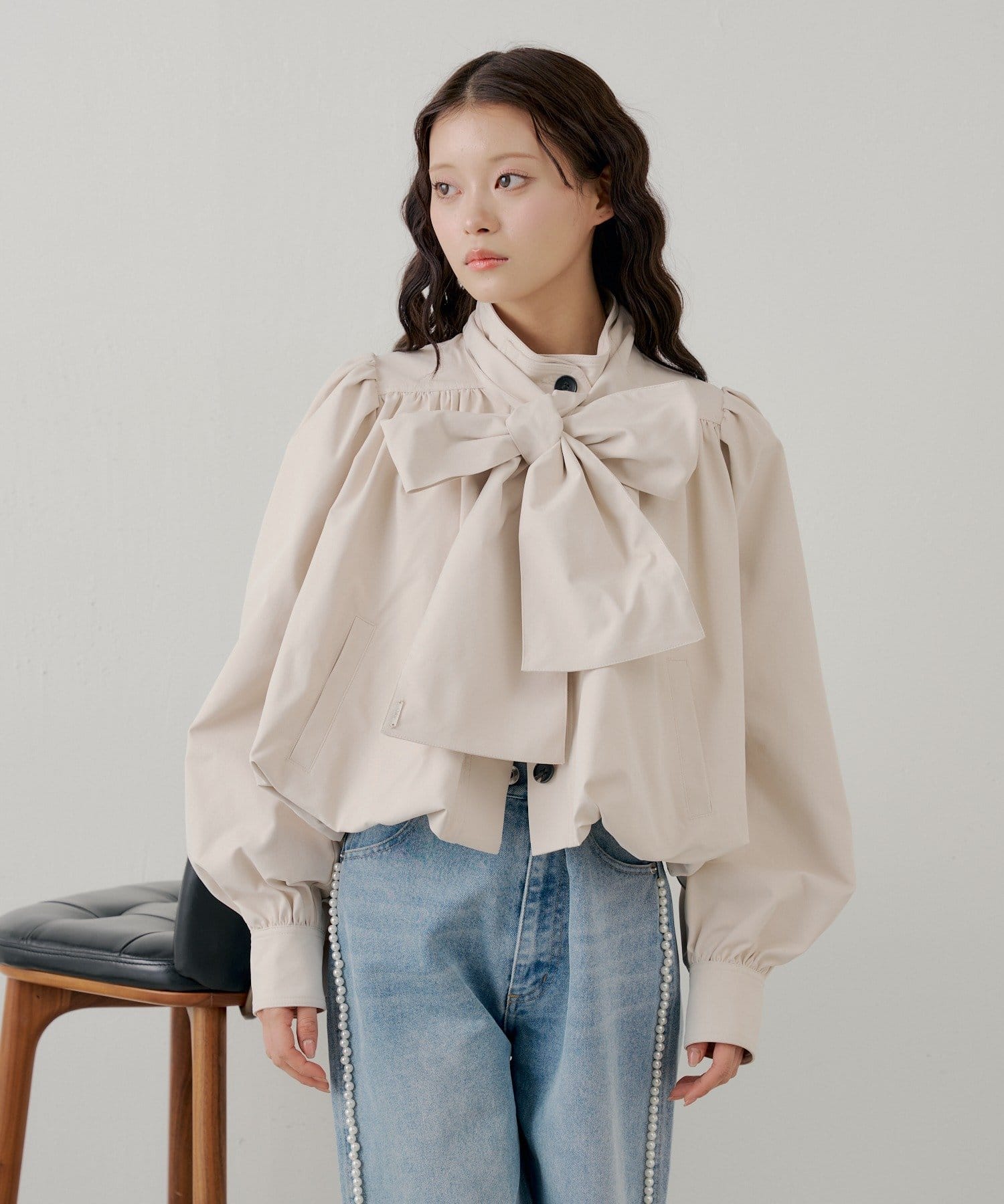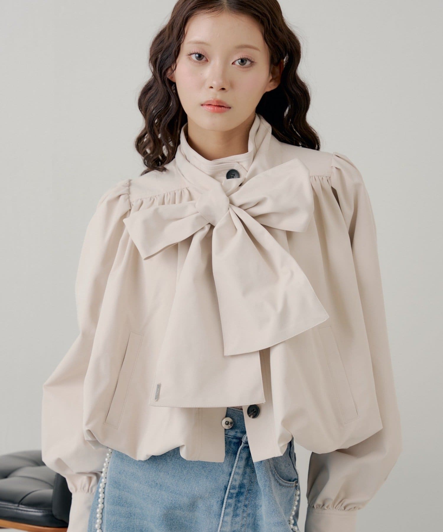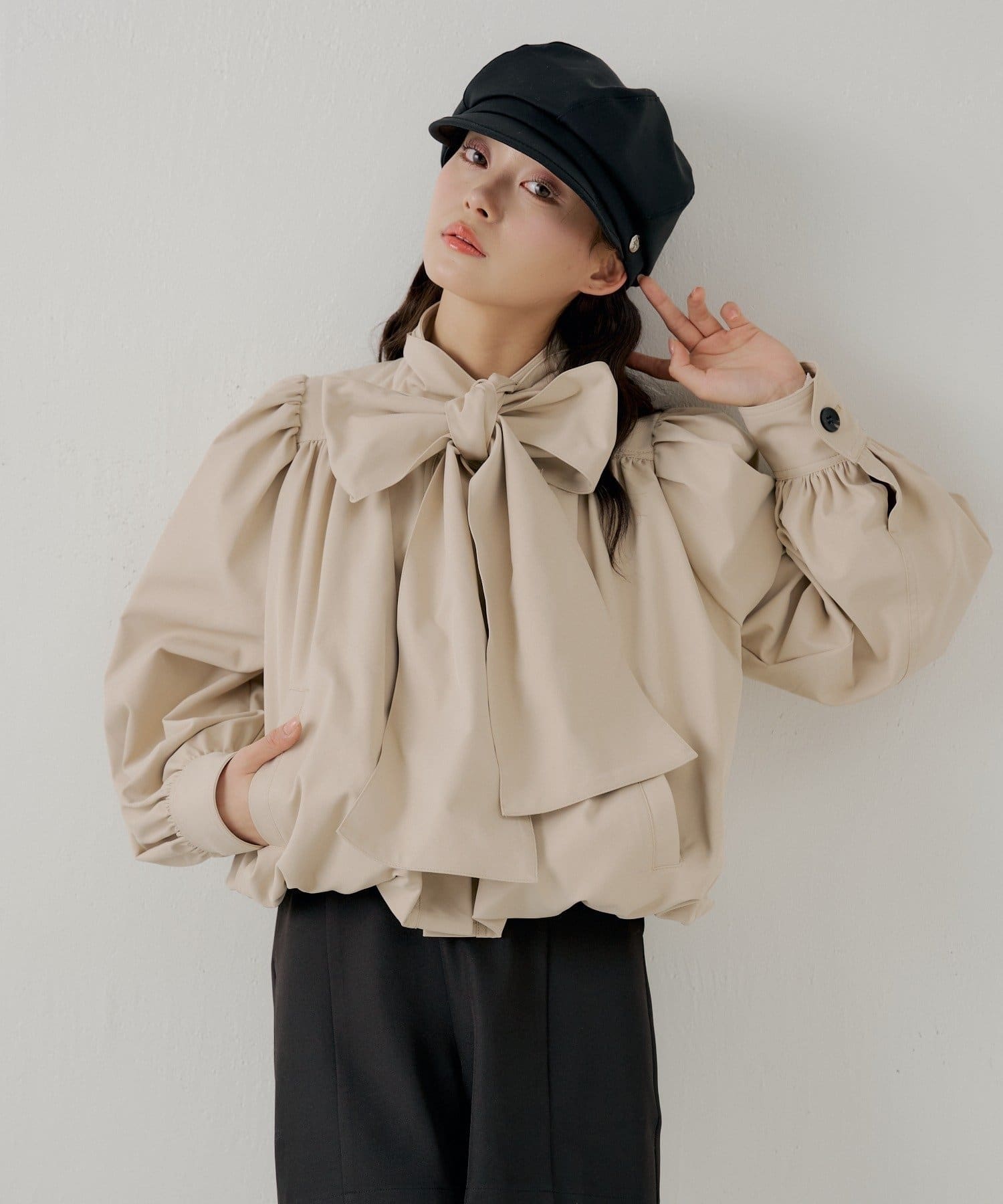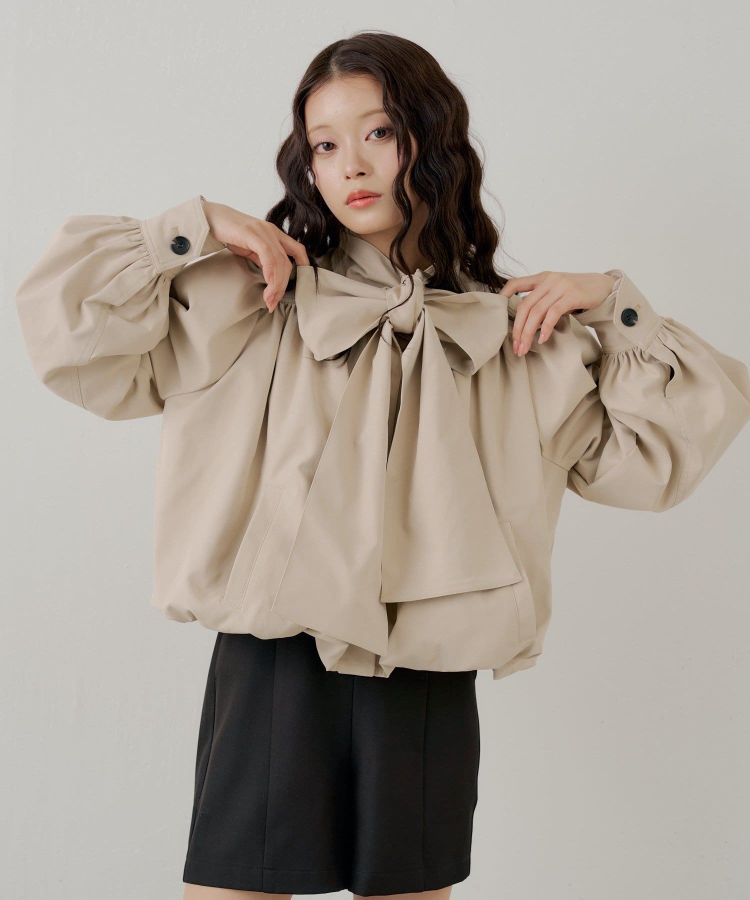 ・目を惹く大きなリボンとふんわりとしたバルーンシルエットが、他にはないトレンチコート。