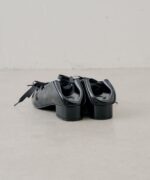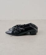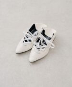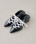 ・シャープなポインテッドトゥに、甲部分のレースアップディテールを合わせることで