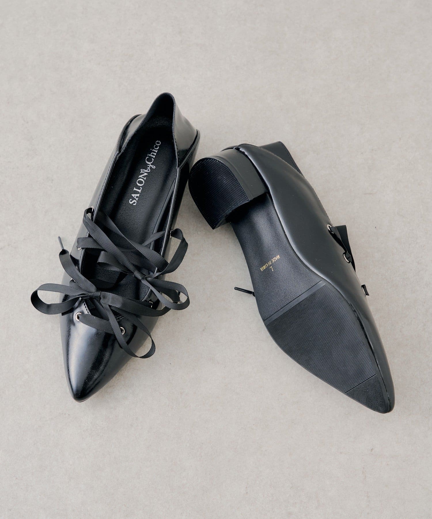 ・細めのリボンが足元に華やかさをプラスし、シンプルなコーディネートのアクセントにもぴったり。