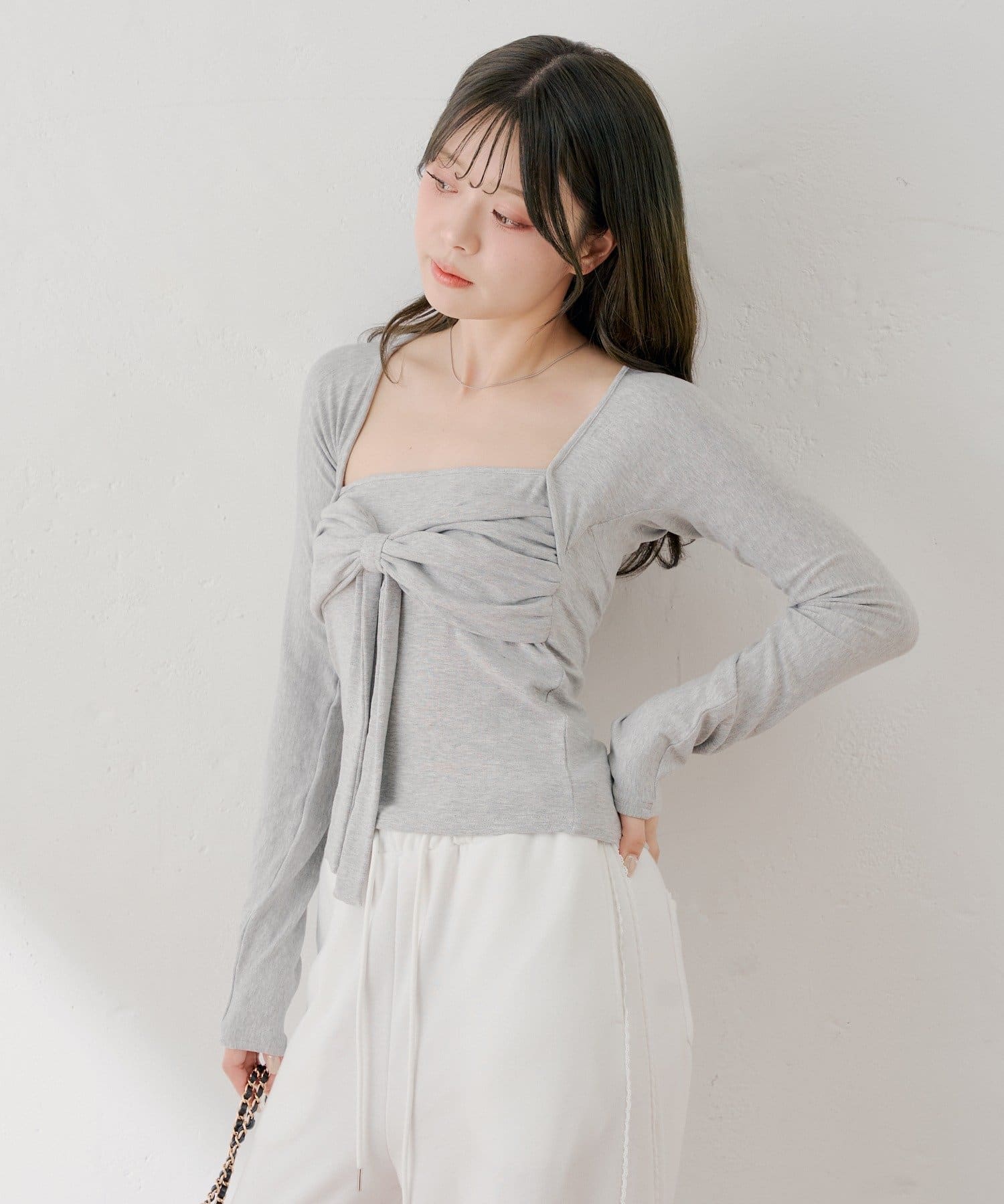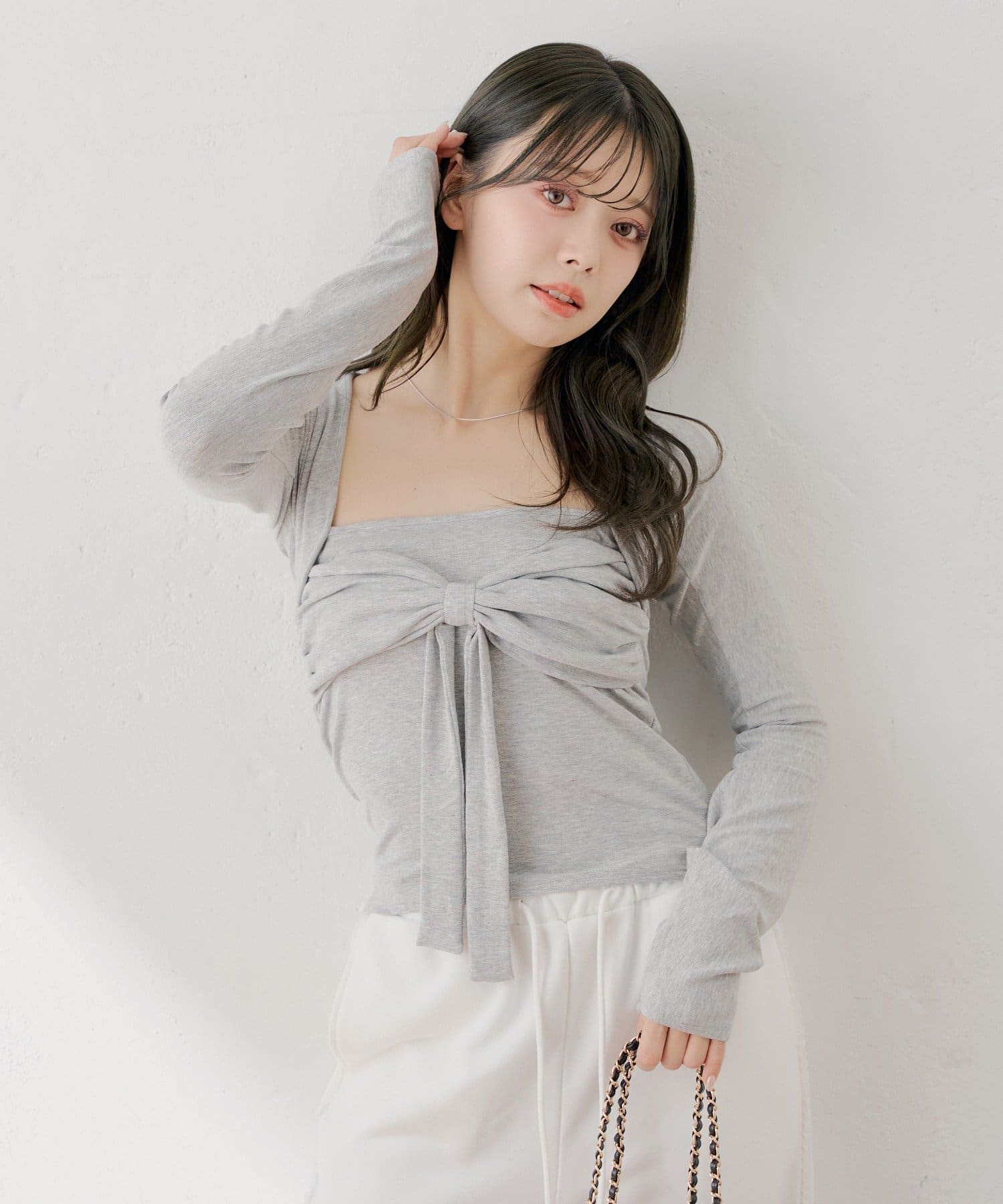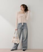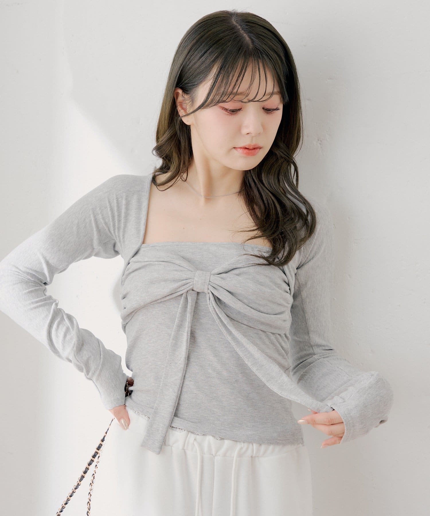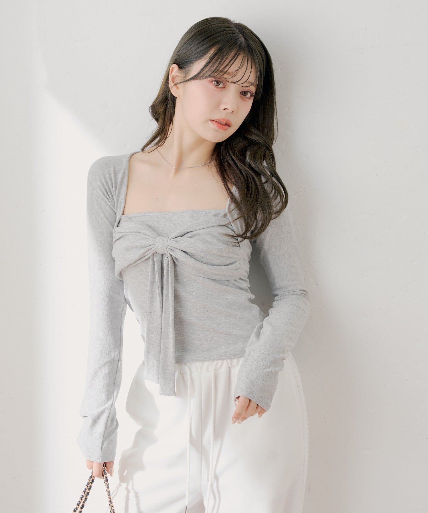 ・胸元のリボンが、フェミニンな印象をプラスしてくれます。