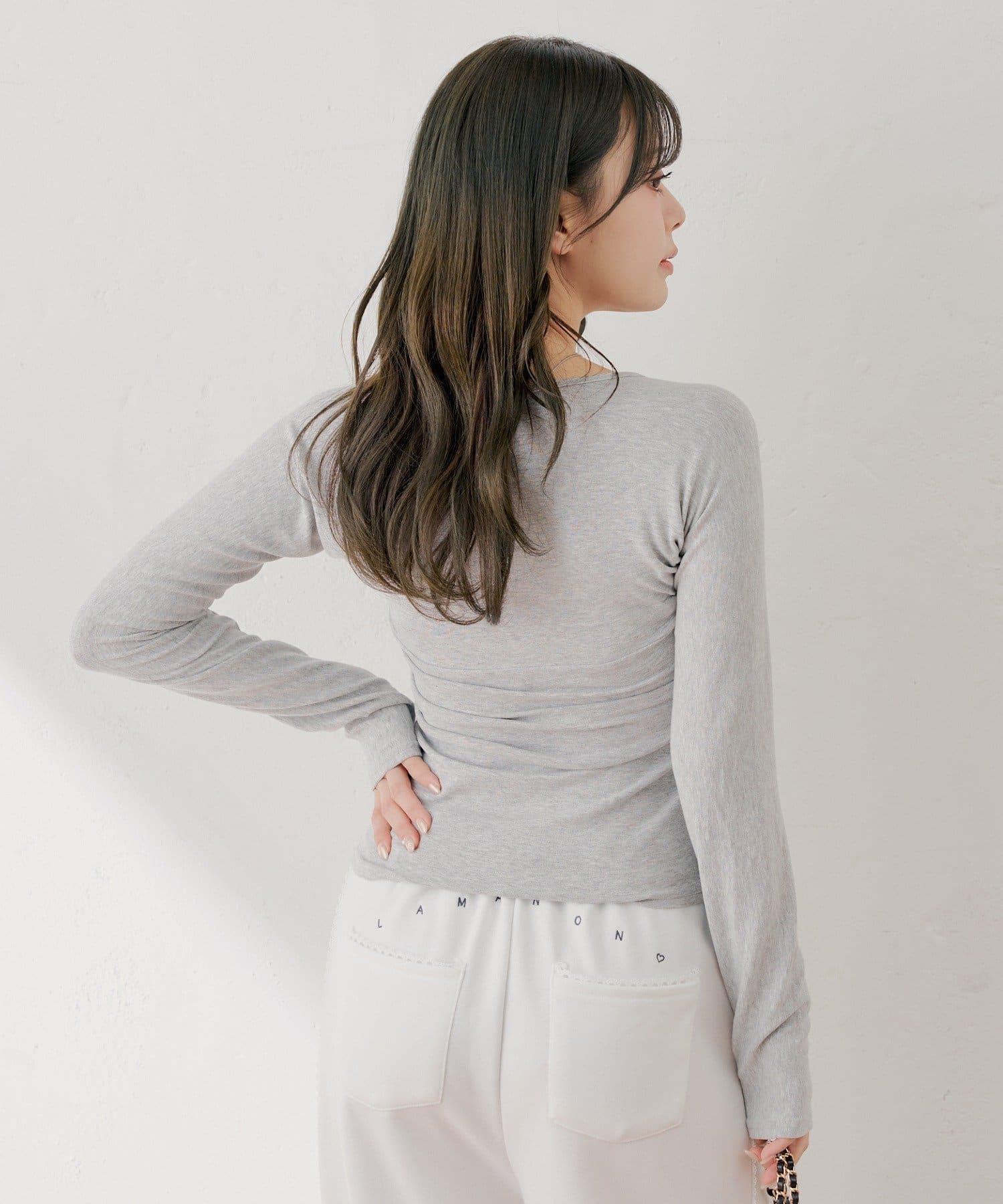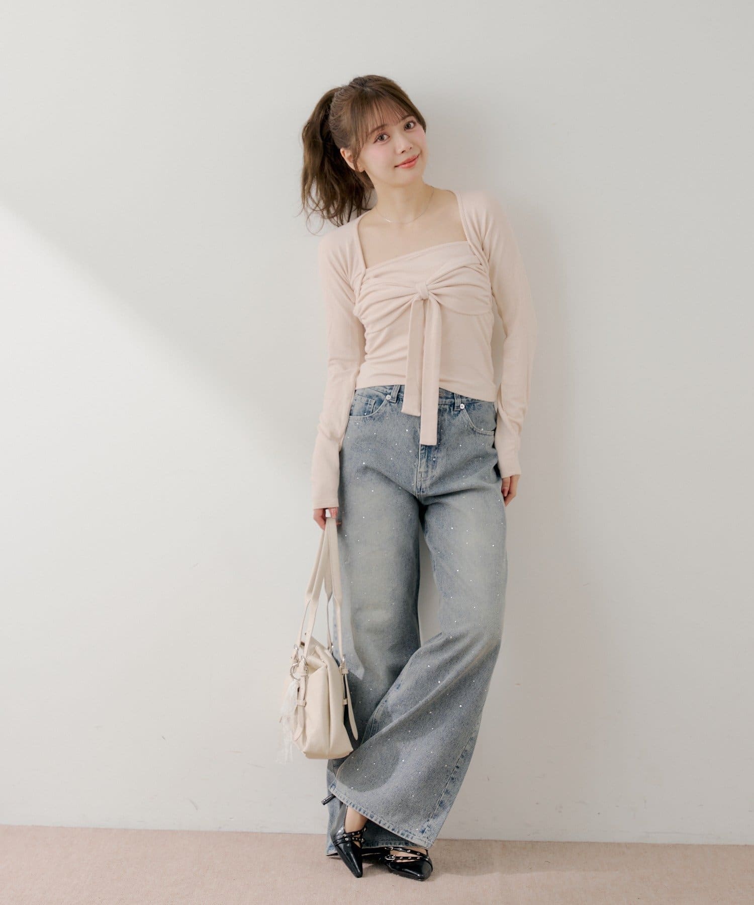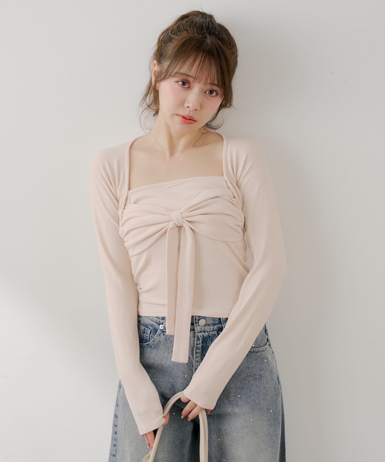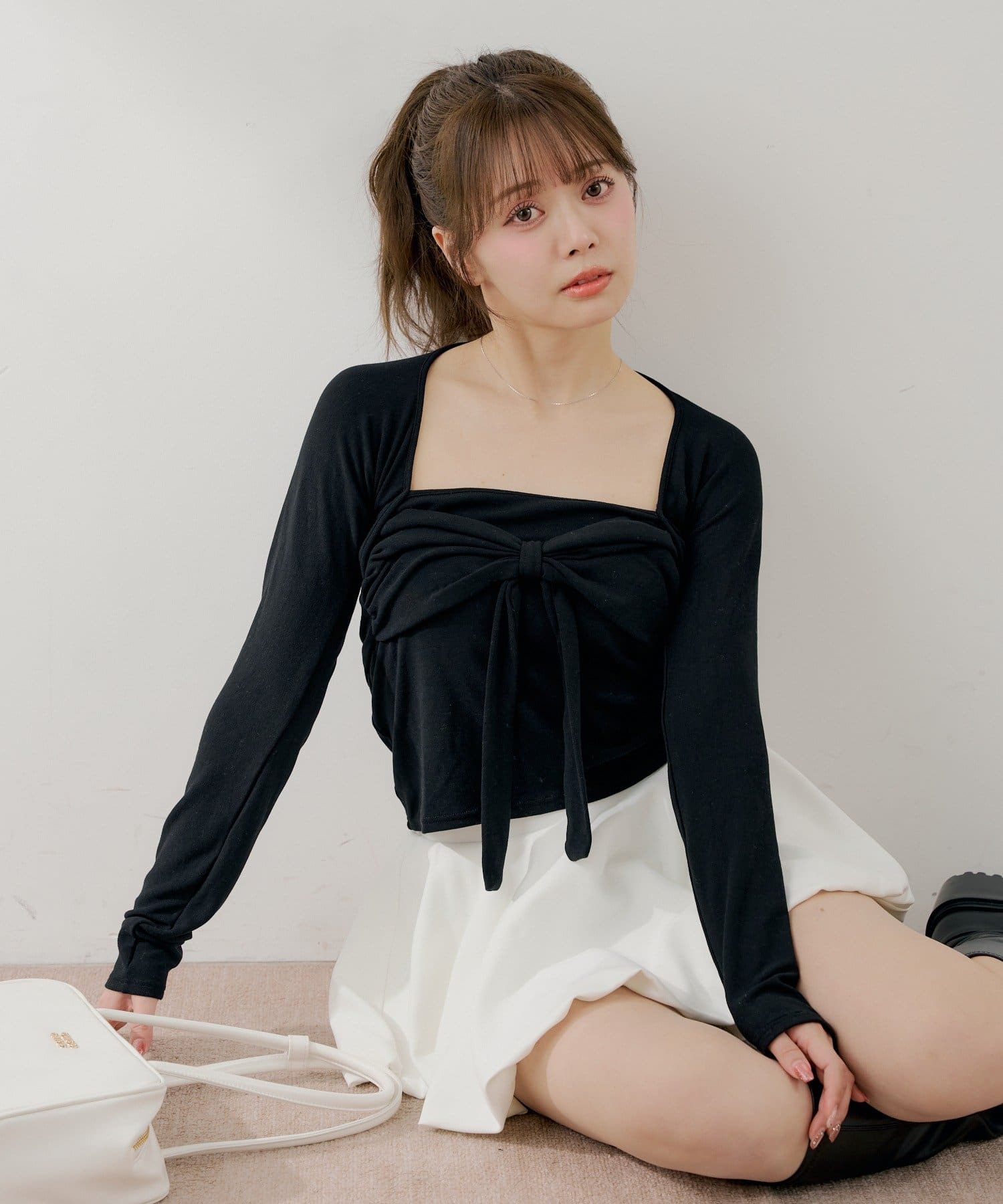・胸元のリボンが、フェミニンな印象をプラスしてくれます。