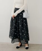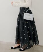 ・歩くたびにふわりと揺れるフレアシルエットは、女性らしさを引き立てます。