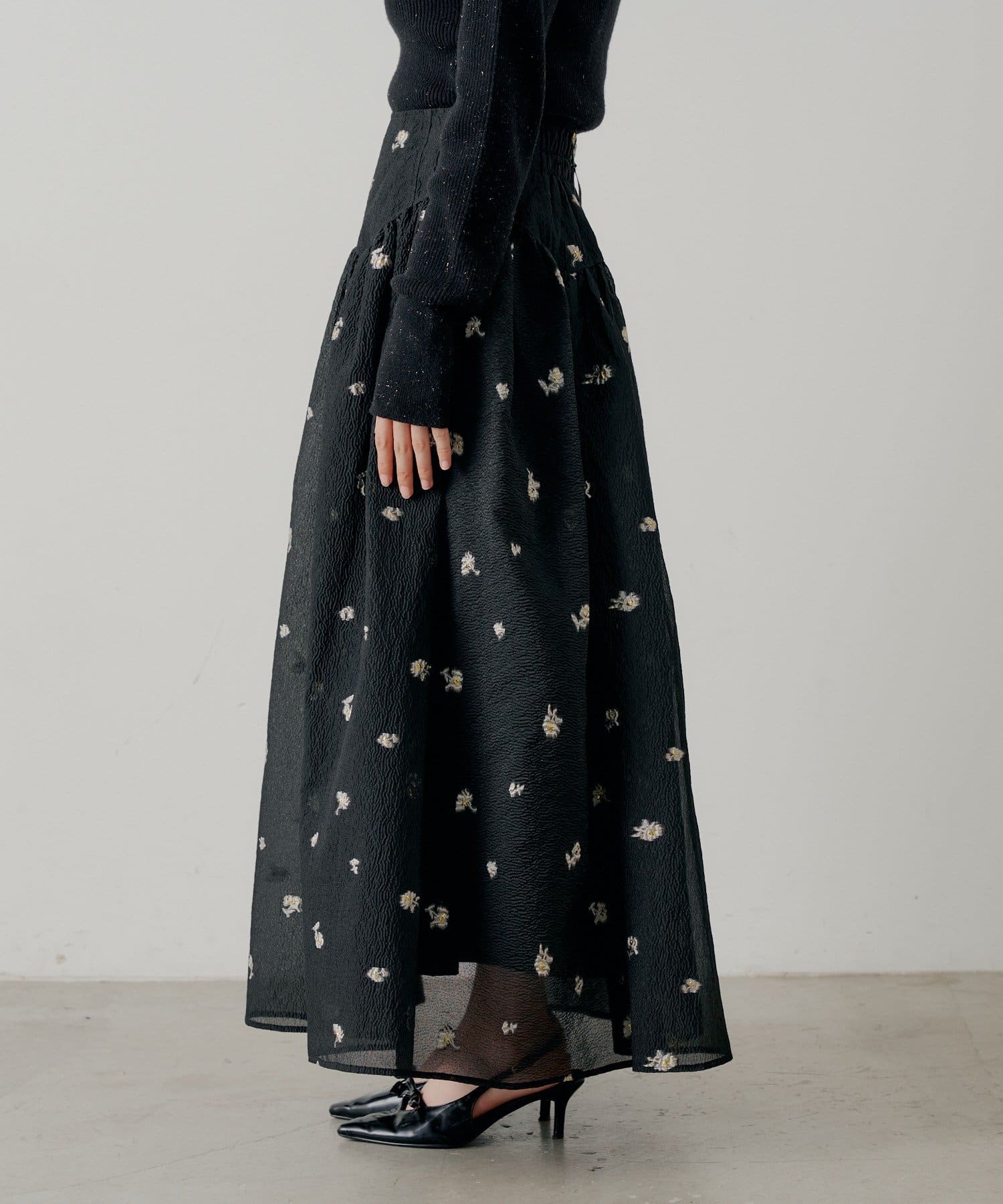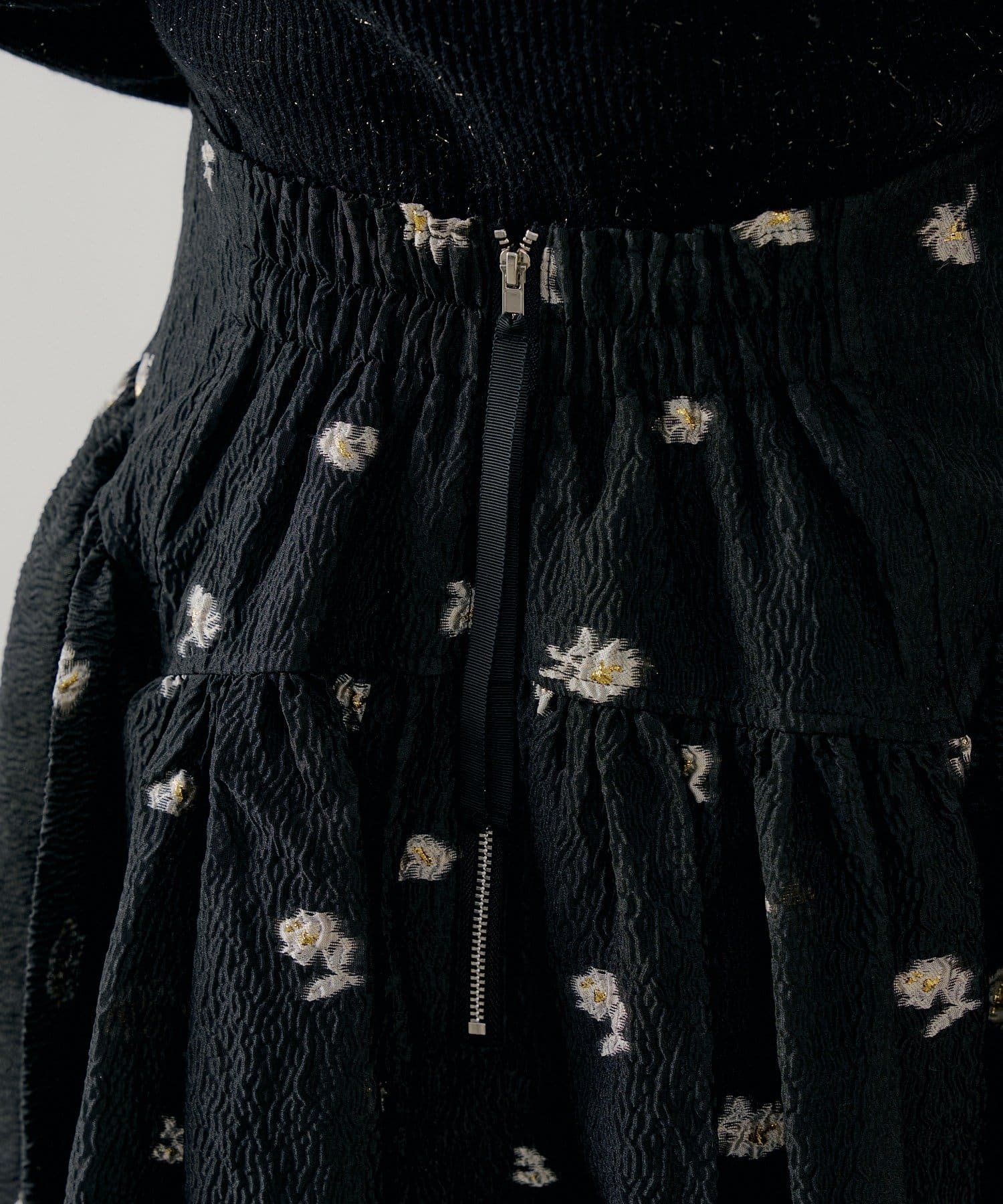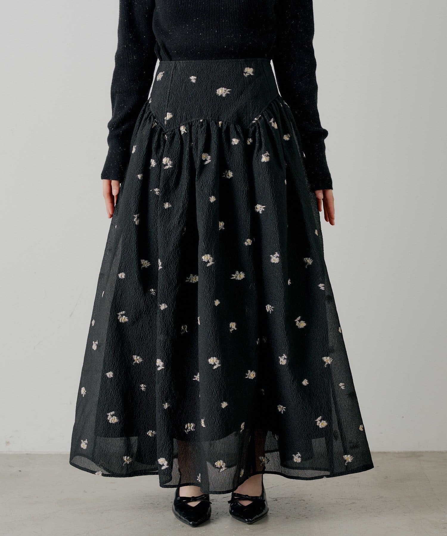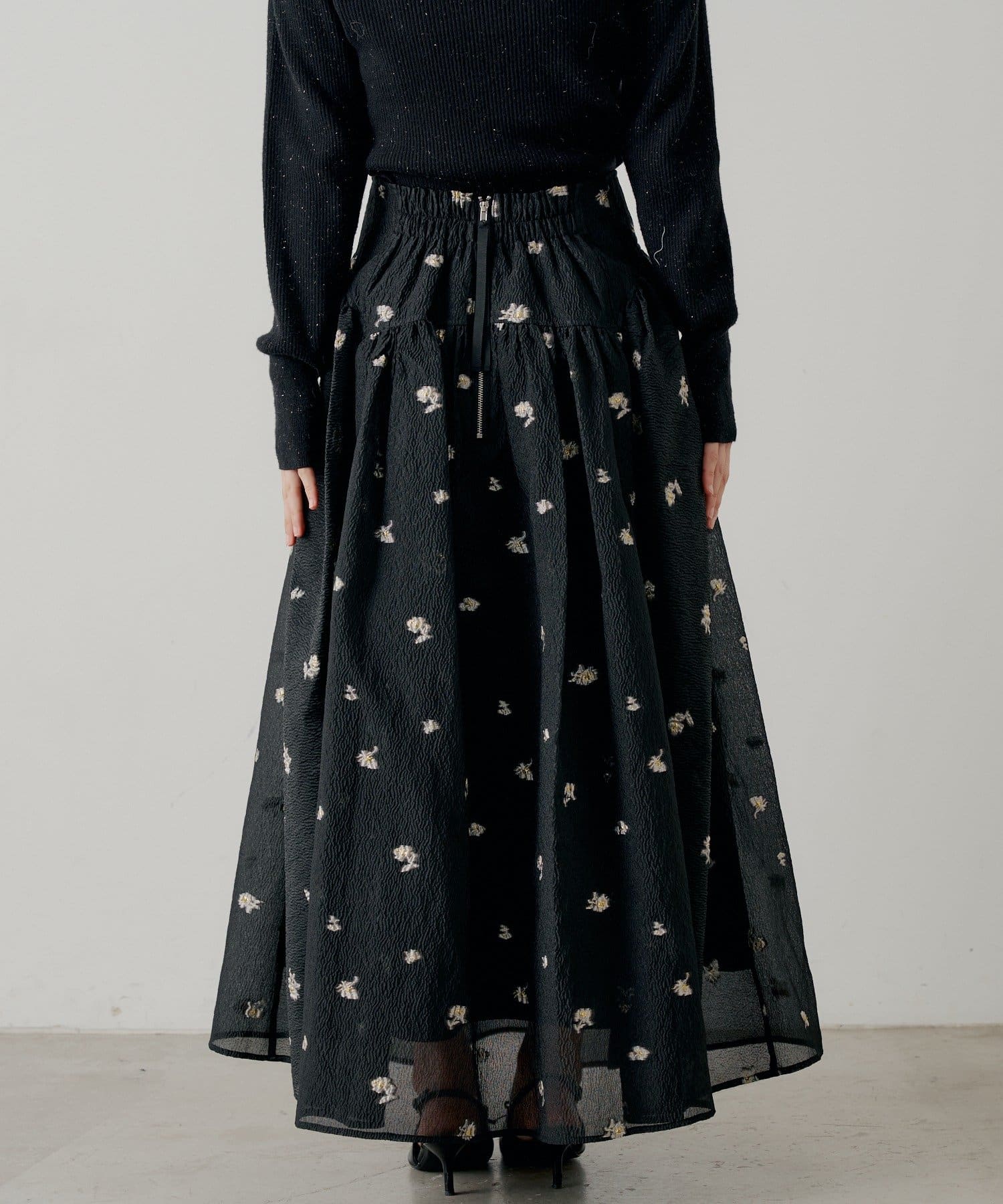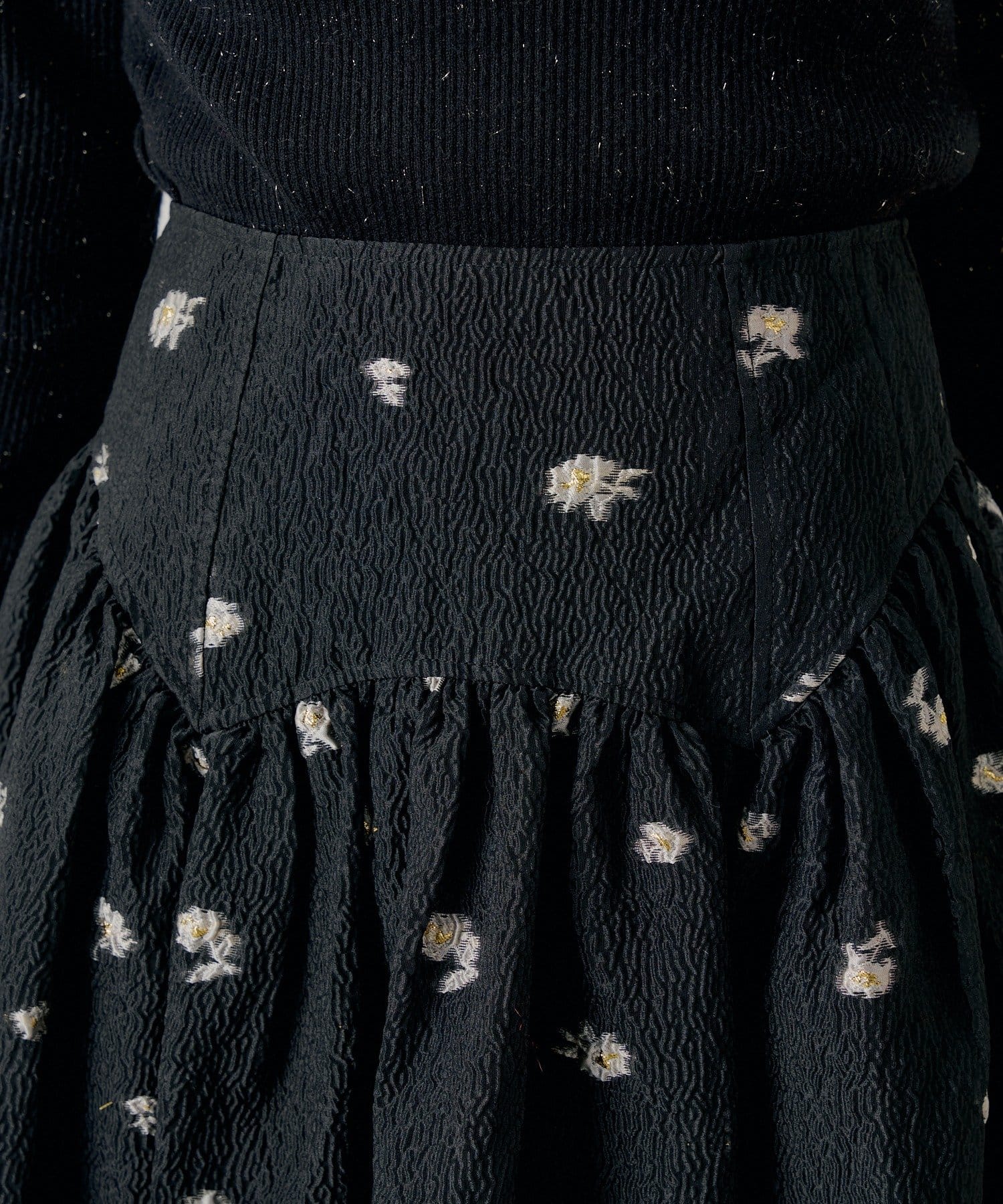 繊細なフラワージャガードが大人の可愛らしさを引き立てるボリュームフレアスカート