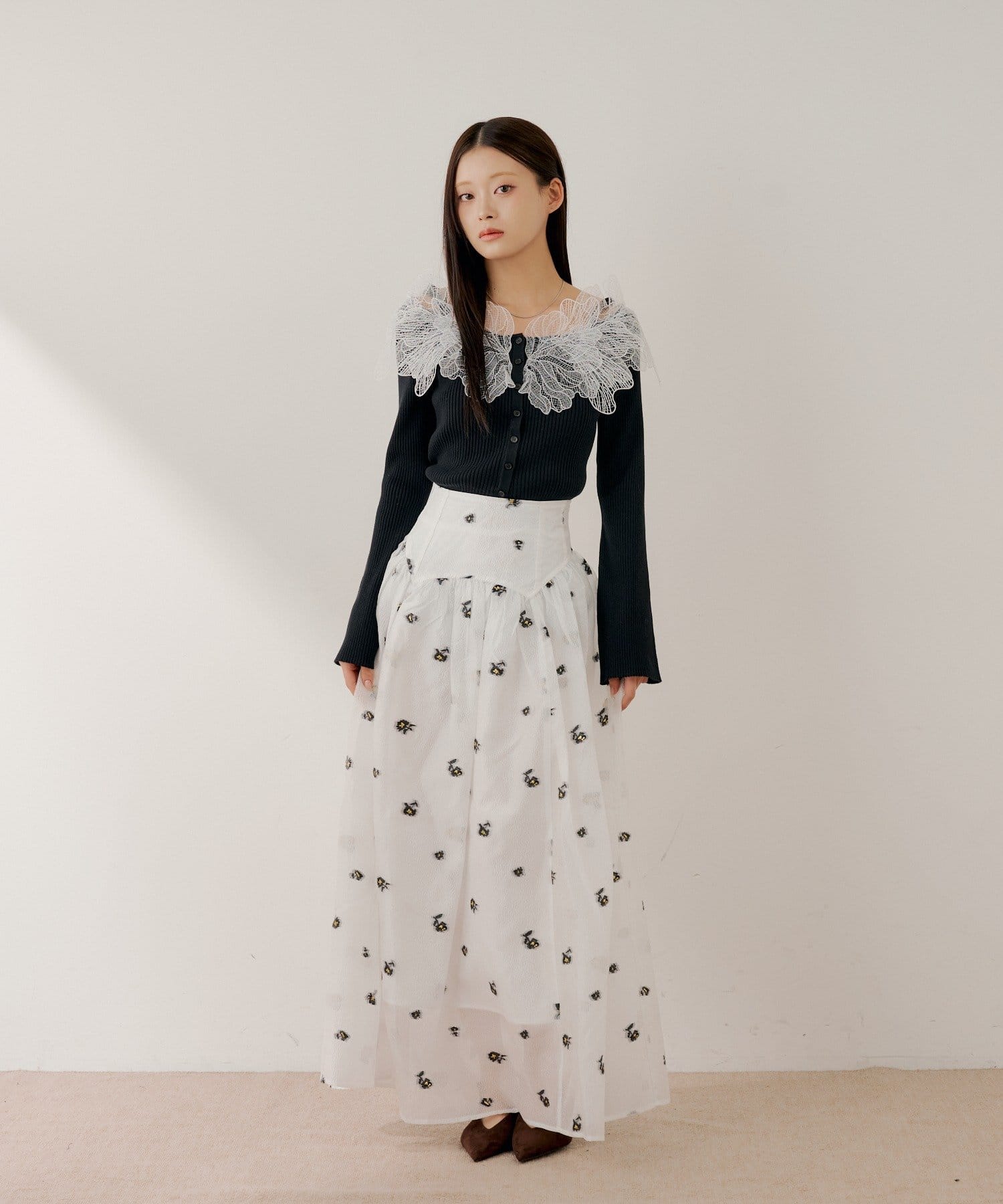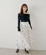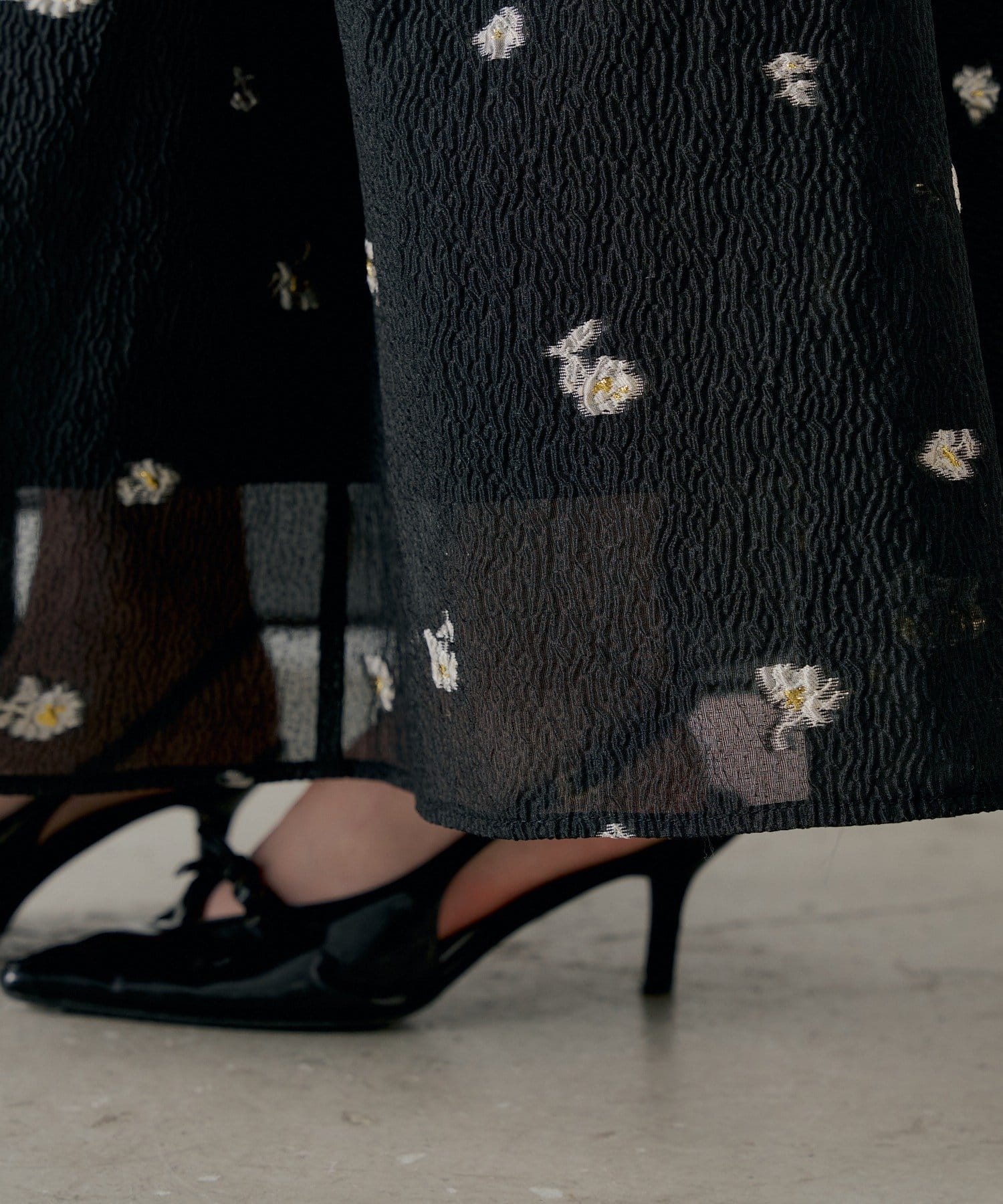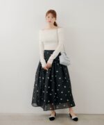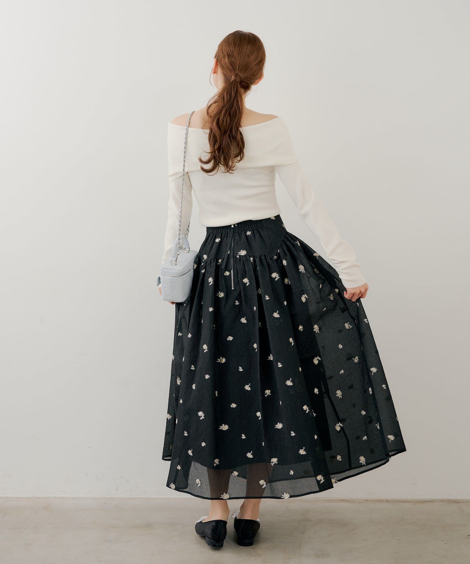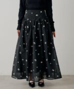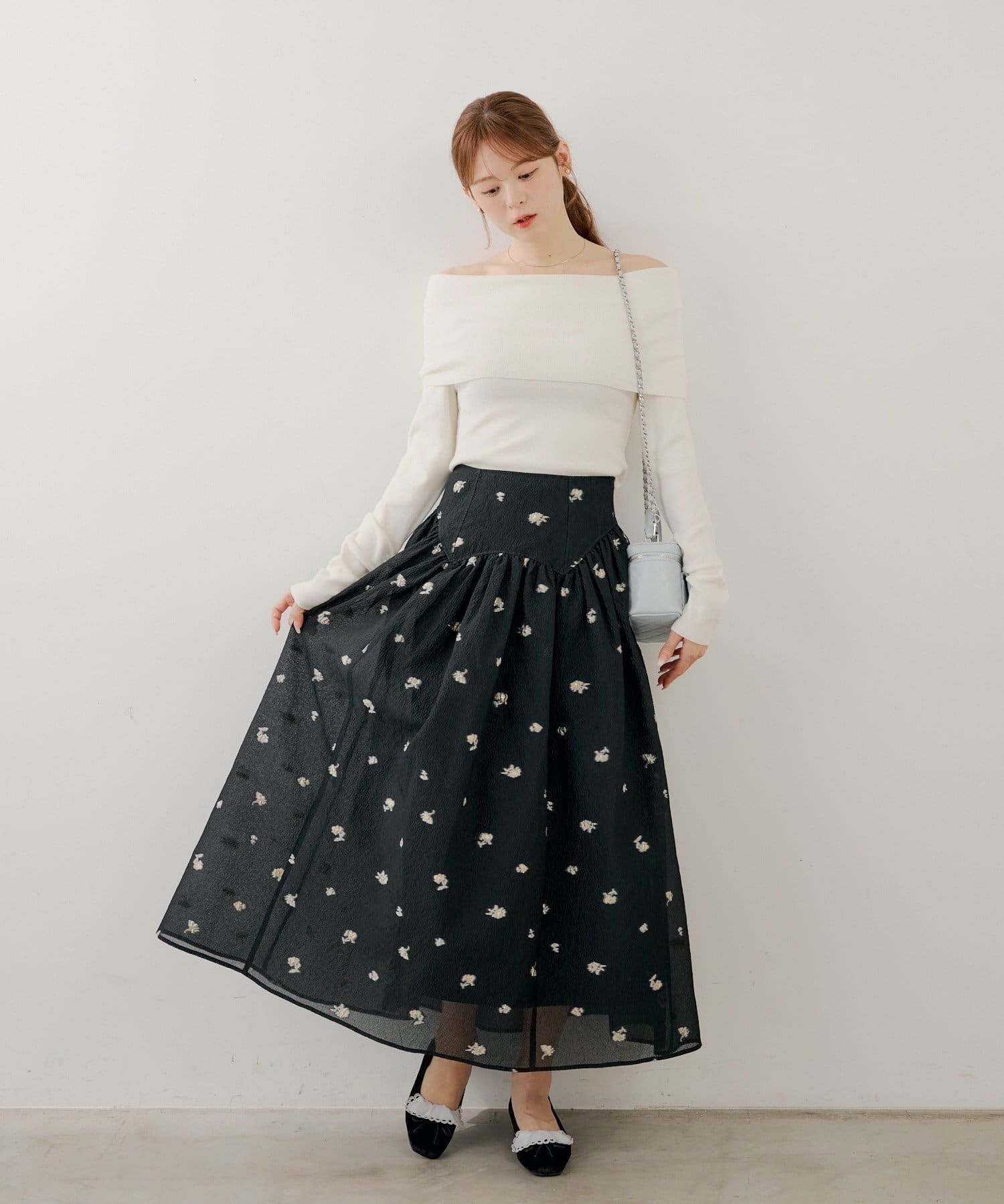 繊細なフラワージャガードが大人の可愛らしさを引き立てるボリュームフレアスカート