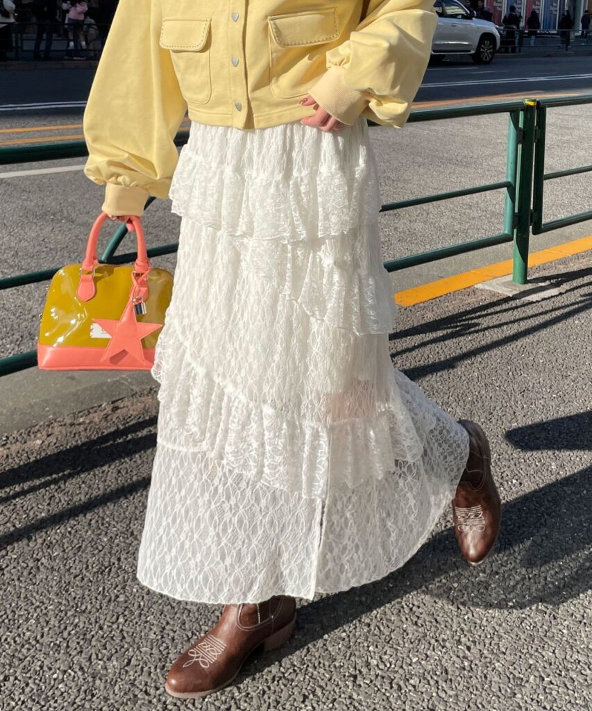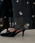・足元はブーツやヒールと合わせると、レディライクなスタイリングに。