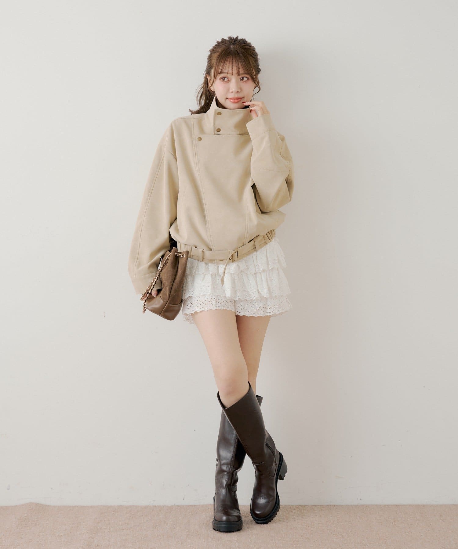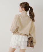 ・ミニボトムと合わせるとフェミニンなスタイルに仕上がります。