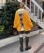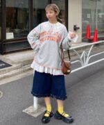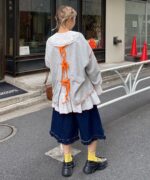 リボンを前にしてショートパンツと合わせる、ヘルシーな甘辛ミックスもおすすめです。