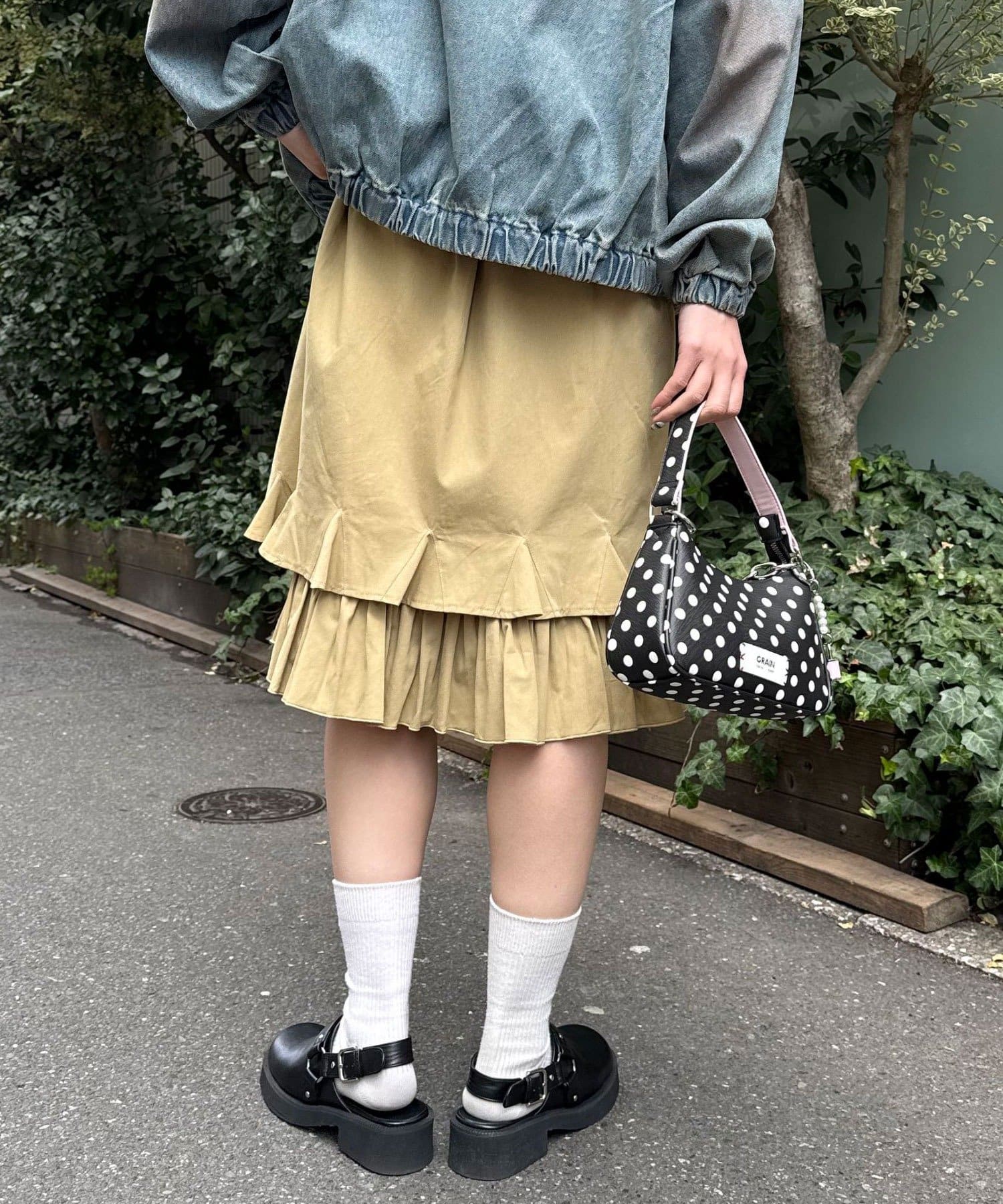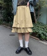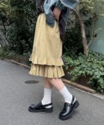 ミリタリーのタフさに裾フリルで甘さを足した欲張りミドルスカート