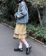 広がりを抑えたミドル丈なので、甘くなりすぎずストリートな雰囲気で着こなせます。