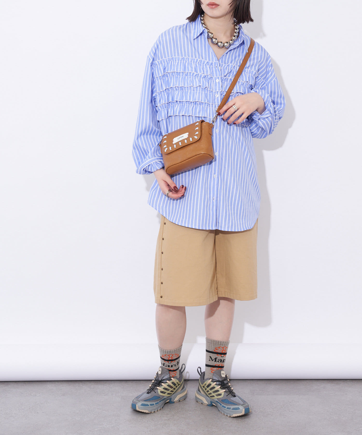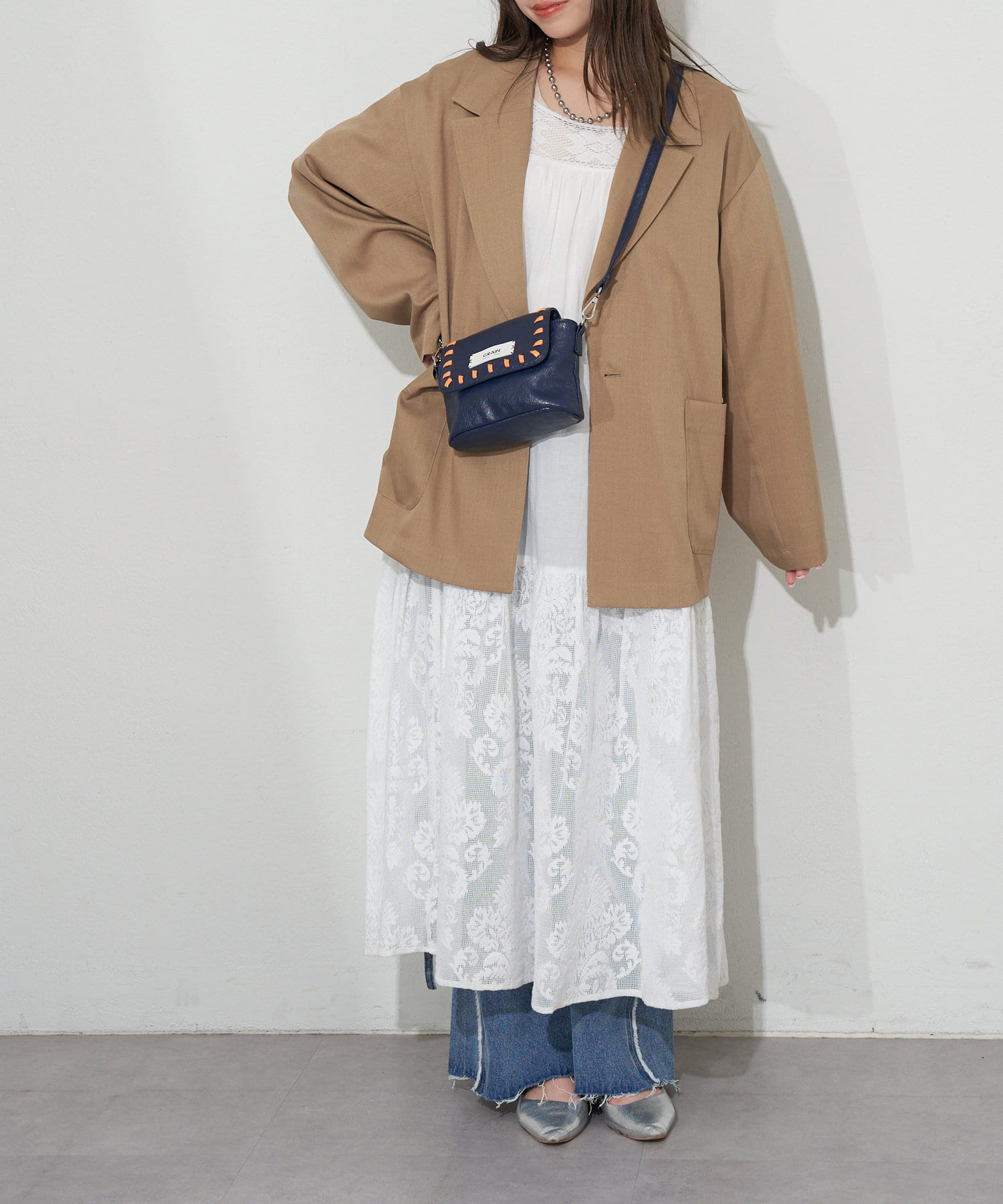 ワンピースやスカートスタイルにもぴったり。甘すぎないデザインなので、大人っぽいフェミニンコーデの引き締め役にも。