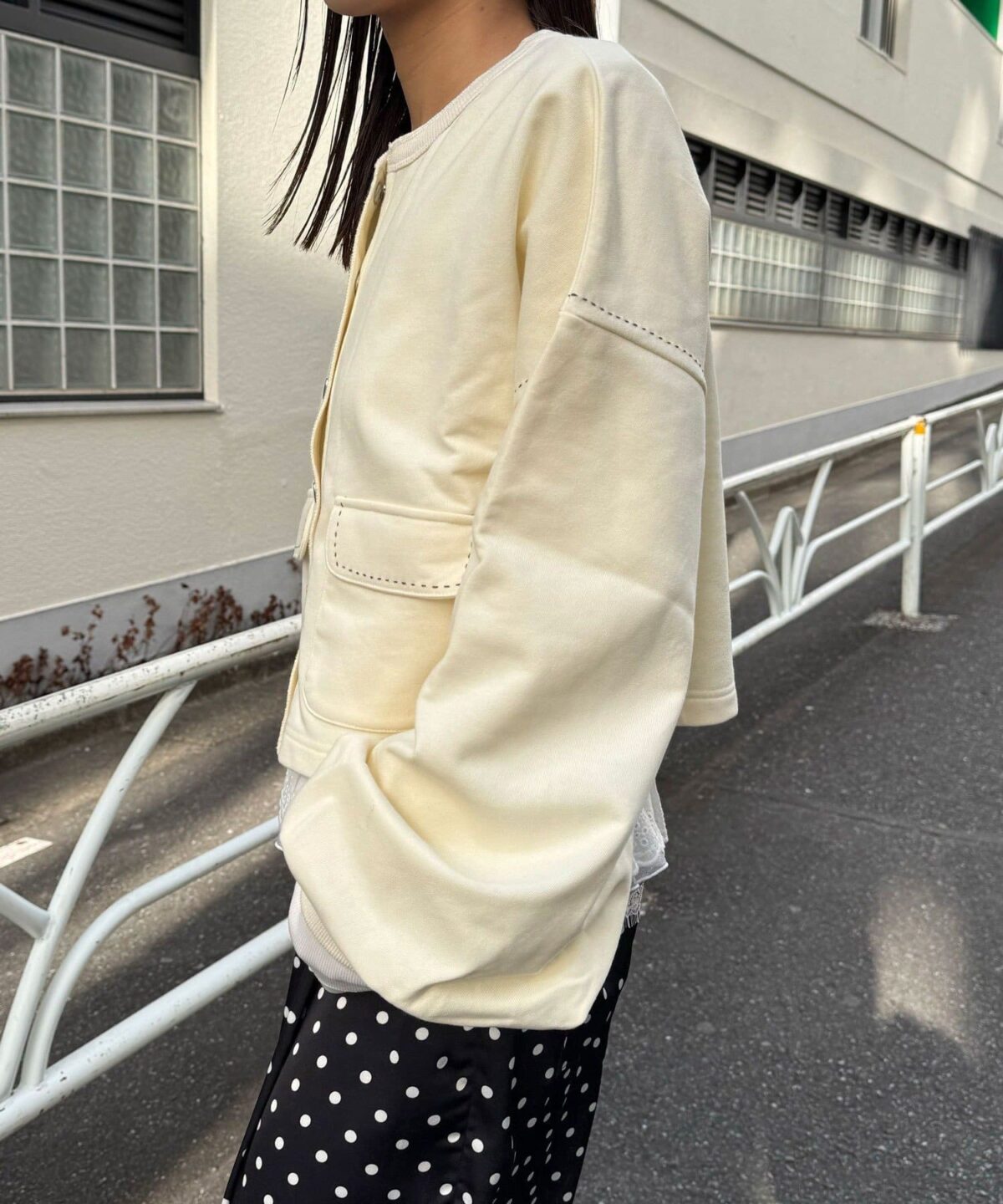 スウェットならではのラフさに、ハートボタンのさりげない甘さをプラスし、デイリーに取り入れやすいデザインに仕上げました。
