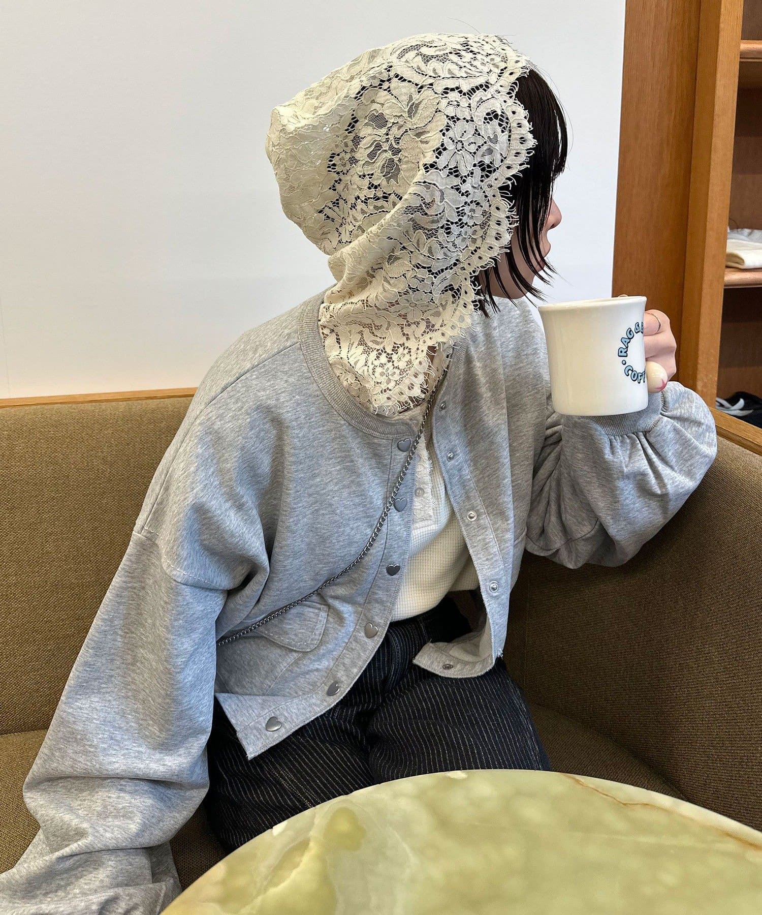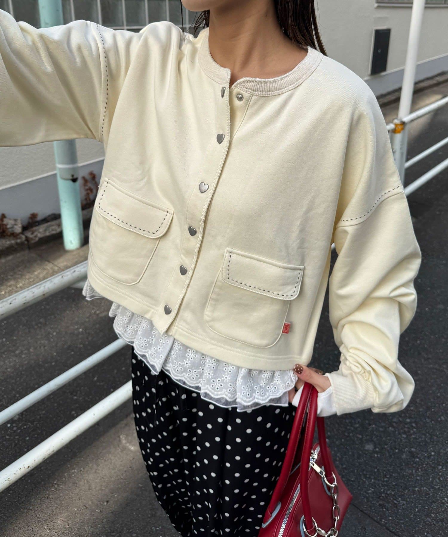 羽織るだけで可愛いハートが効いたスウェットカーデ