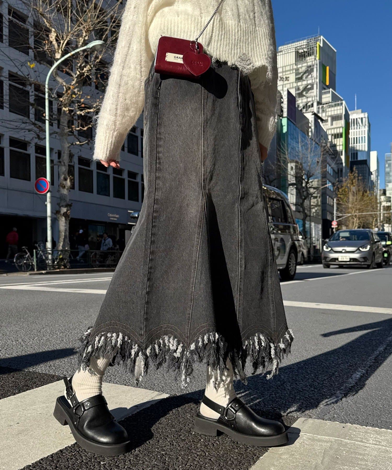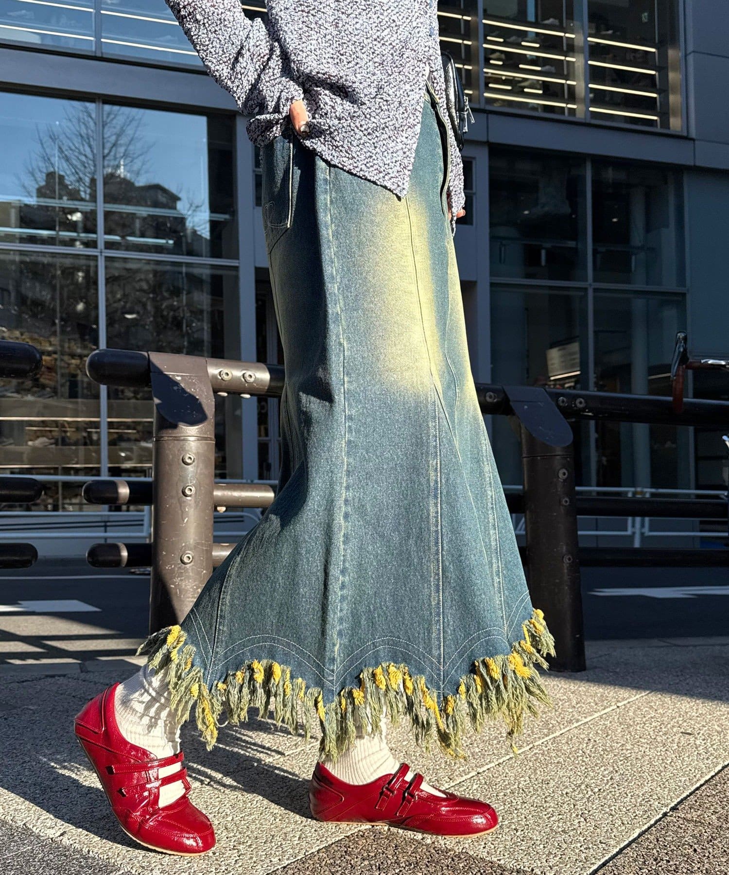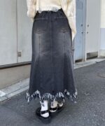 贅沢フリンジで差がつくデニムマーメイドスカート