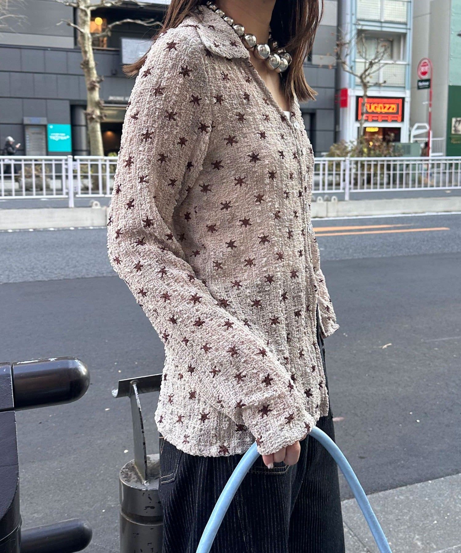 ポコポコとした立体的なポップコーン生地が可愛い、トレンド感満載のスキッパーシャツ。