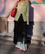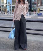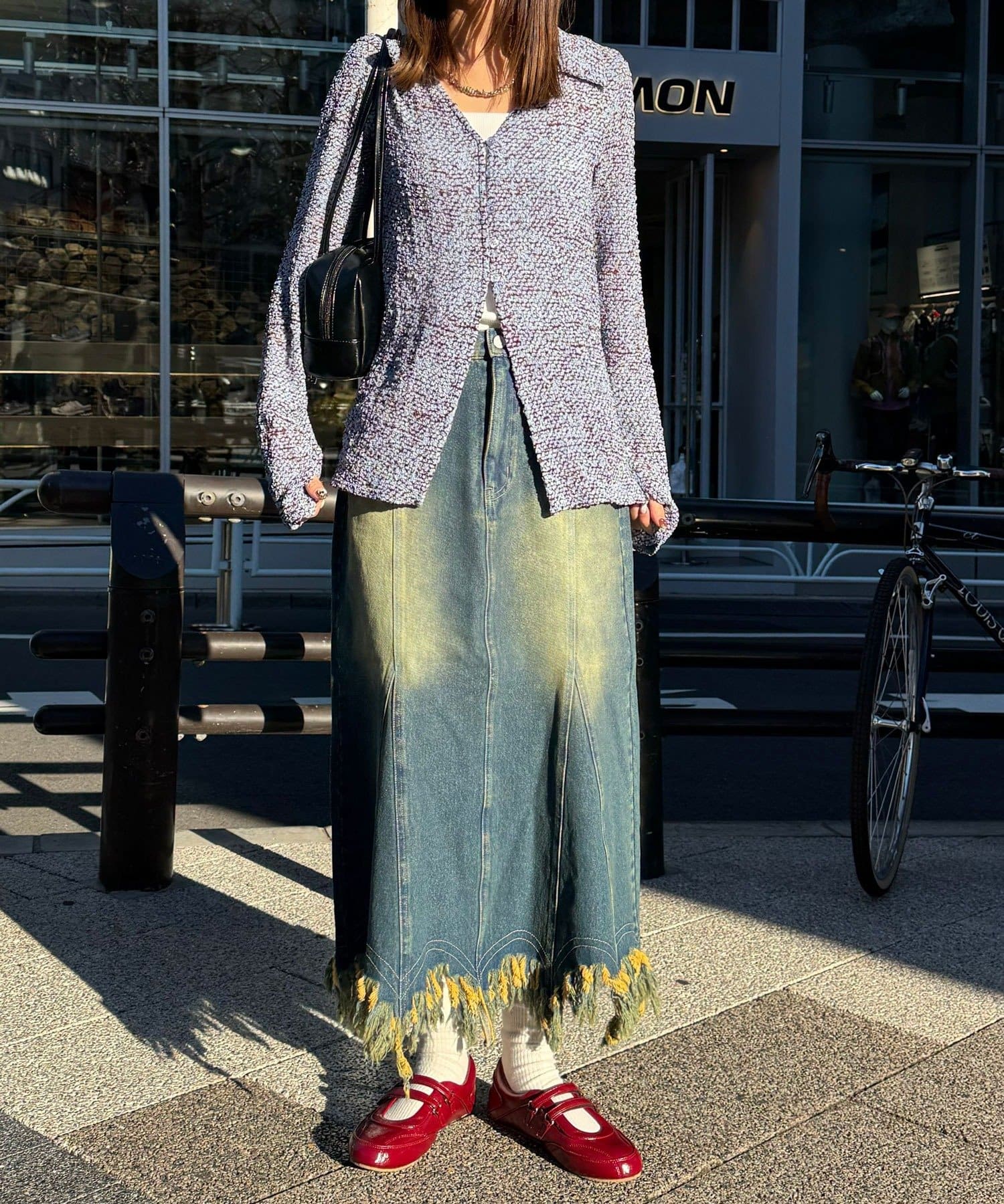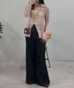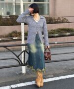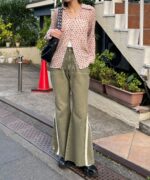 デニムやワイドパンツと合わせてカジュアルダウンすると、大人っぽくバランス良くまとまります。