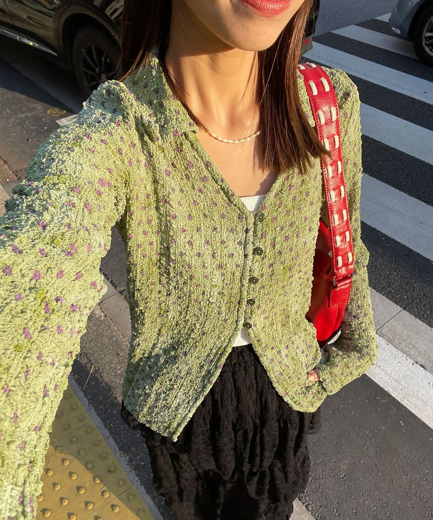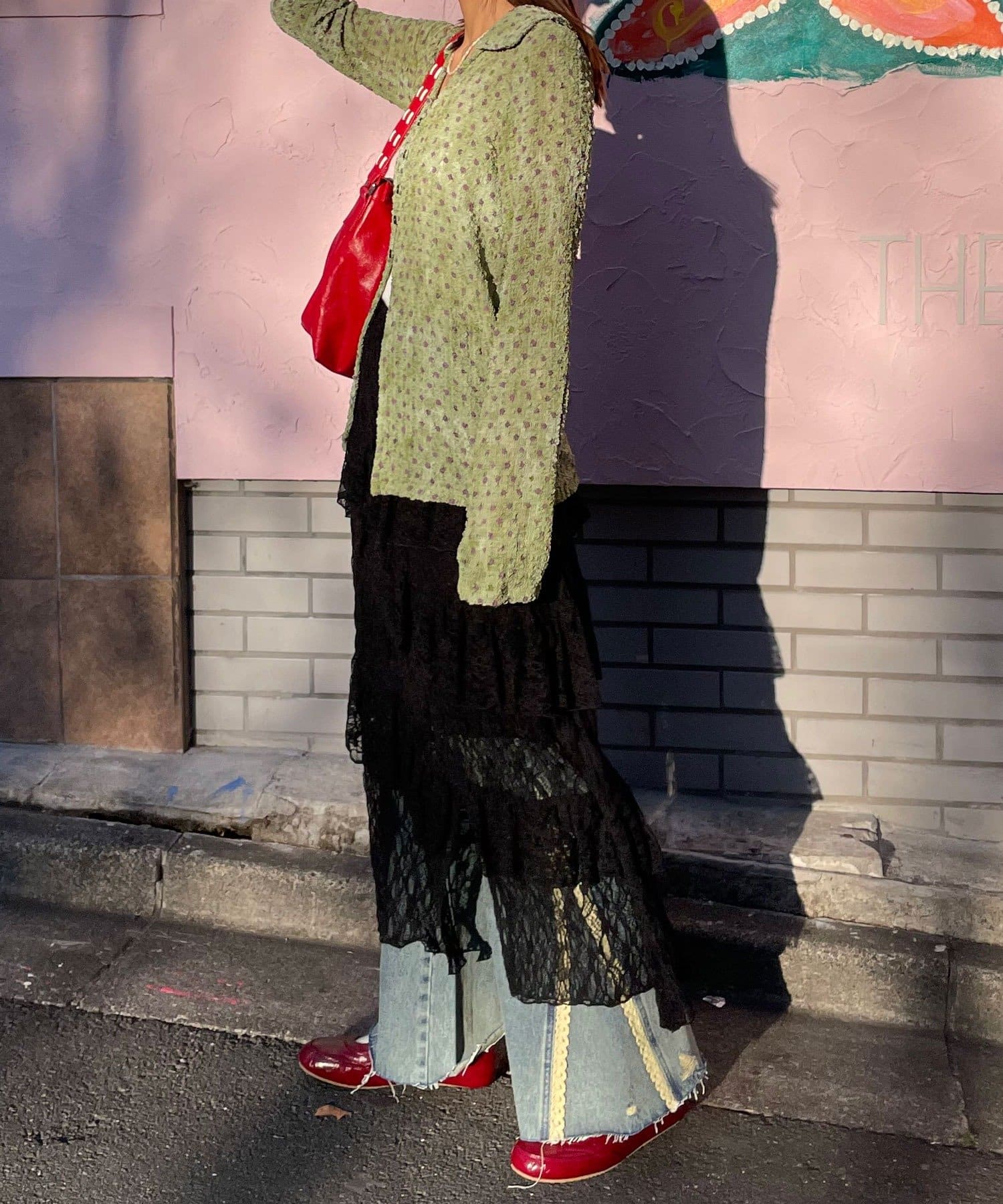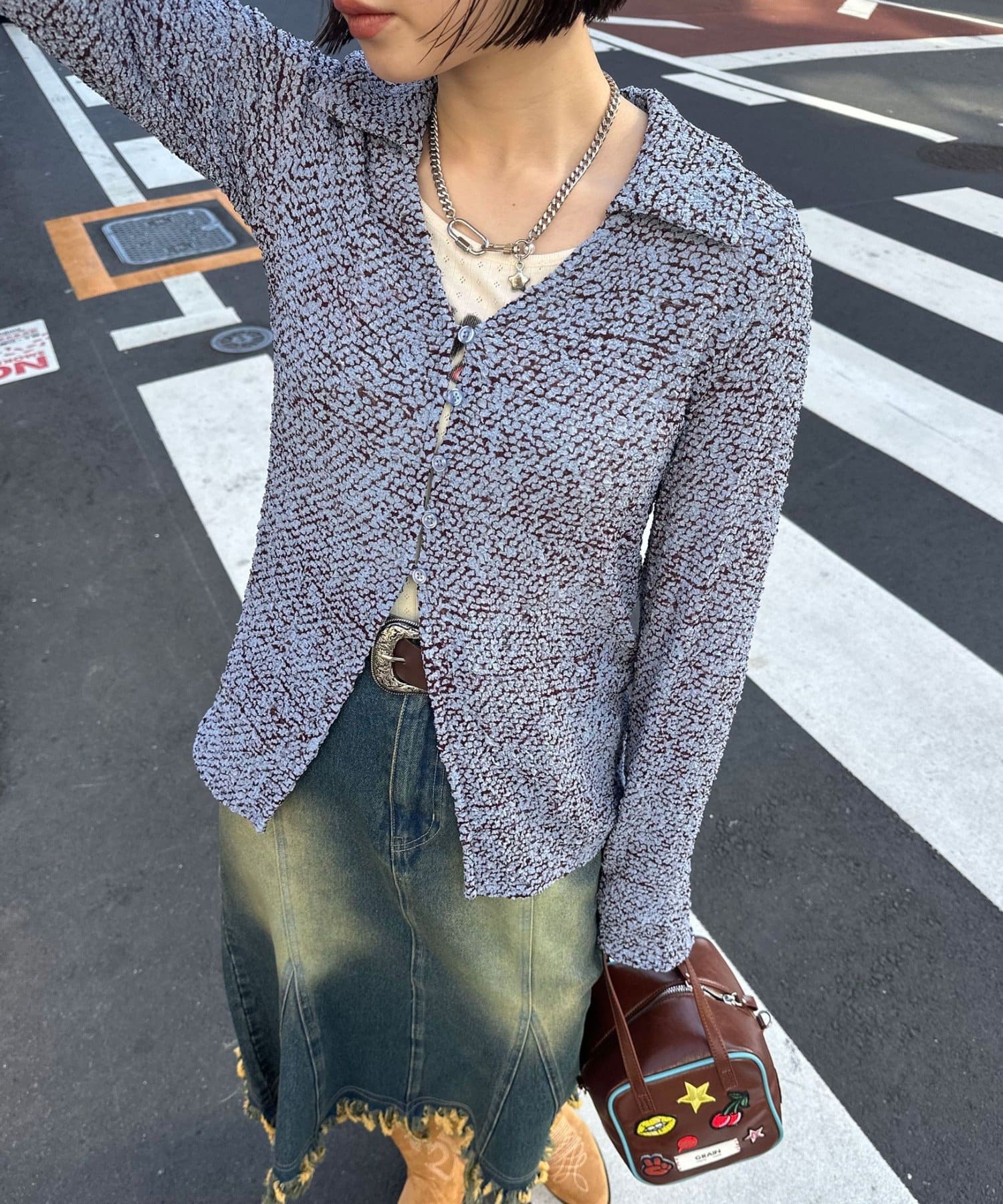 絶妙な透け感がある素材なので、インナーとのレイヤードも軽やかな印象に仕上がります。