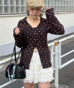 顔周りをスッキリ見せてくれるスキッパーデザインで、程よい抜け感をプラス。
