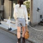 同素材のジャケットとセットで着れば、考えなくても今っぽいバランスが完成します。