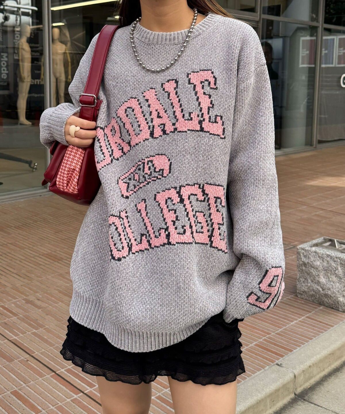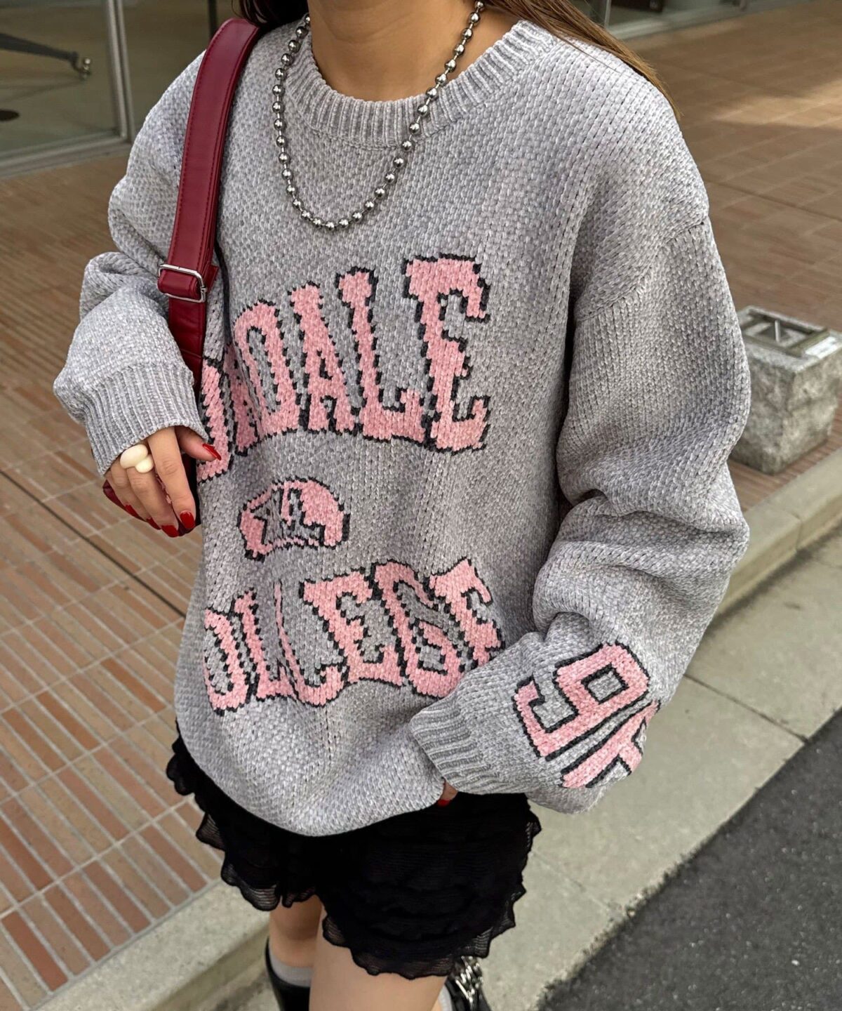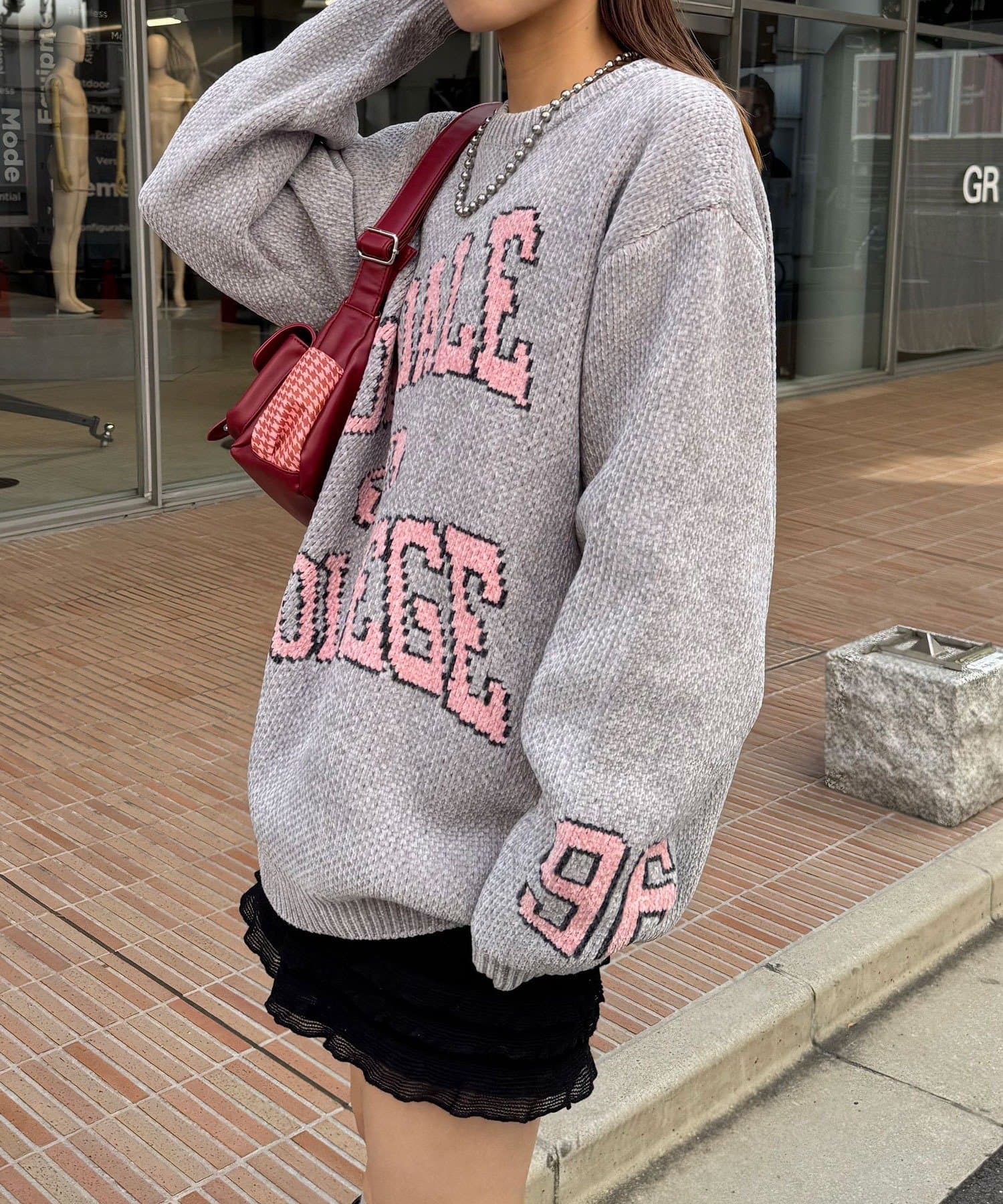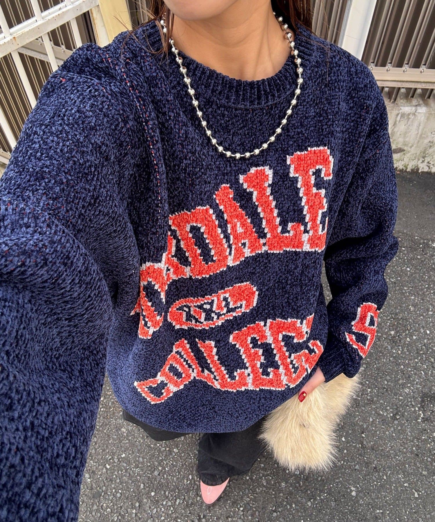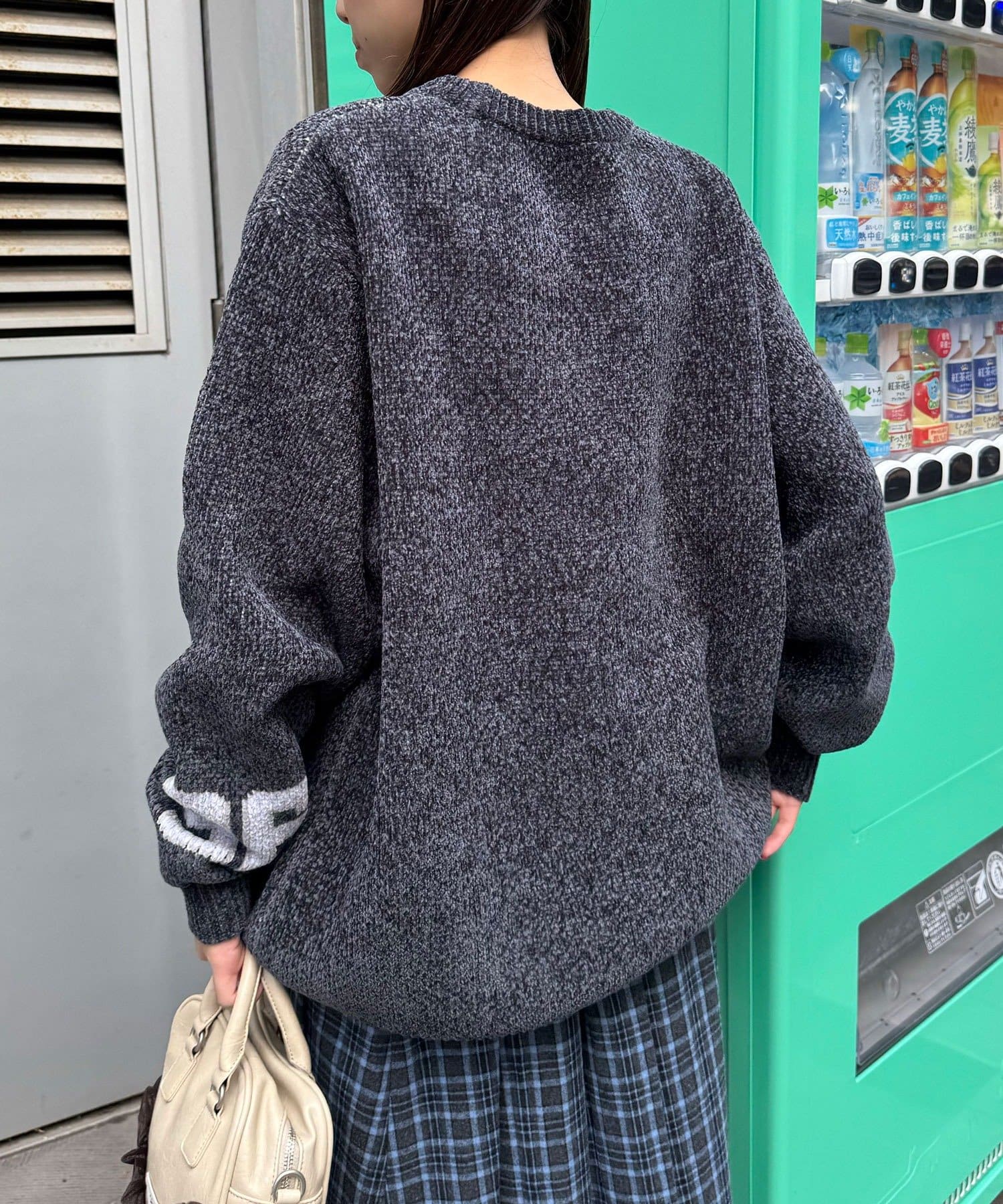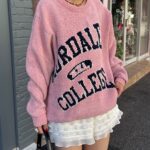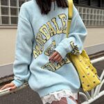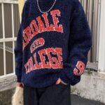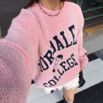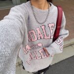 具有令人上癮的黏稠感的大學標誌針織衫