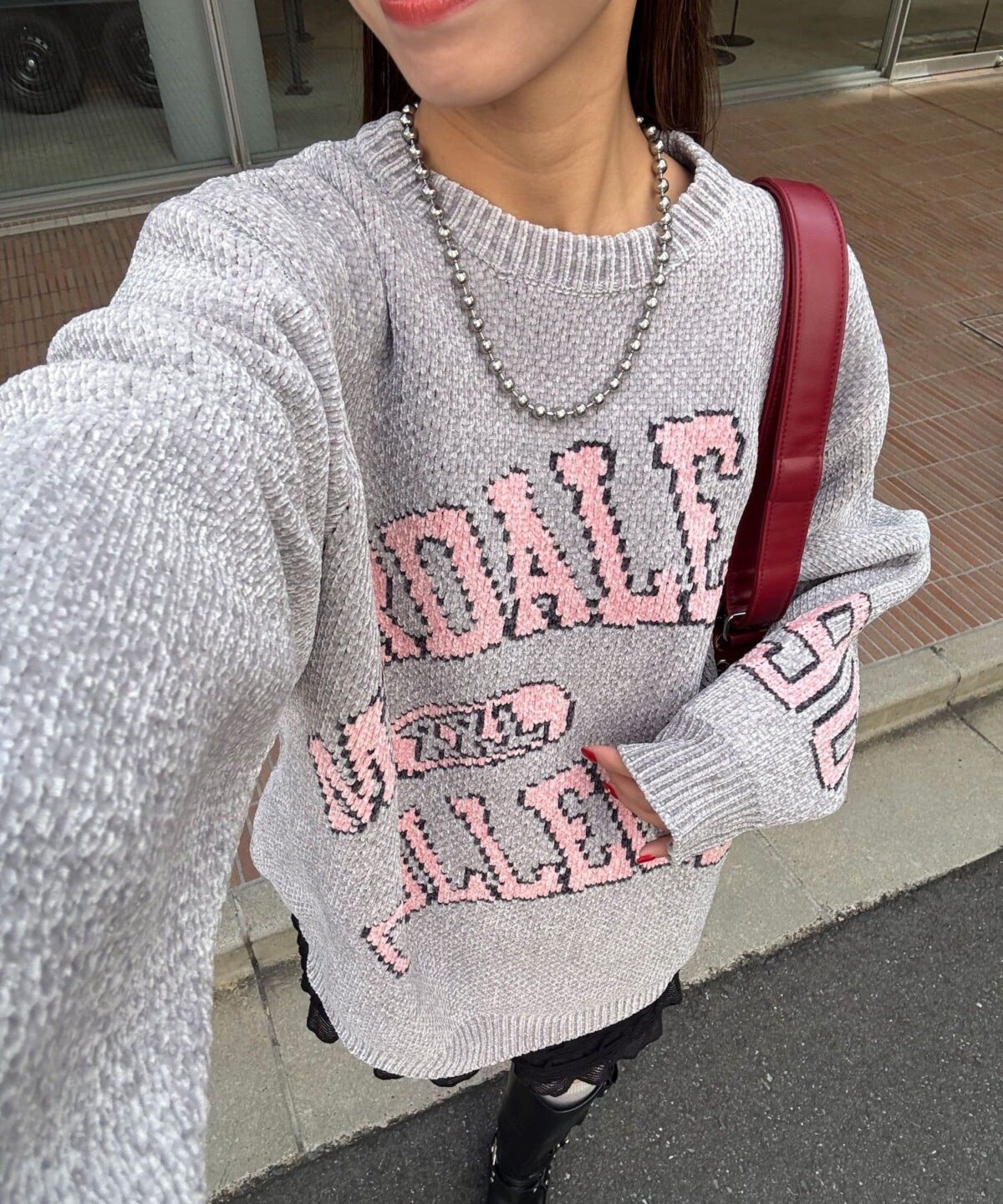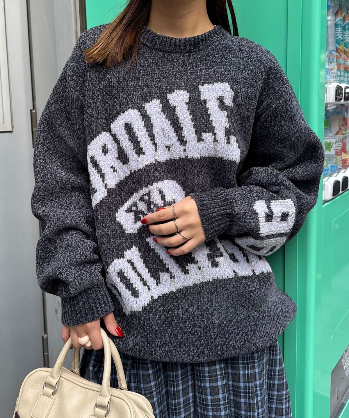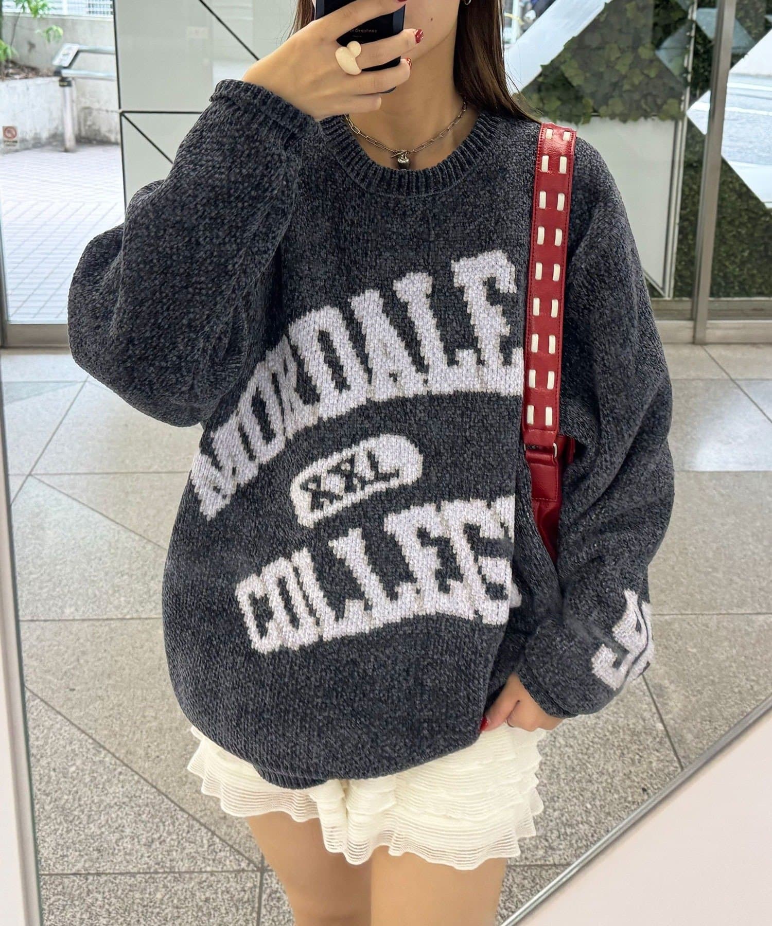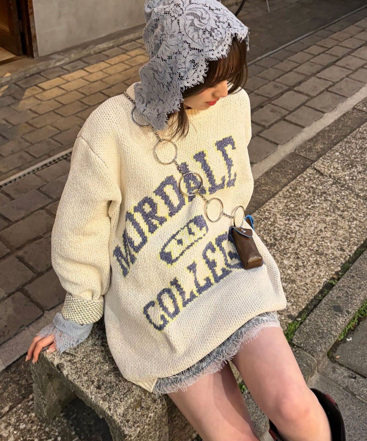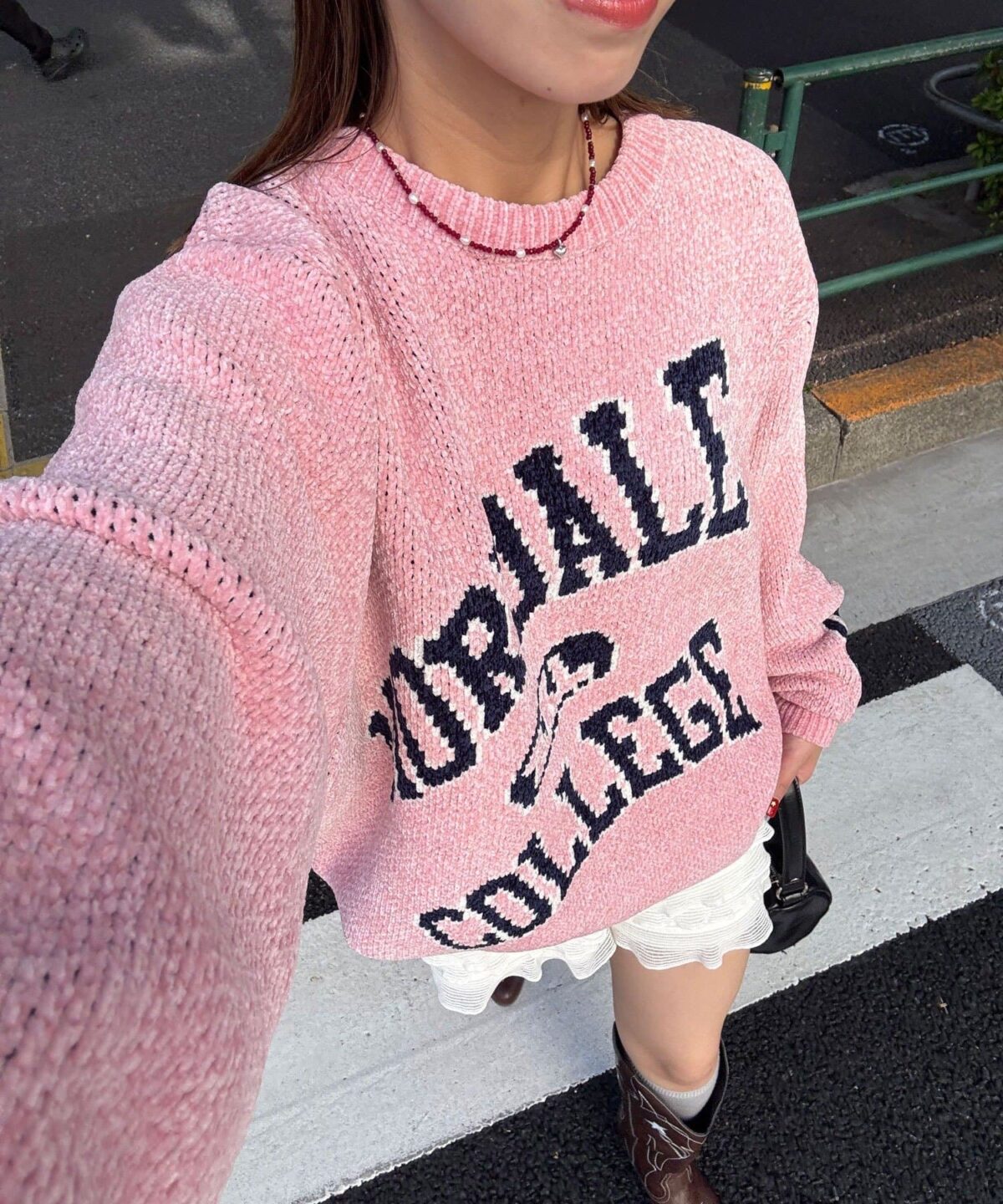 具有令人上癮的黏稠感的大學標誌針織衫
