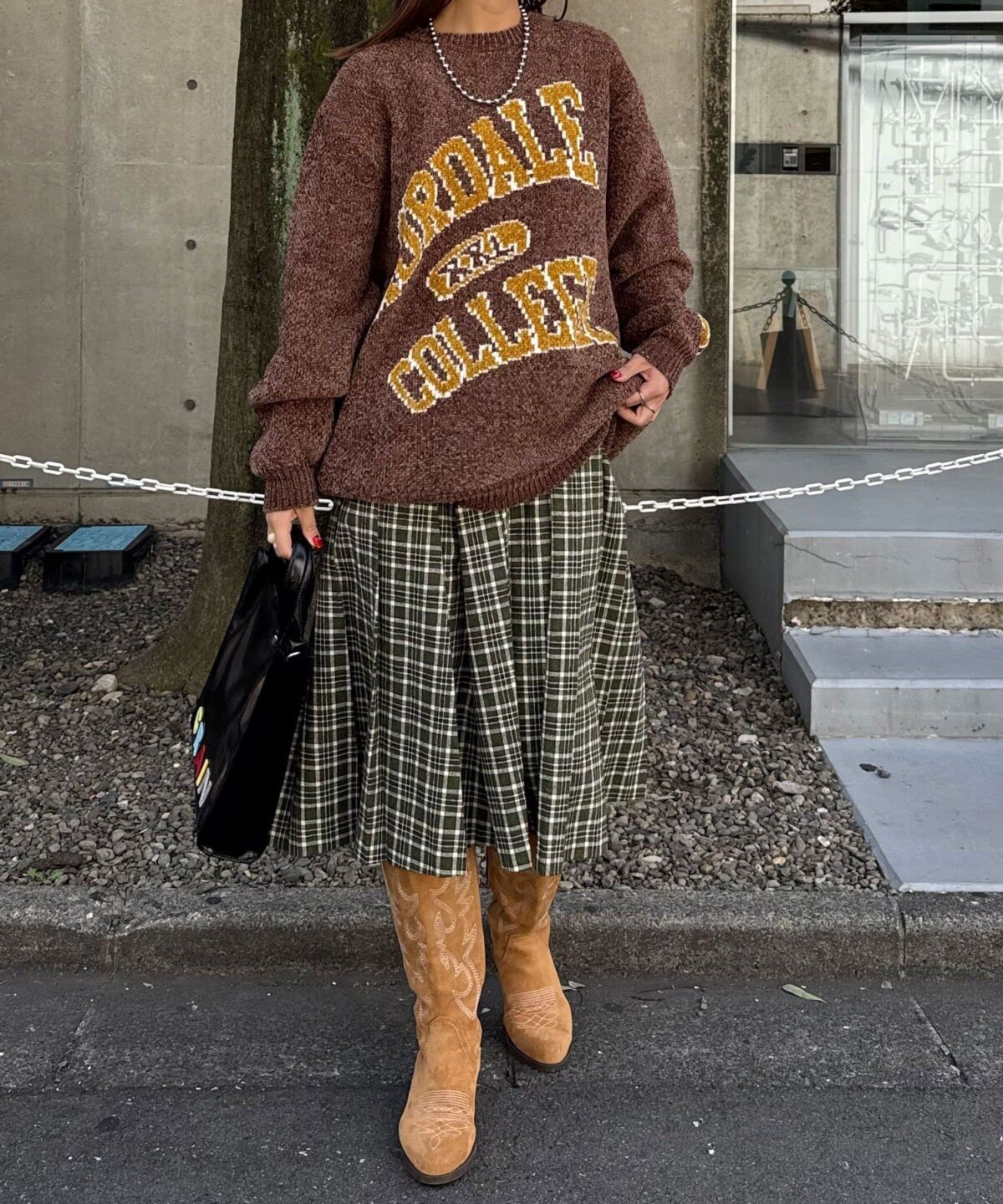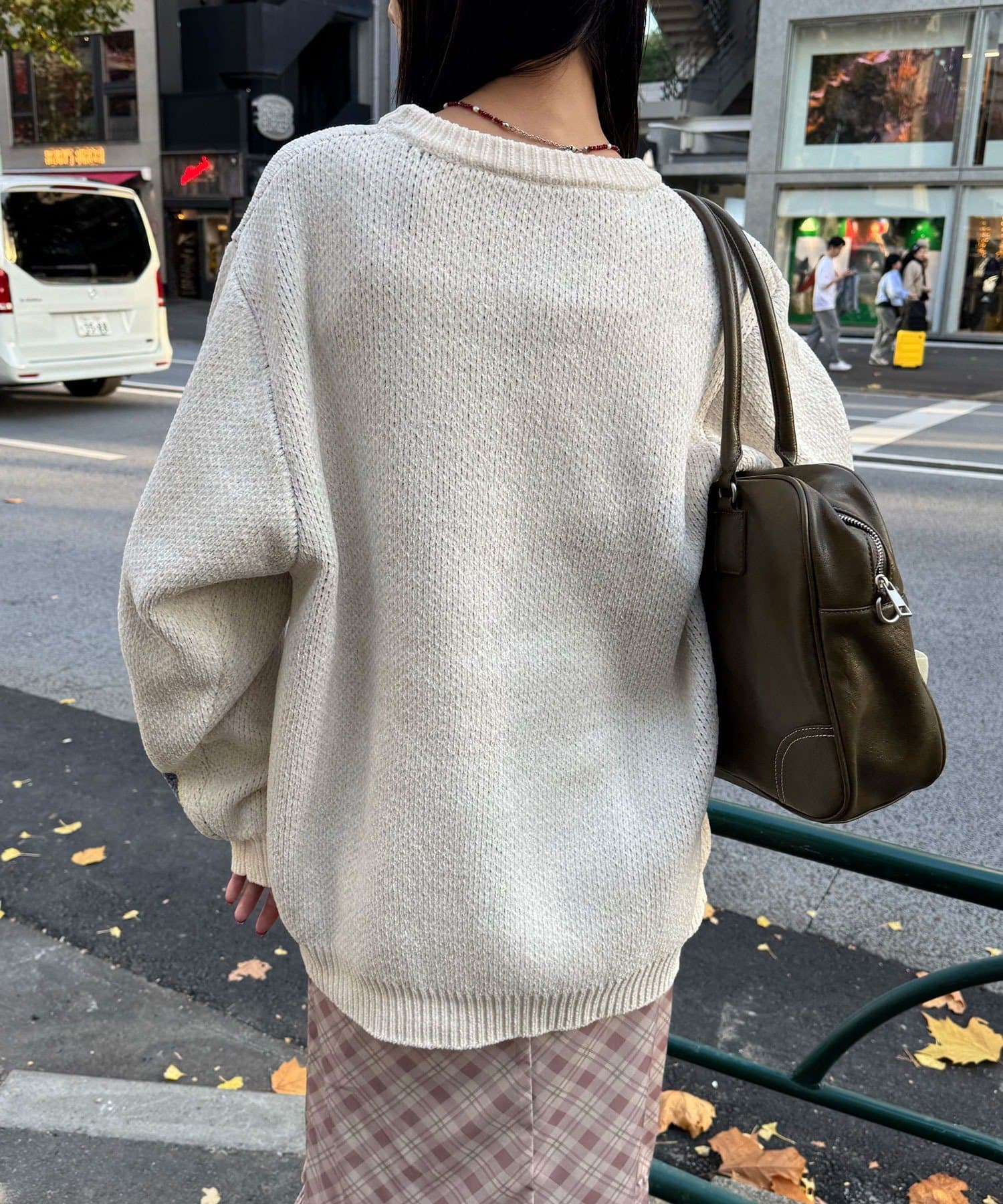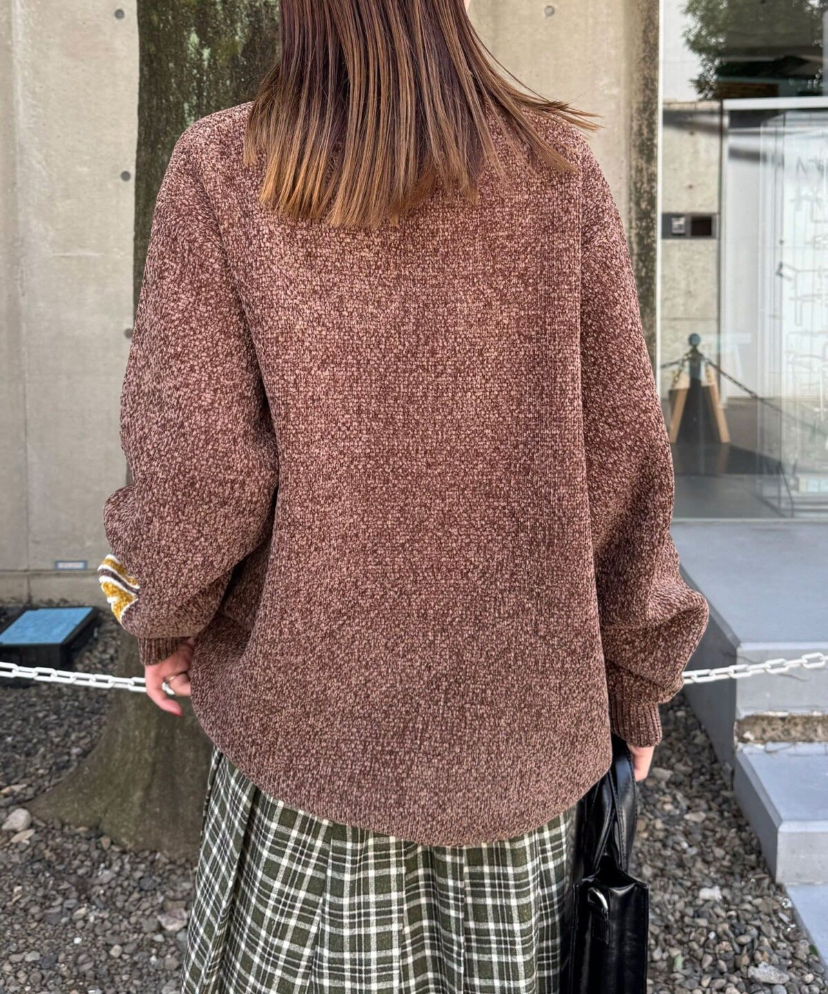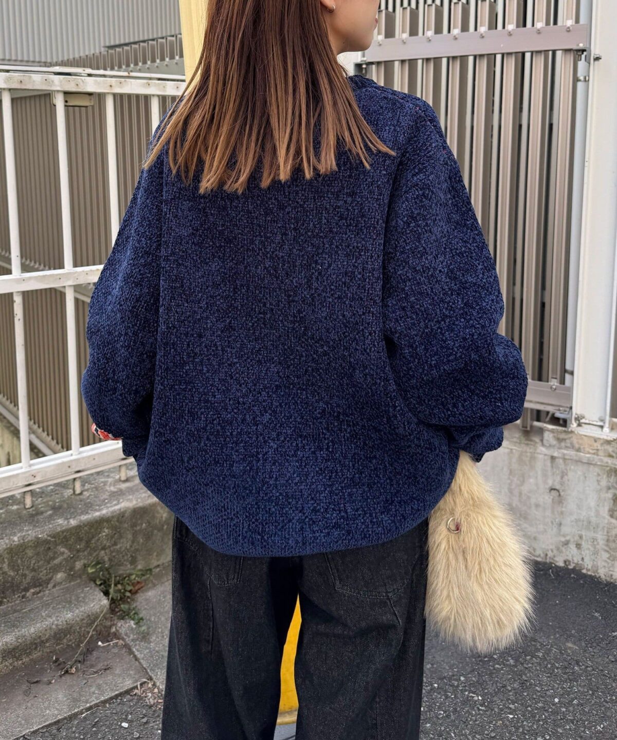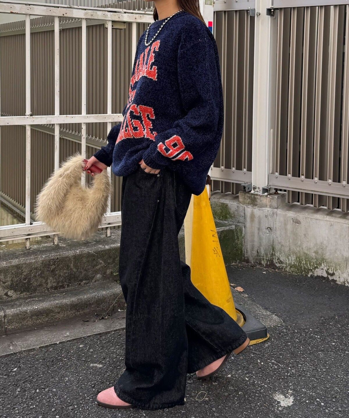 中性大學針織衫,以蓬鬆編織紗製成。