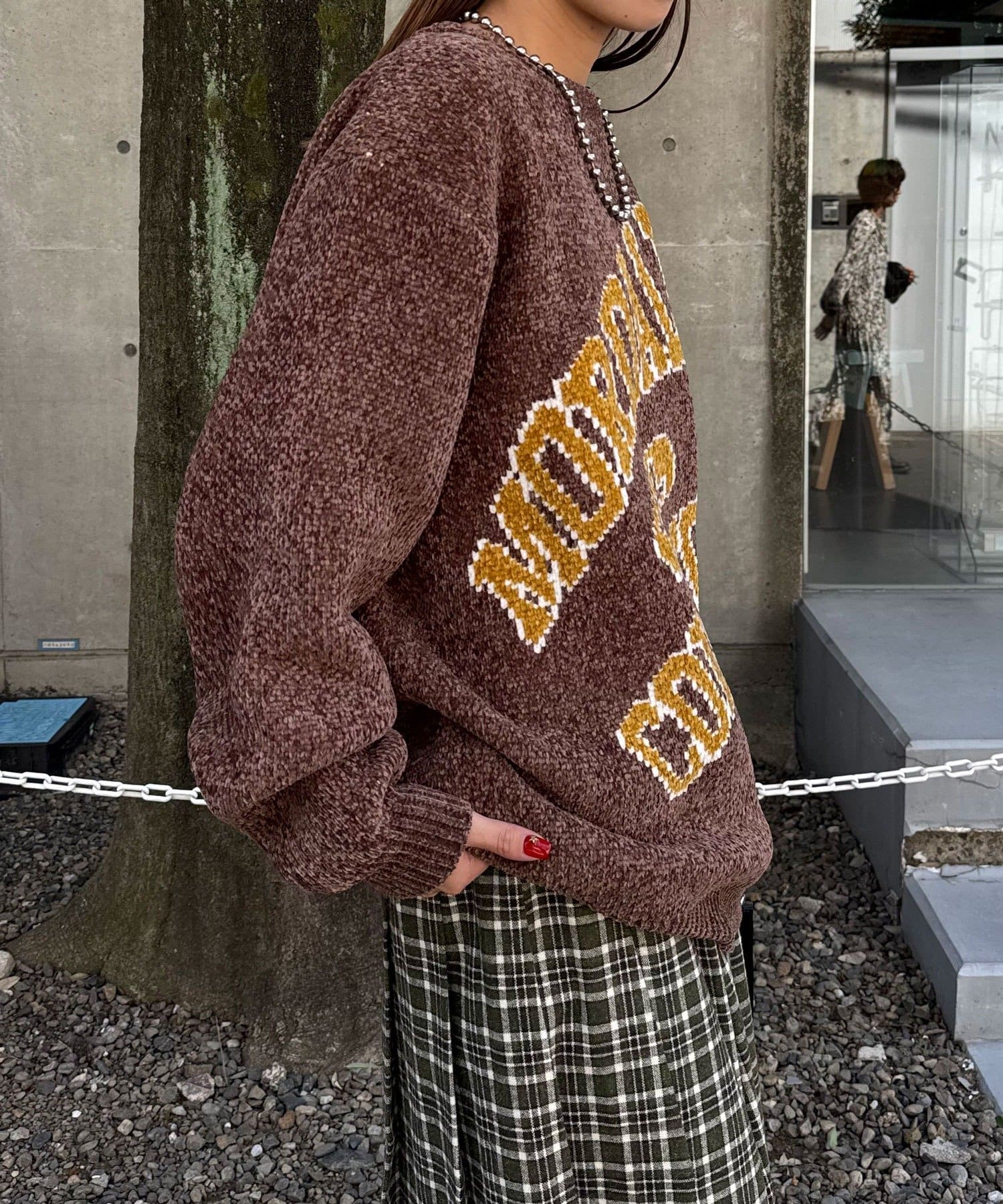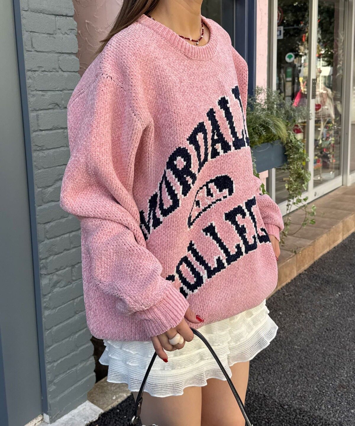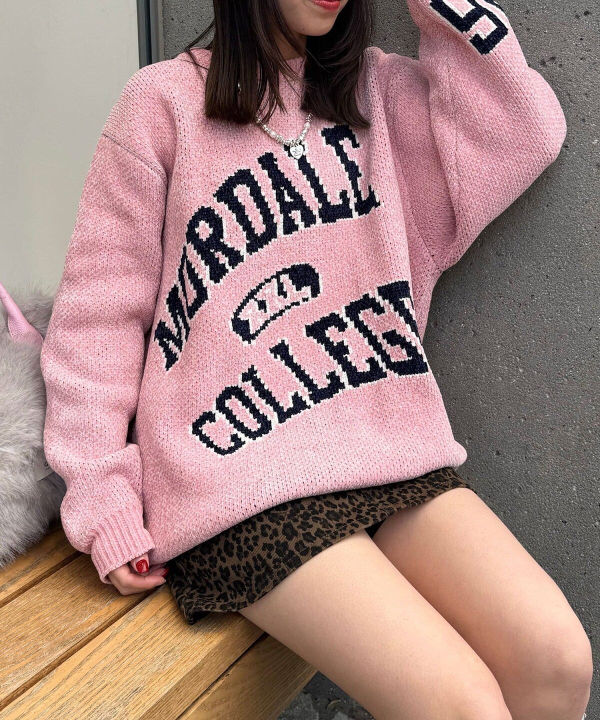 ふんわりモール糸で仕立てたユニセックスカレッジニット。