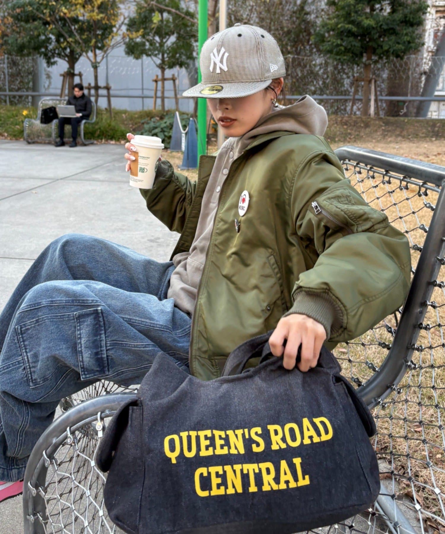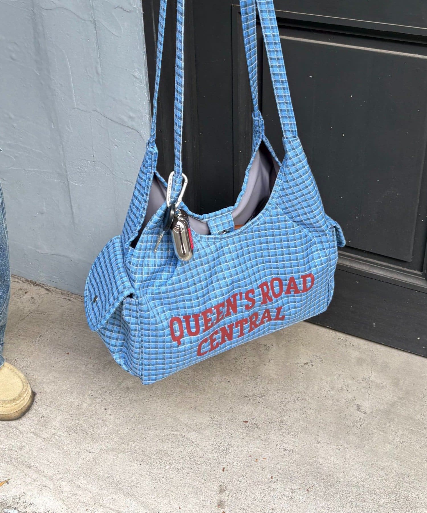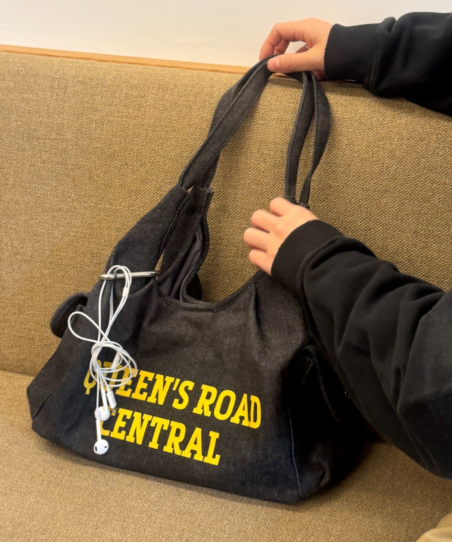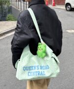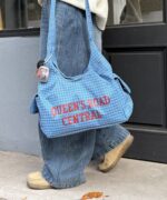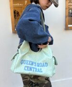 フロントに大胆にプリントされたロゴが、都会的で洗練された印象を与えるバッグ。