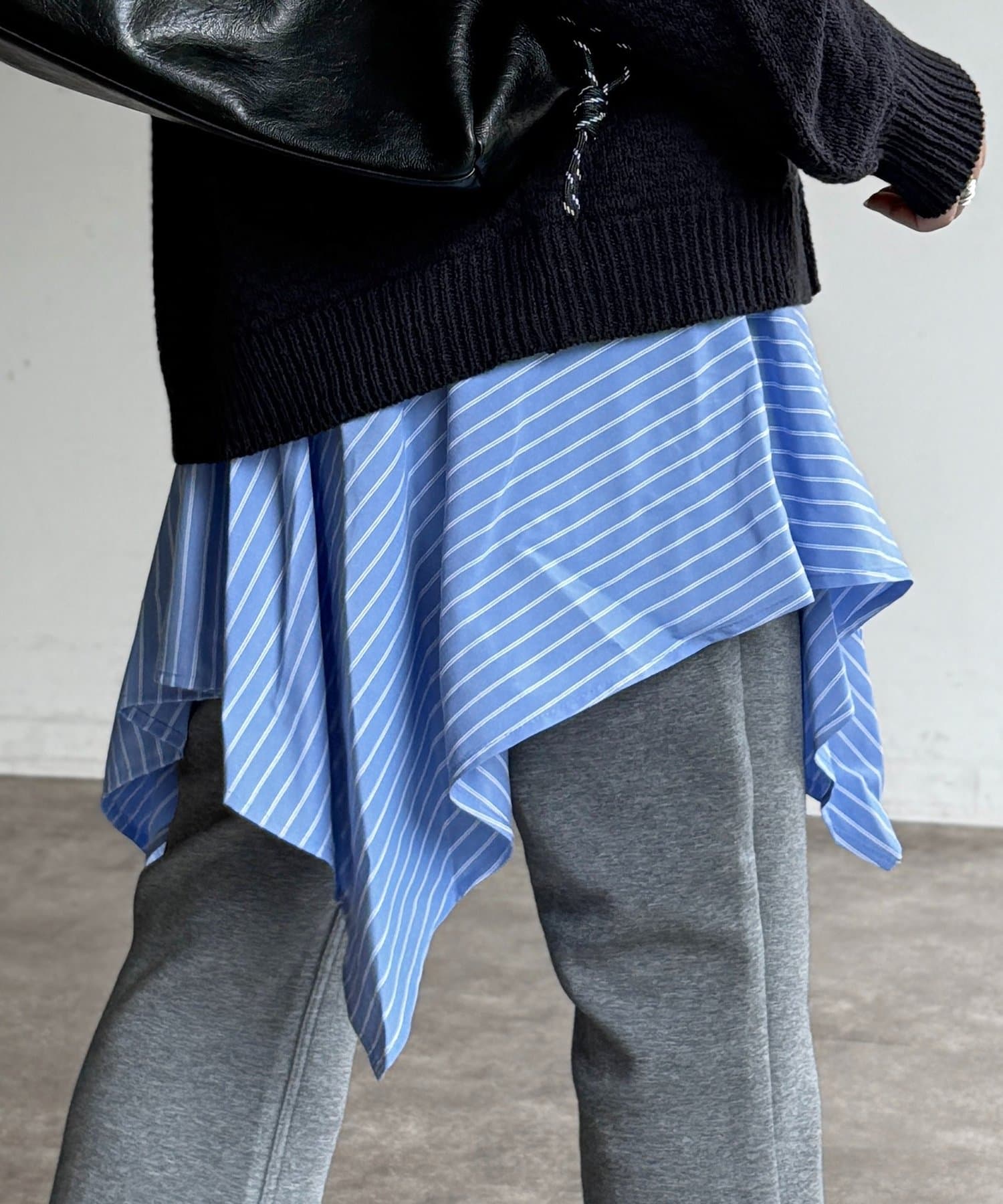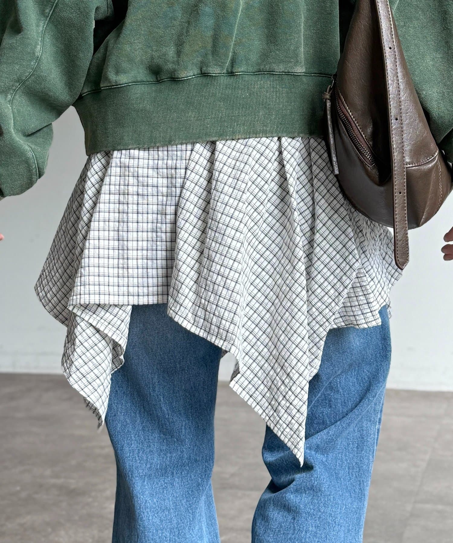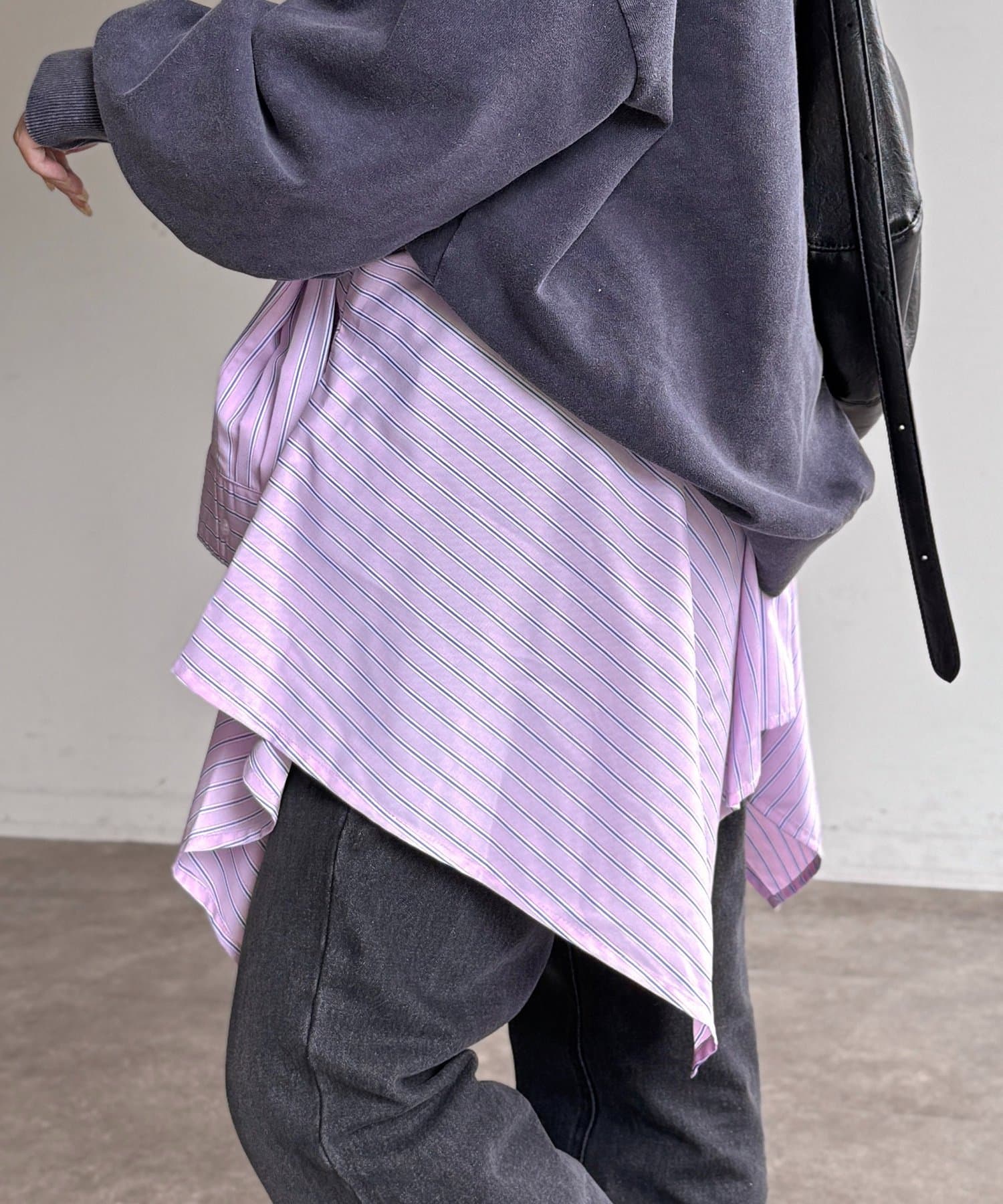 ランダムに見える裾がシャツを巻いたようなデザインでトレンド感UP!