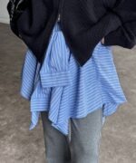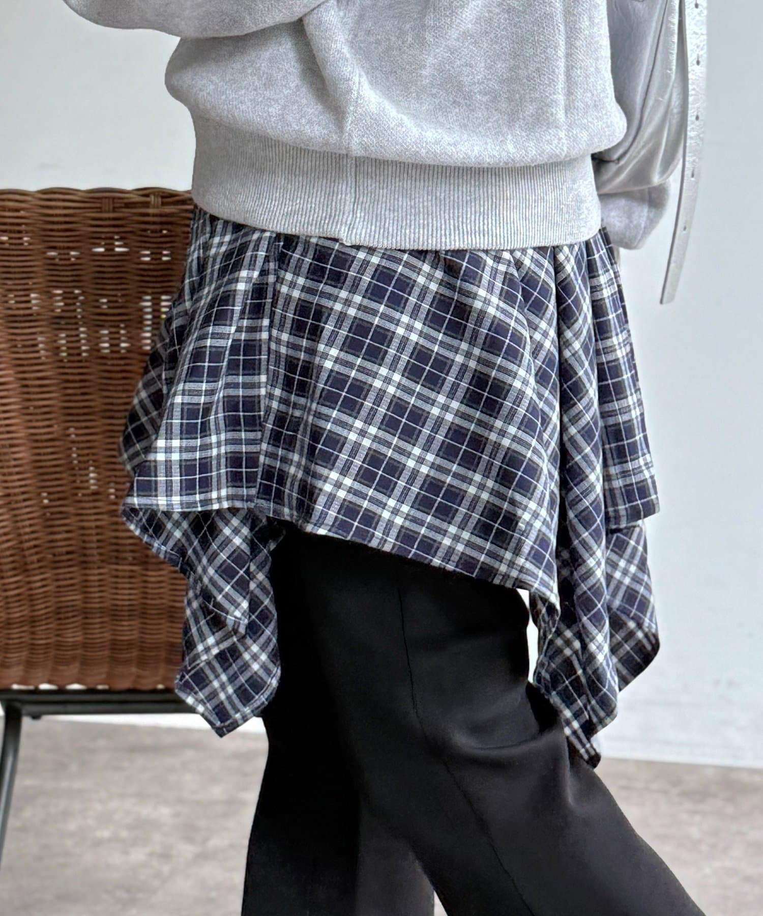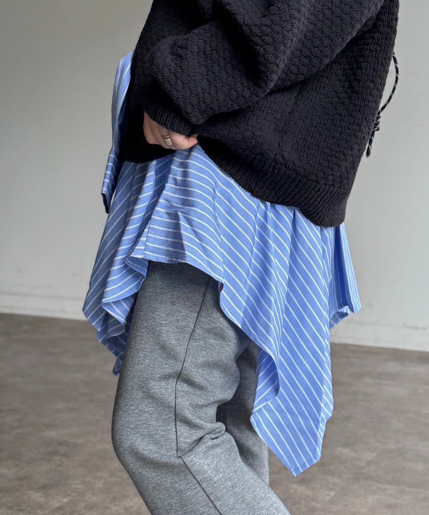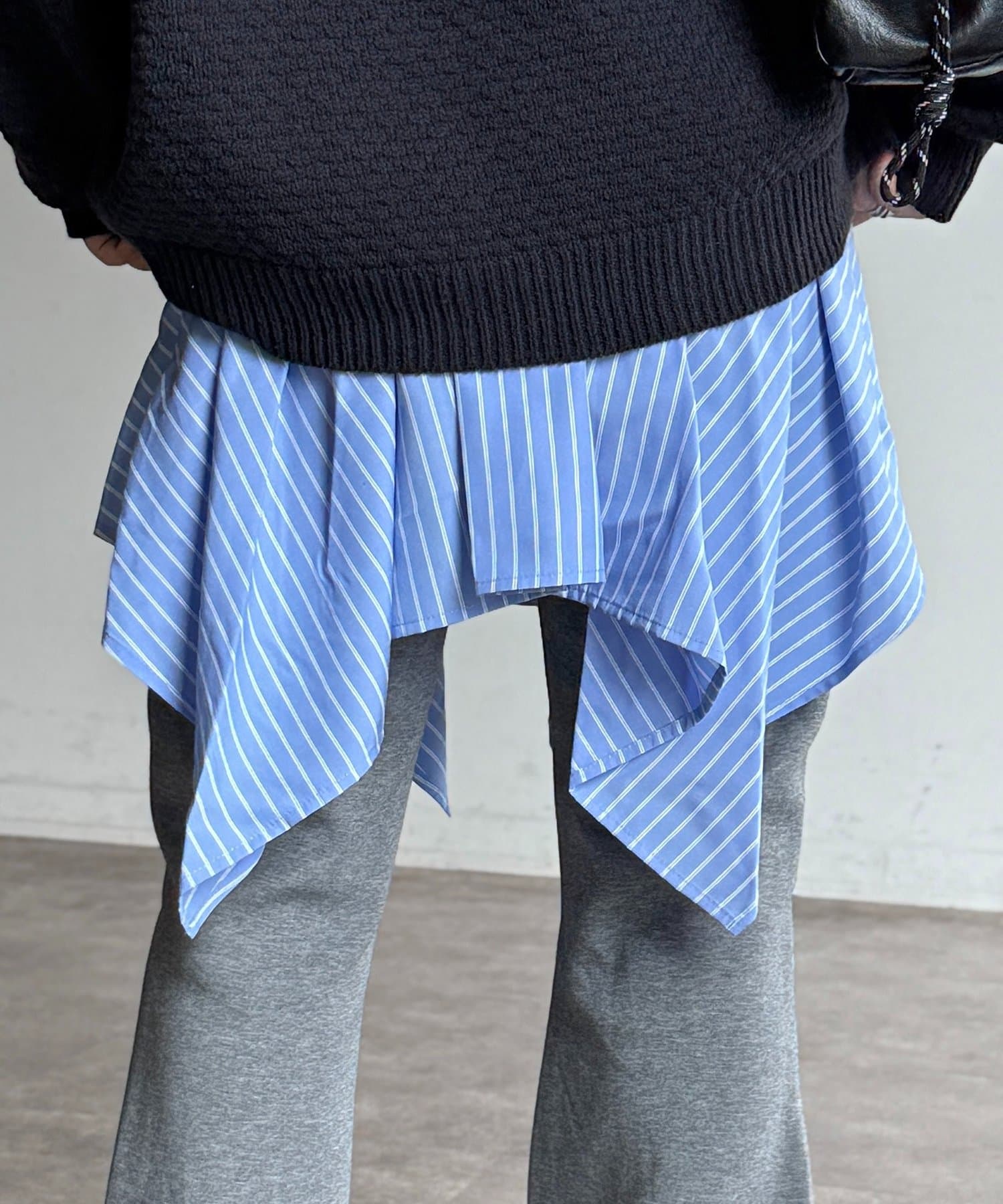 ランダムに見える裾がシャツを巻いたようなデザインでトレンド感UP!
