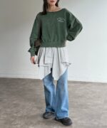 ・スウェットトップスとデニムに合わせれば、カジュアルながらも個性が光るスタイルに