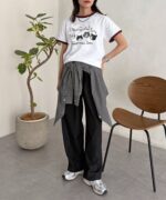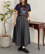 柔らかいスラブ生地で落ち感があるので、がっちりして見えずスッキリと着れます◎