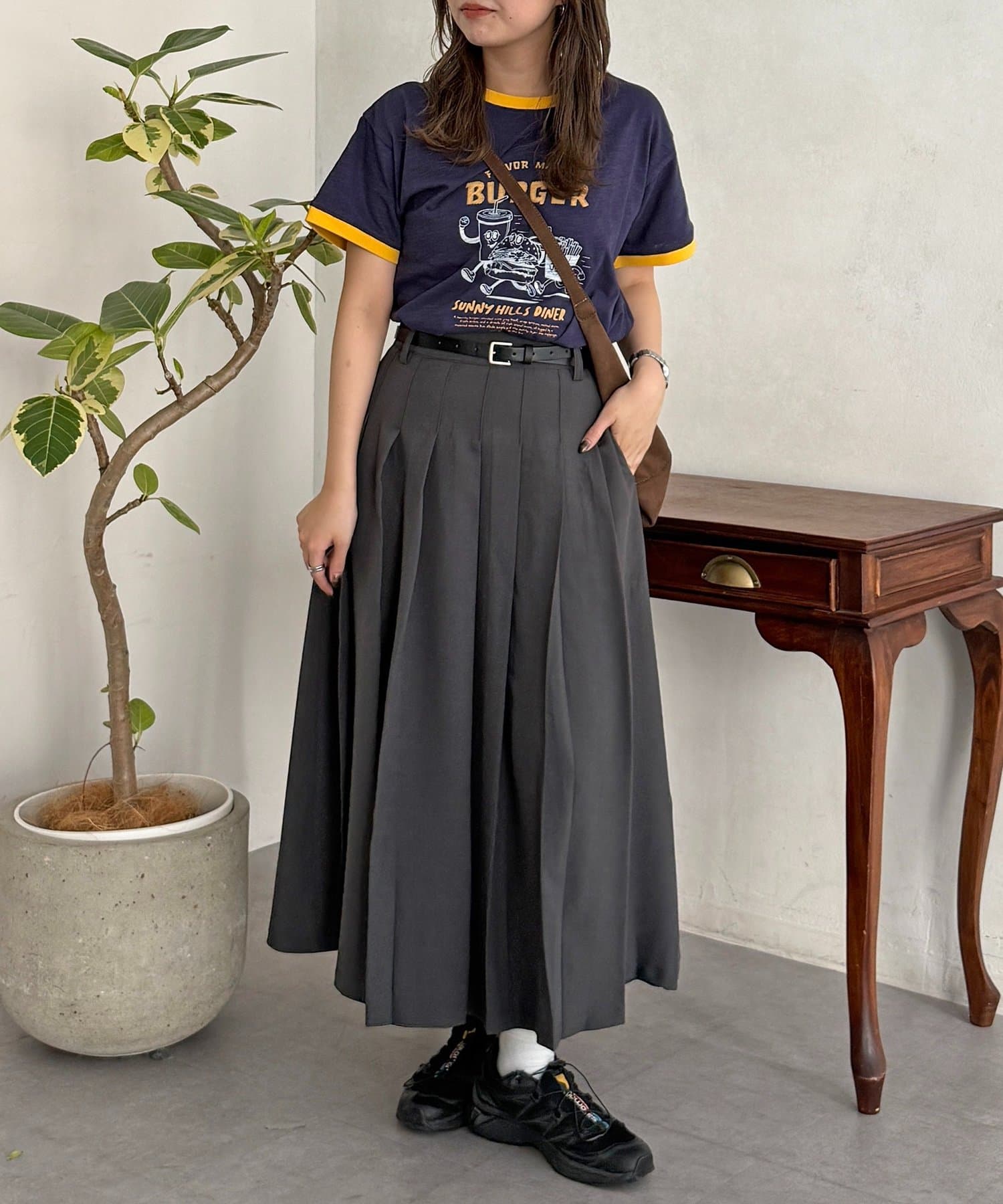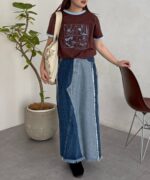 ・デニムスカートとスニーカーを合わせて、とことんカジュアルに。