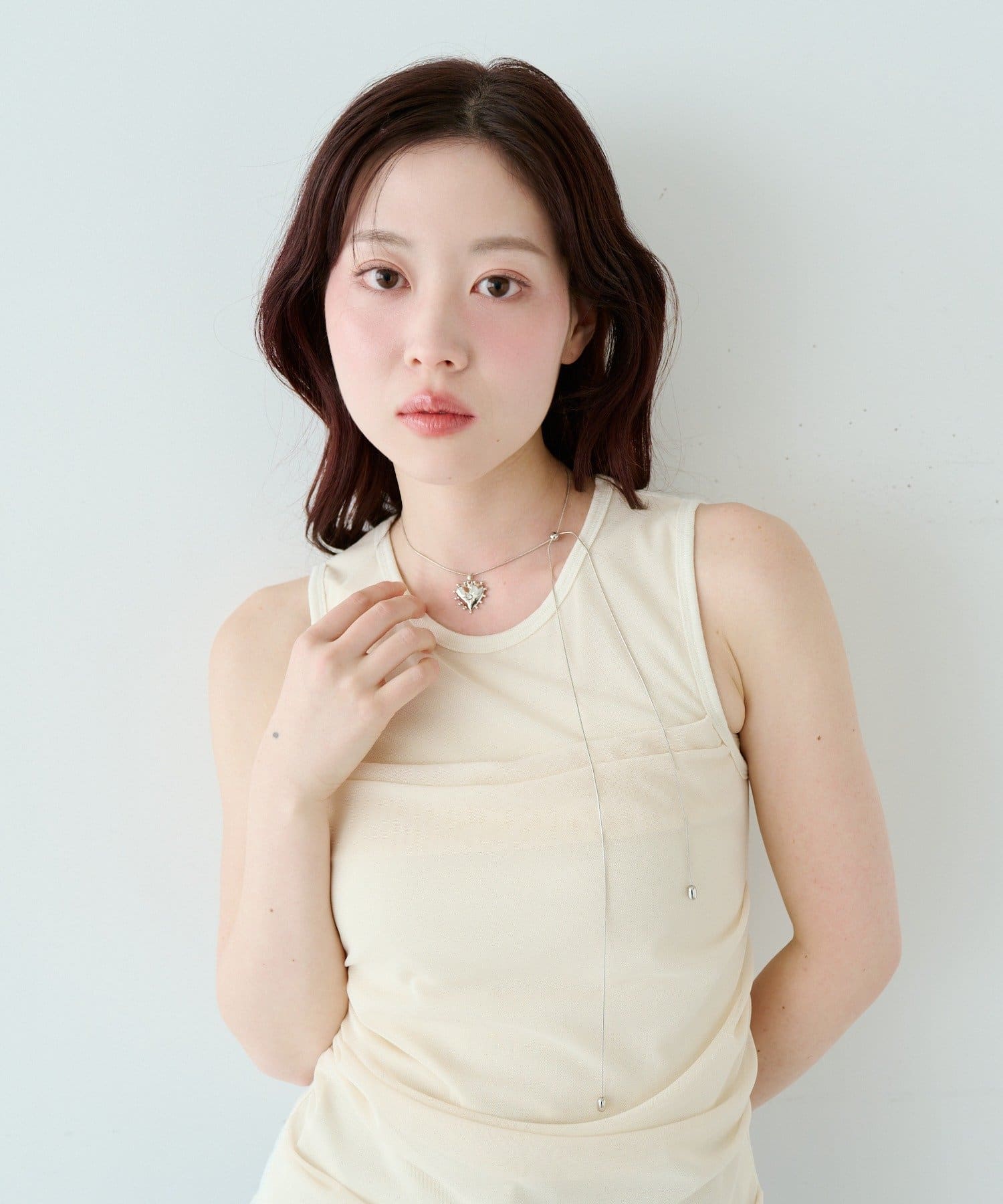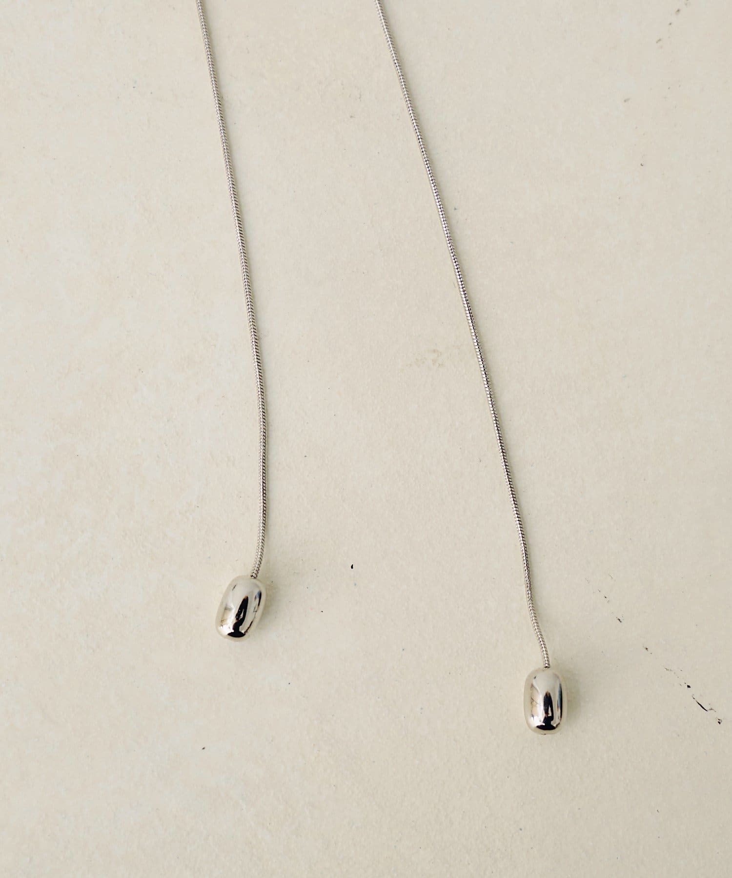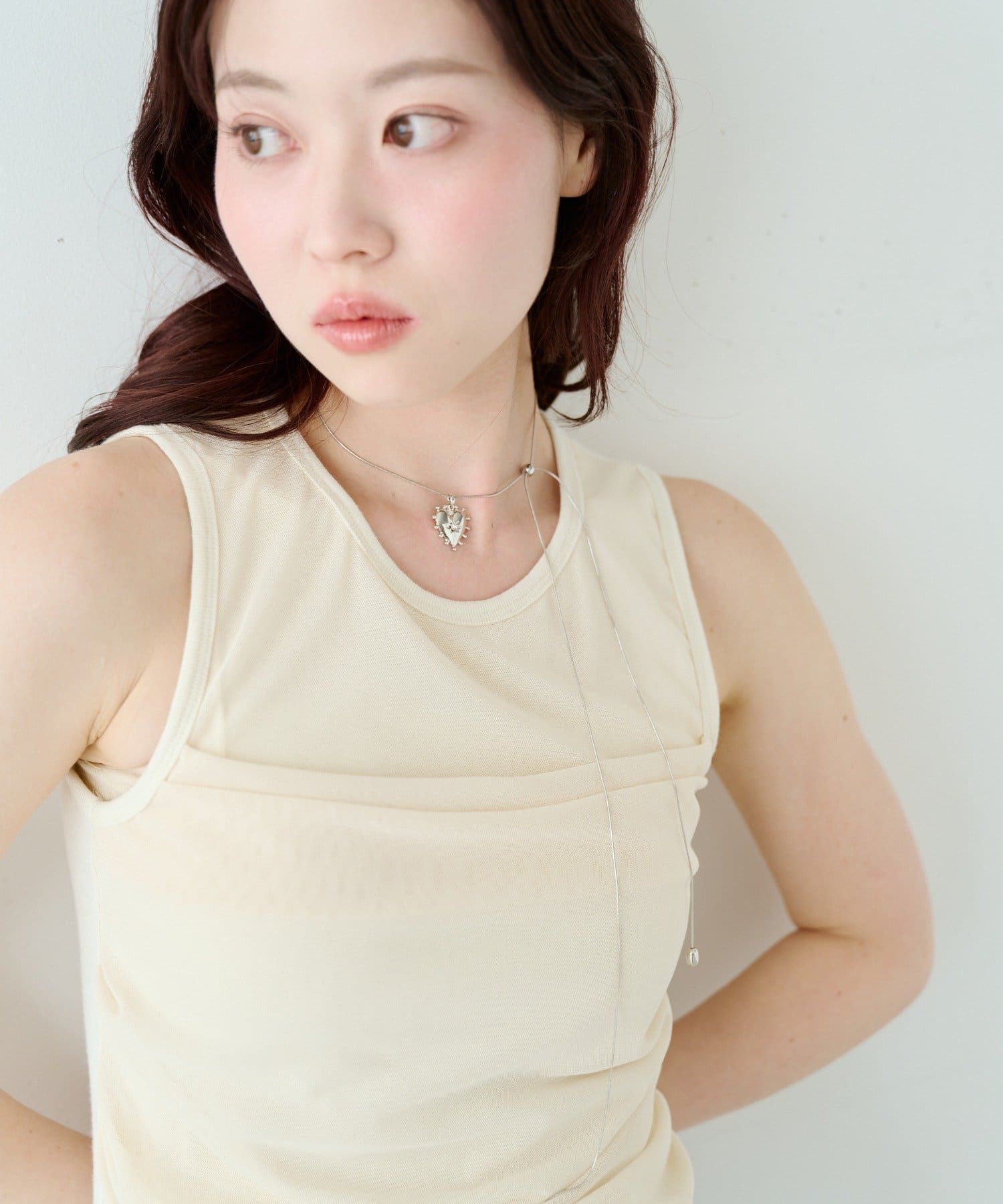艶感のあるメタルハートと、なめらかに沿うスネークチェーンの組み合わせで