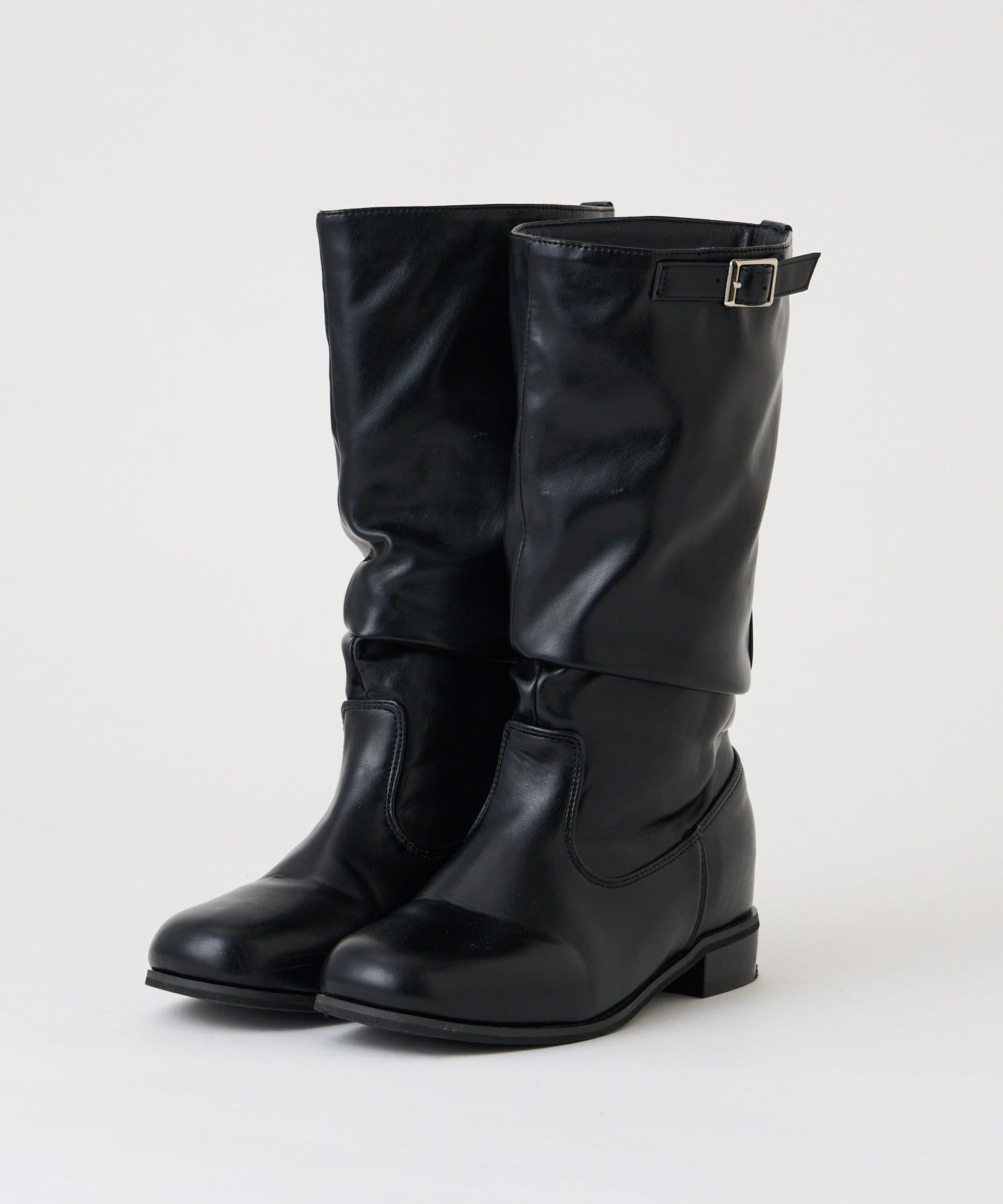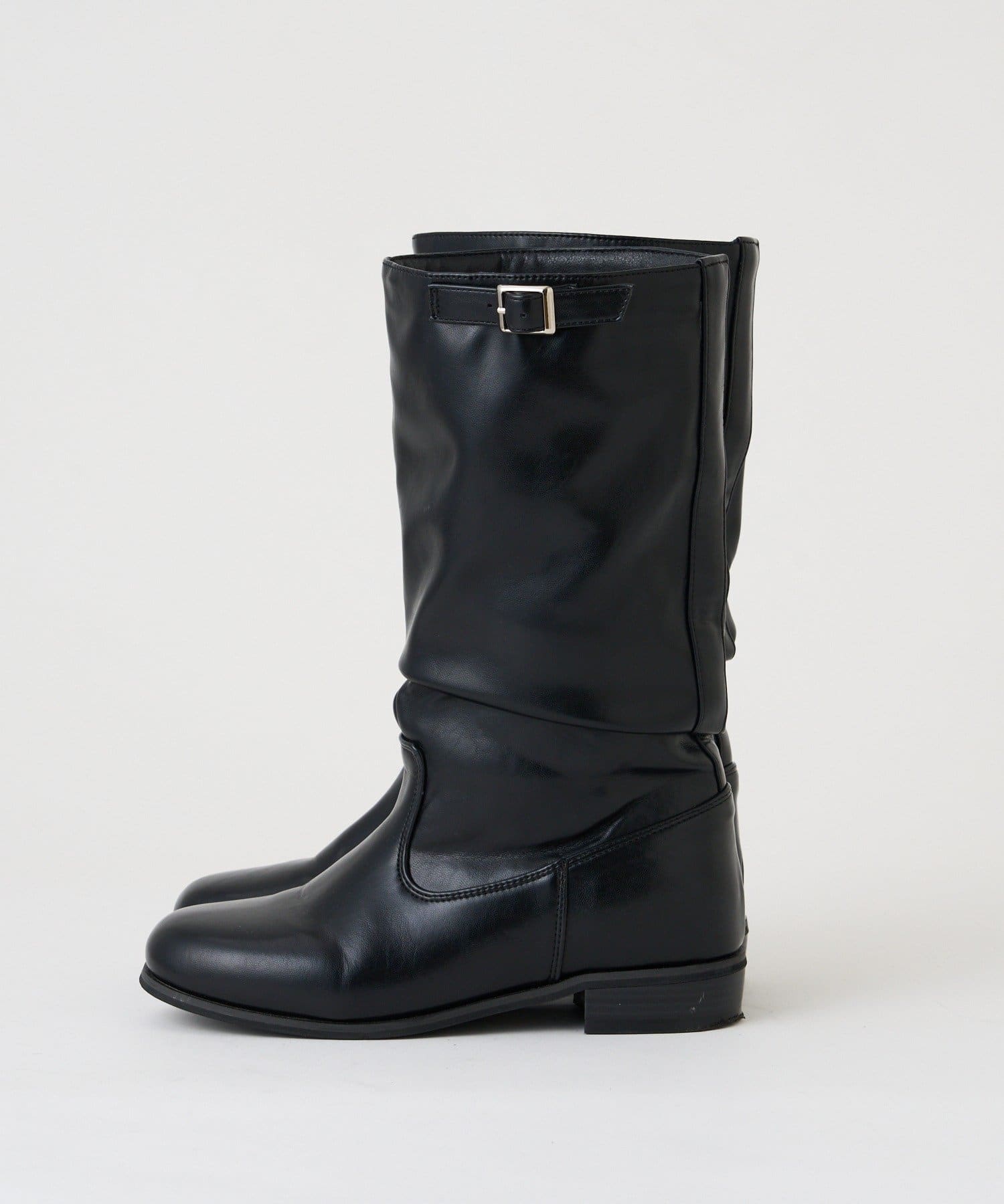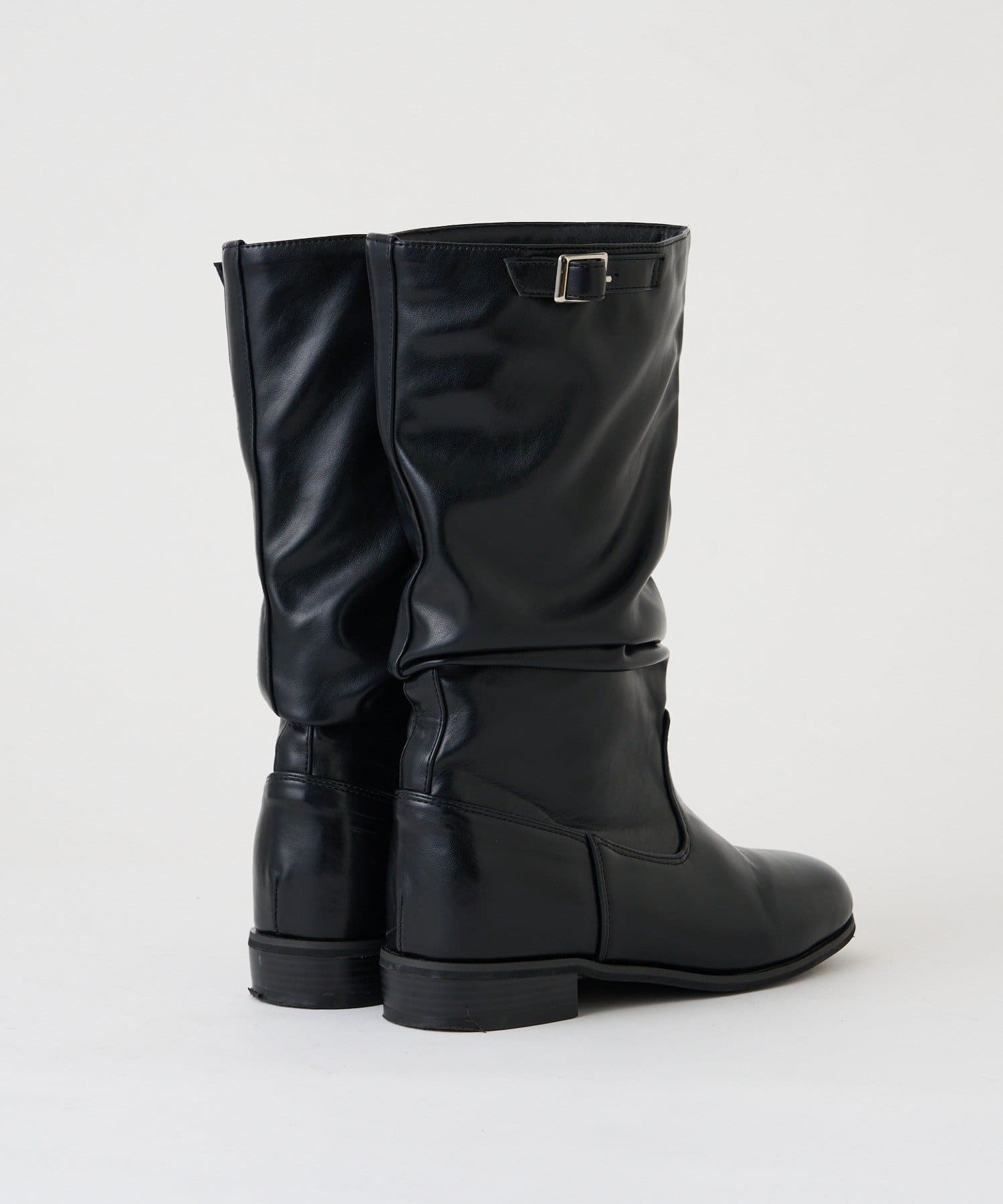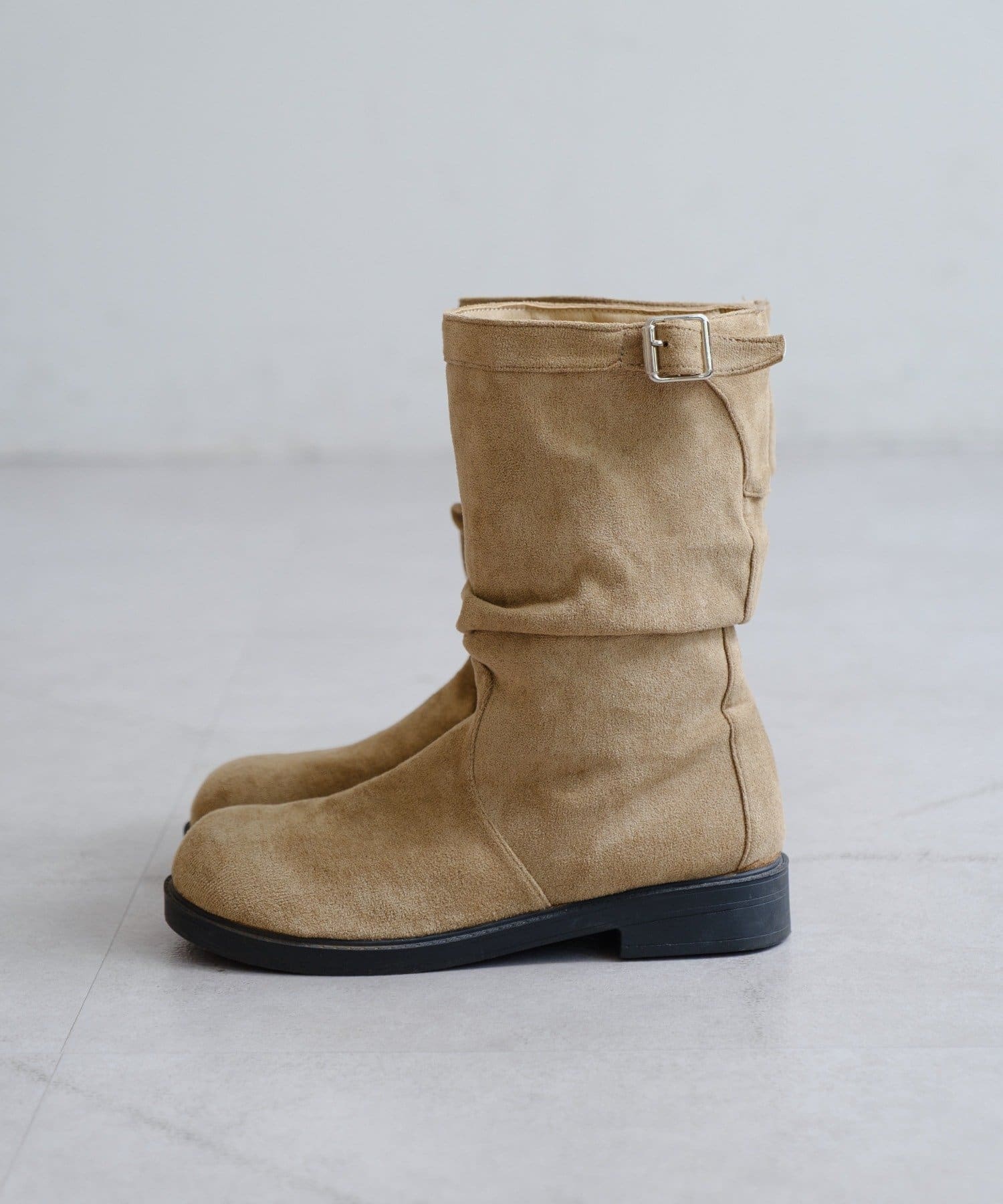 柔らかなスウェード調素材と、大人っぽいレザー調素材で仕上げたルーズエンジニアブーツ。