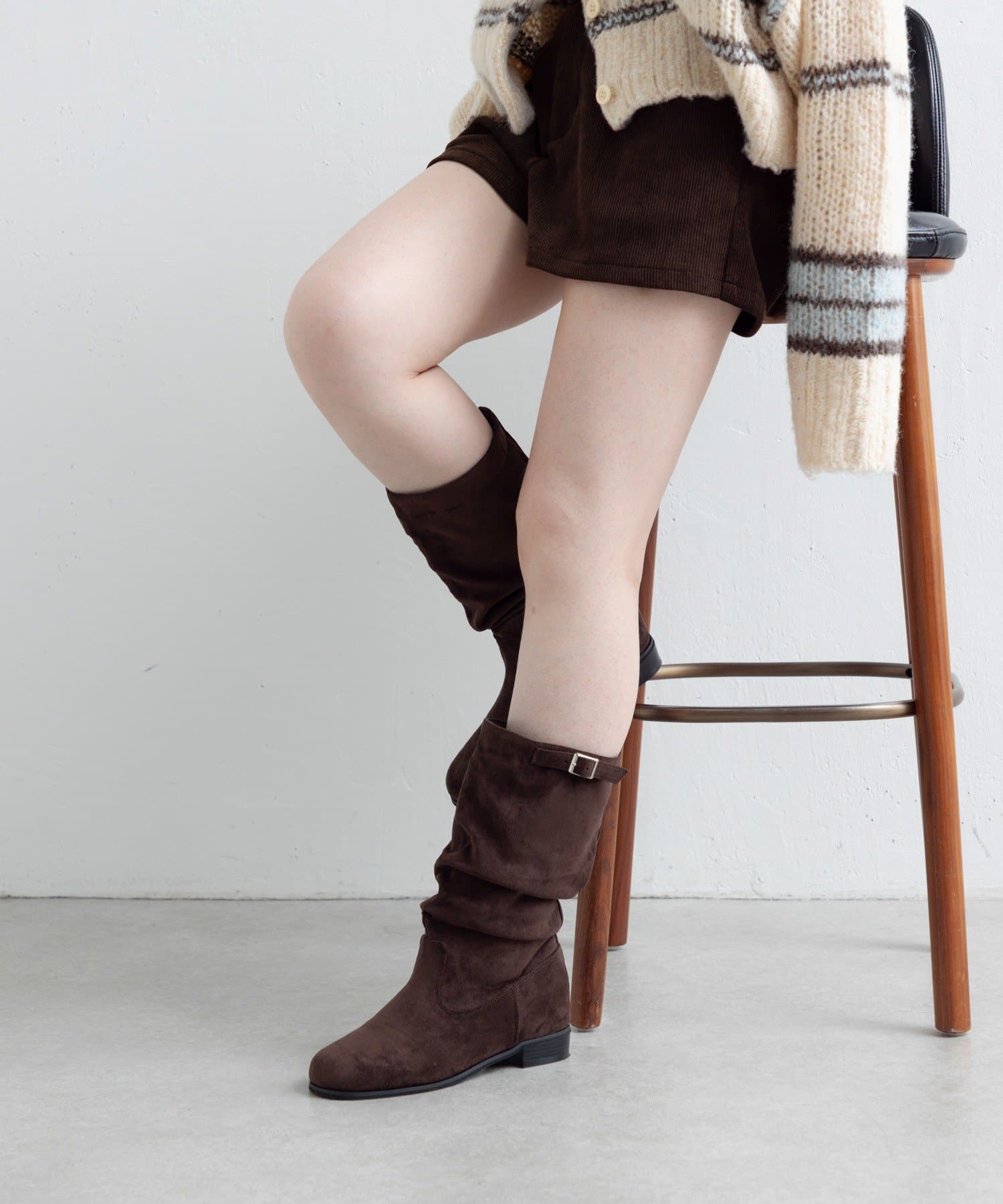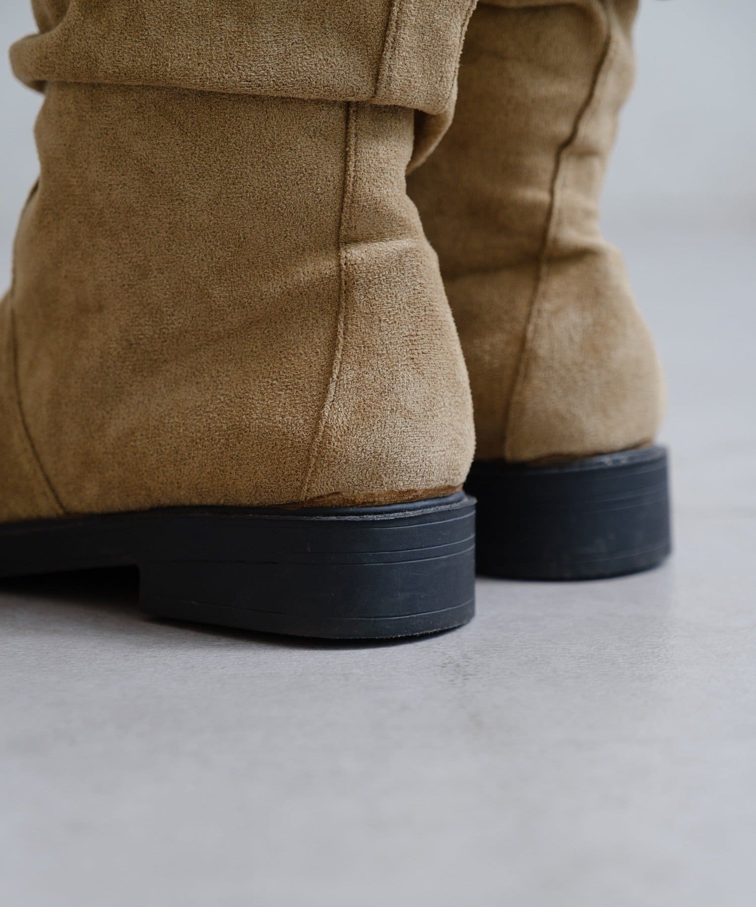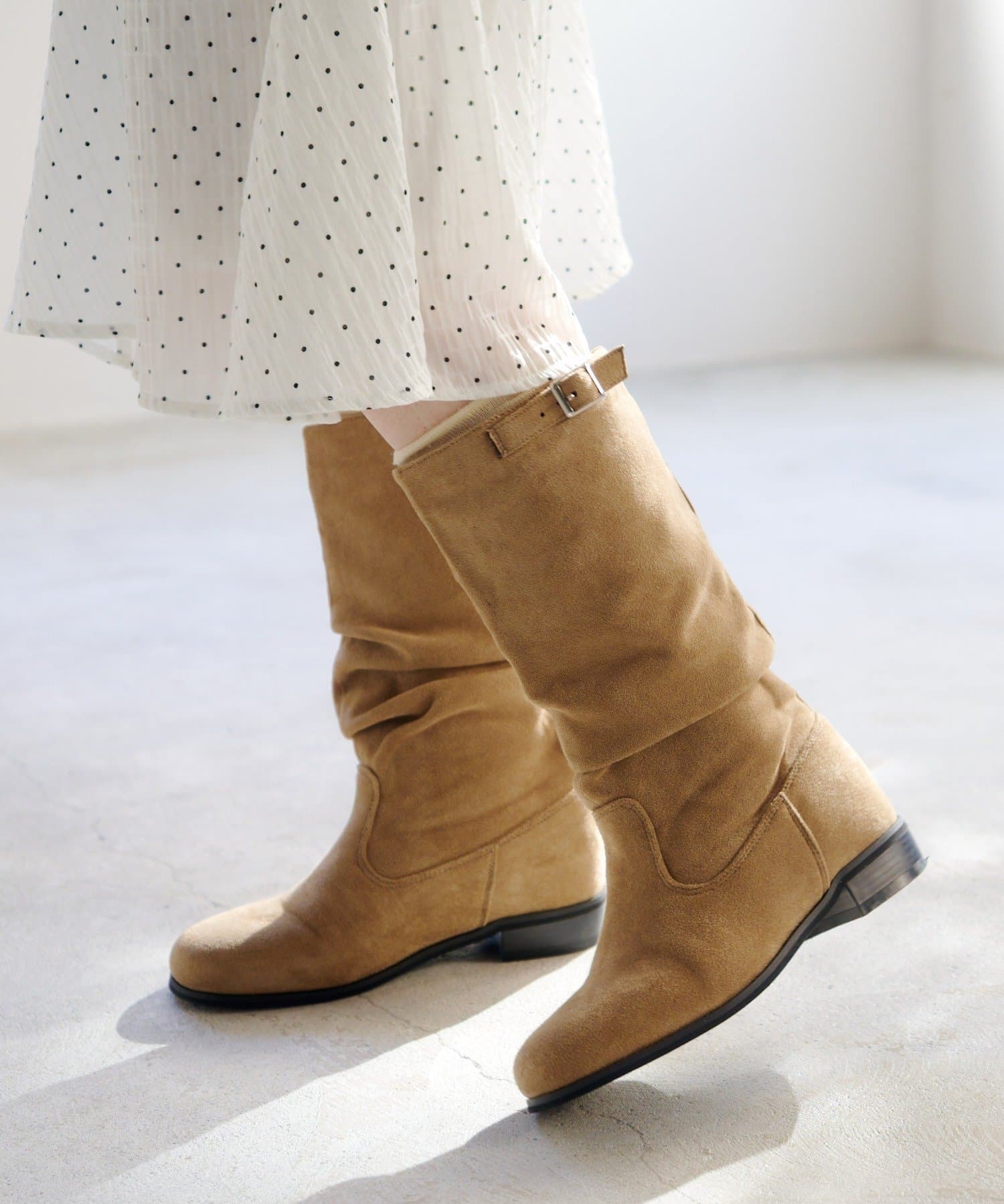 柔らかなスウェード調素材と、大人っぽいレザー調素材で仕上げたルーズエンジニアブーツ。
