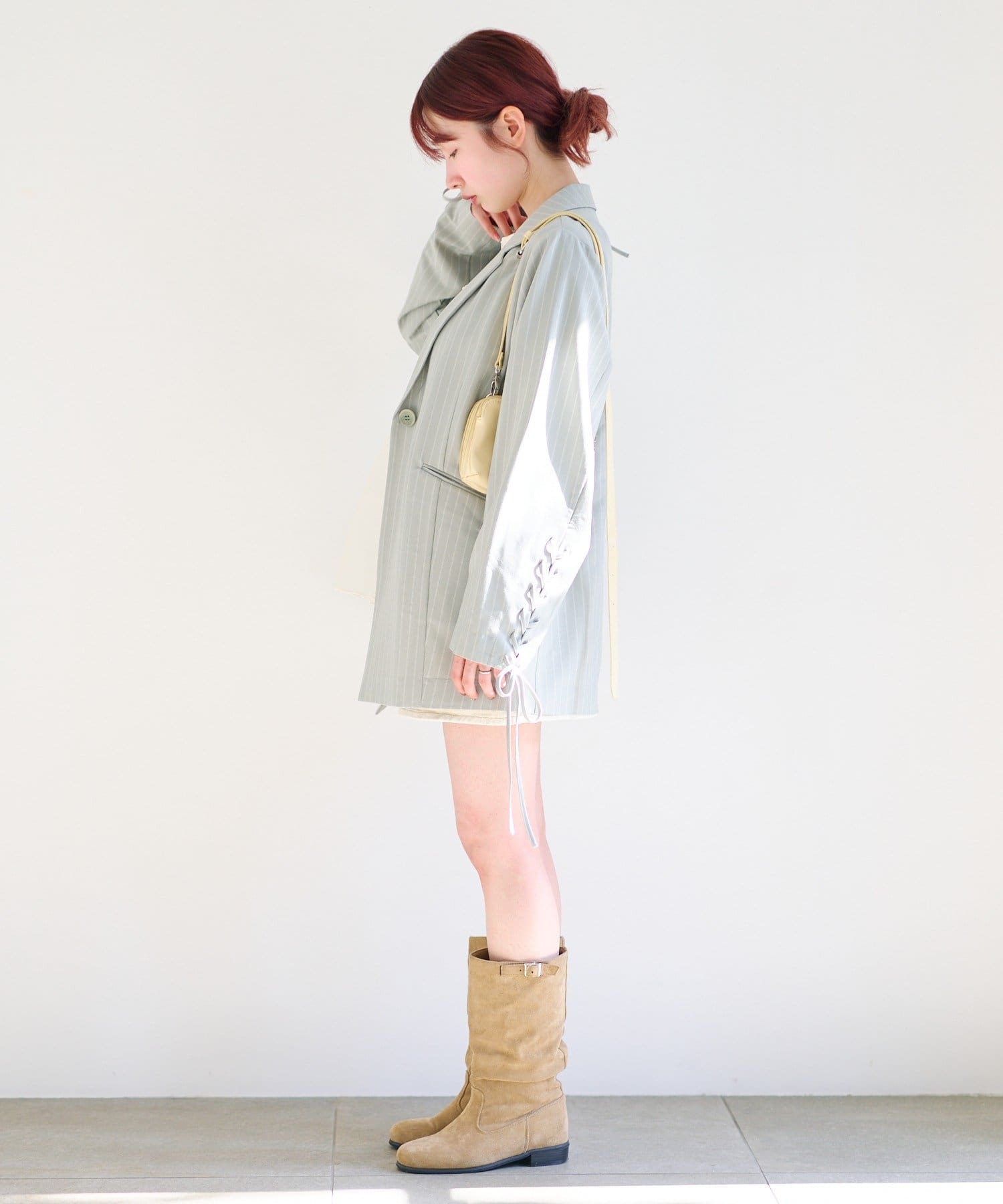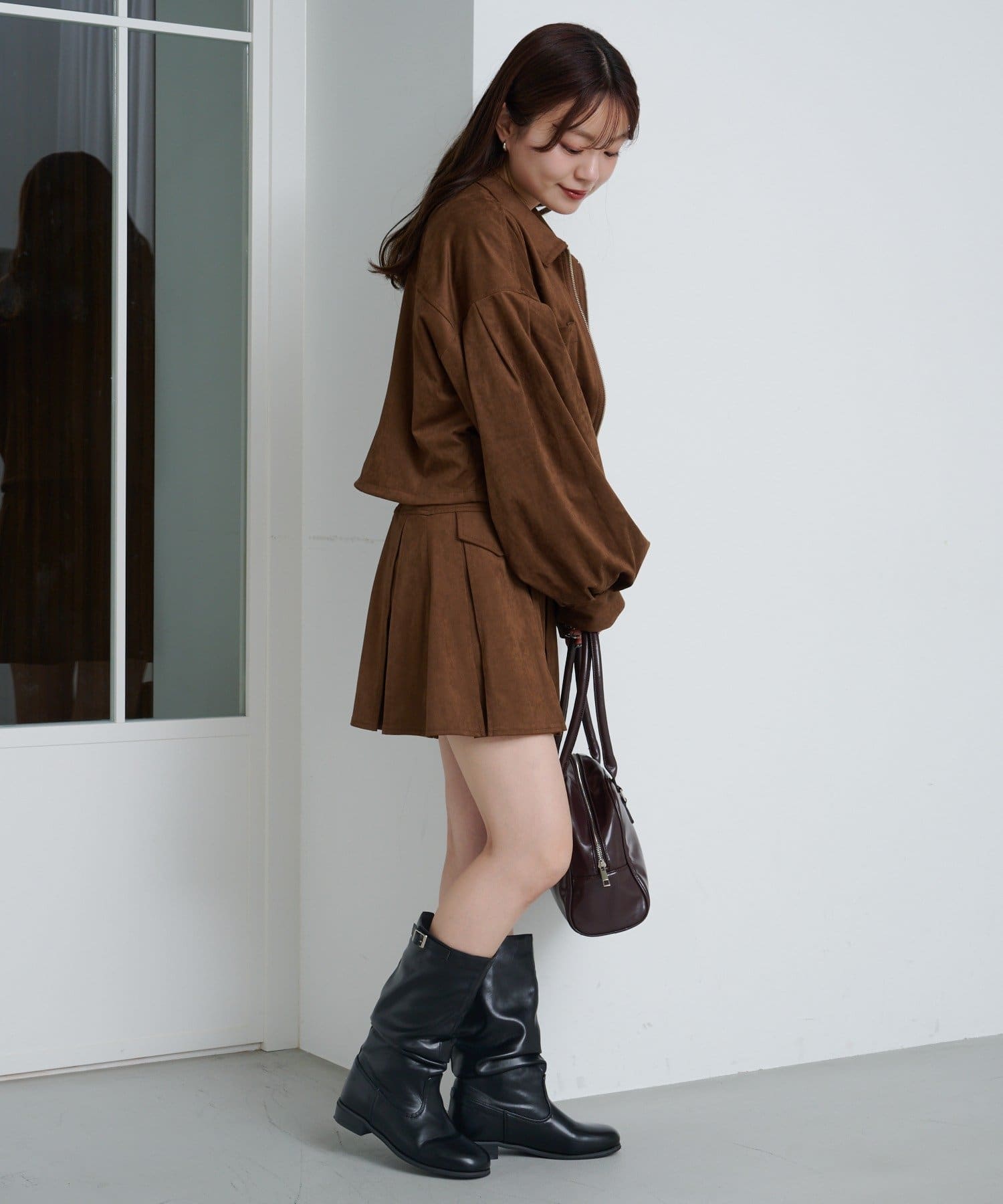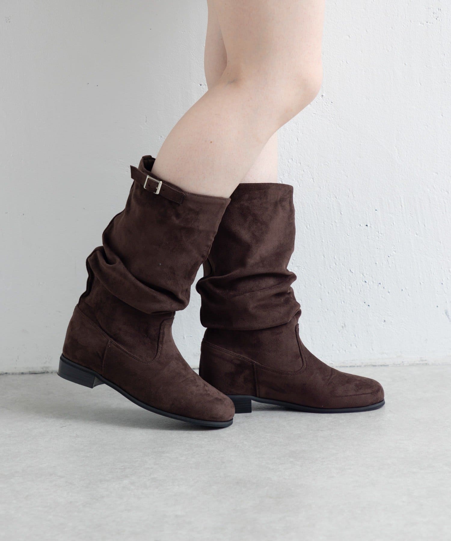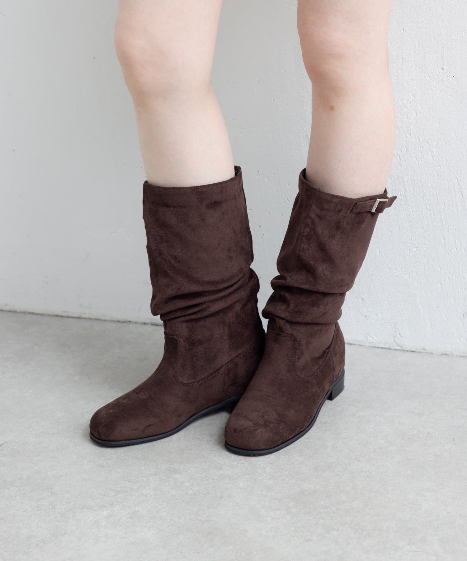 柔らかなスウェード調素材と、大人っぽいレザー調素材で仕上げたルーズエンジニアブーツ。