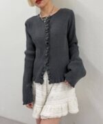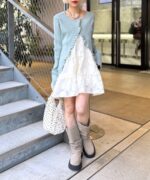 ・長めの着丈なのでボタンを2~3個外して抜け感を出すのがおすすめ