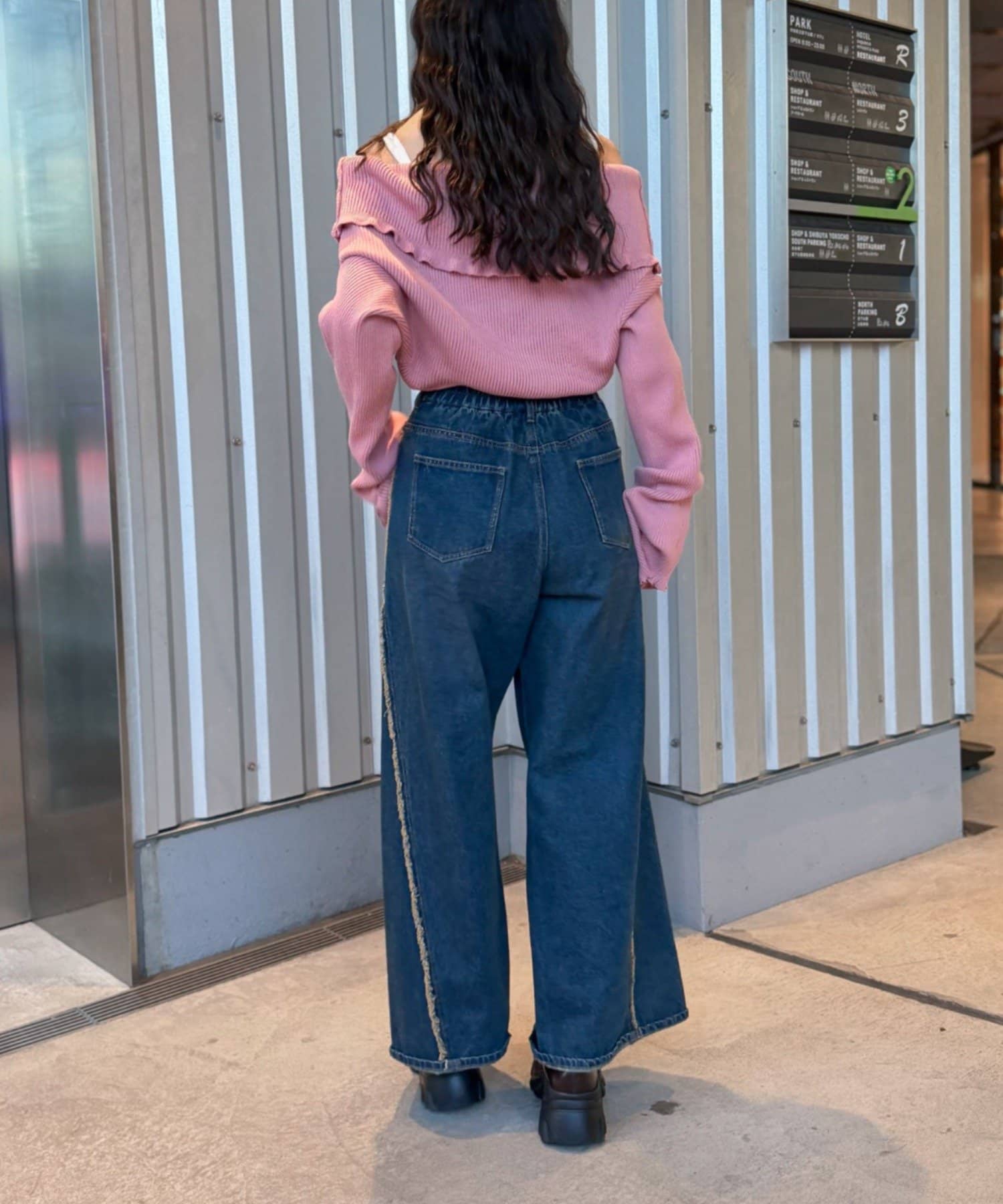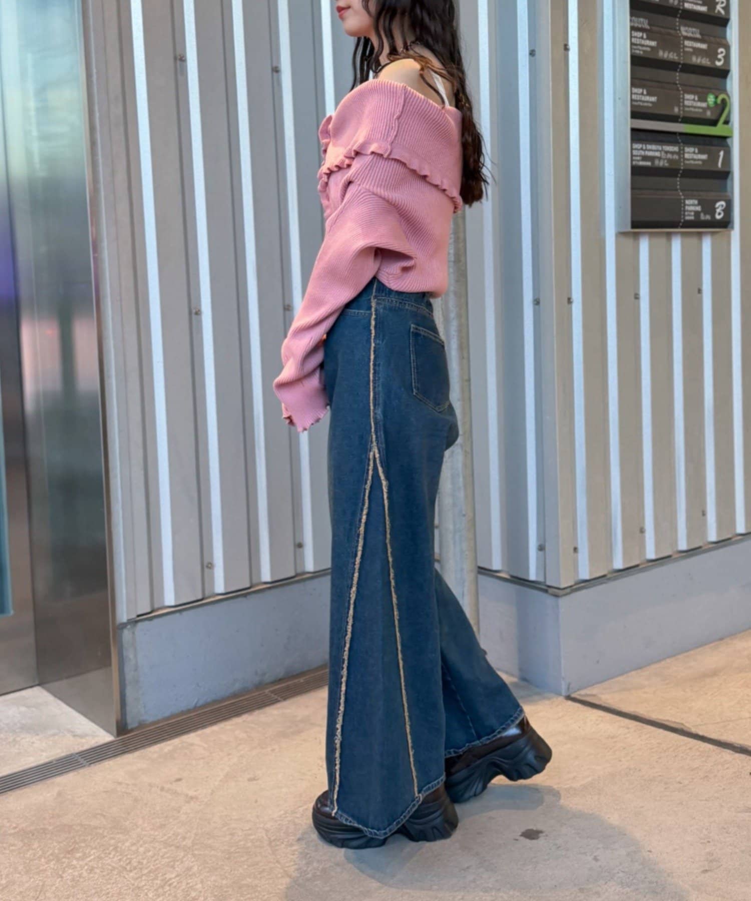 ・オフショルダーで着用する際にはデニムでカジュアルダウンさせるのも◎