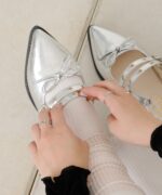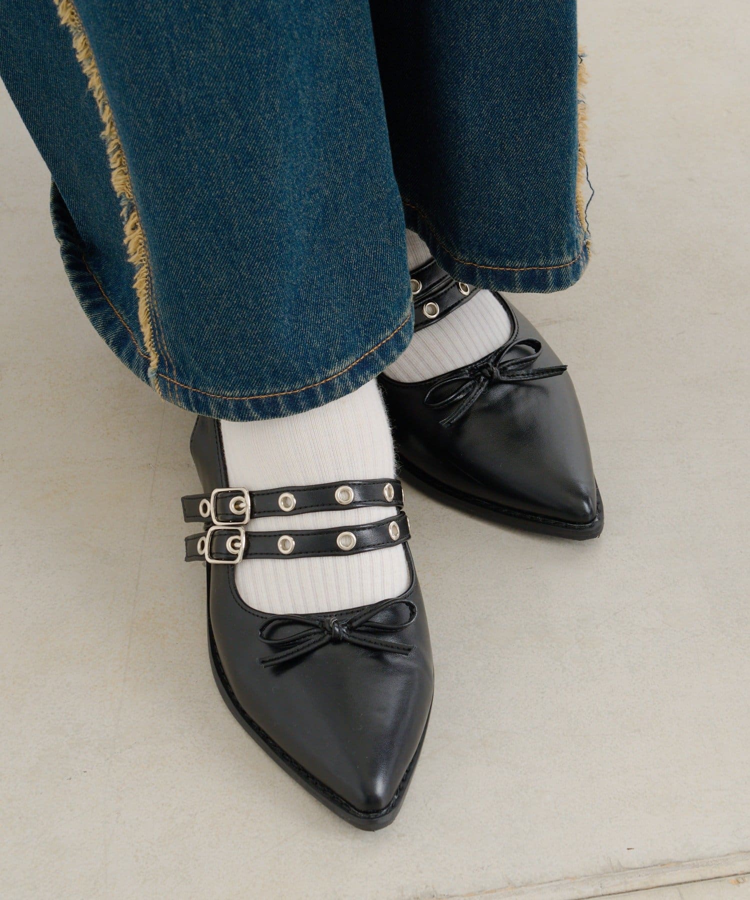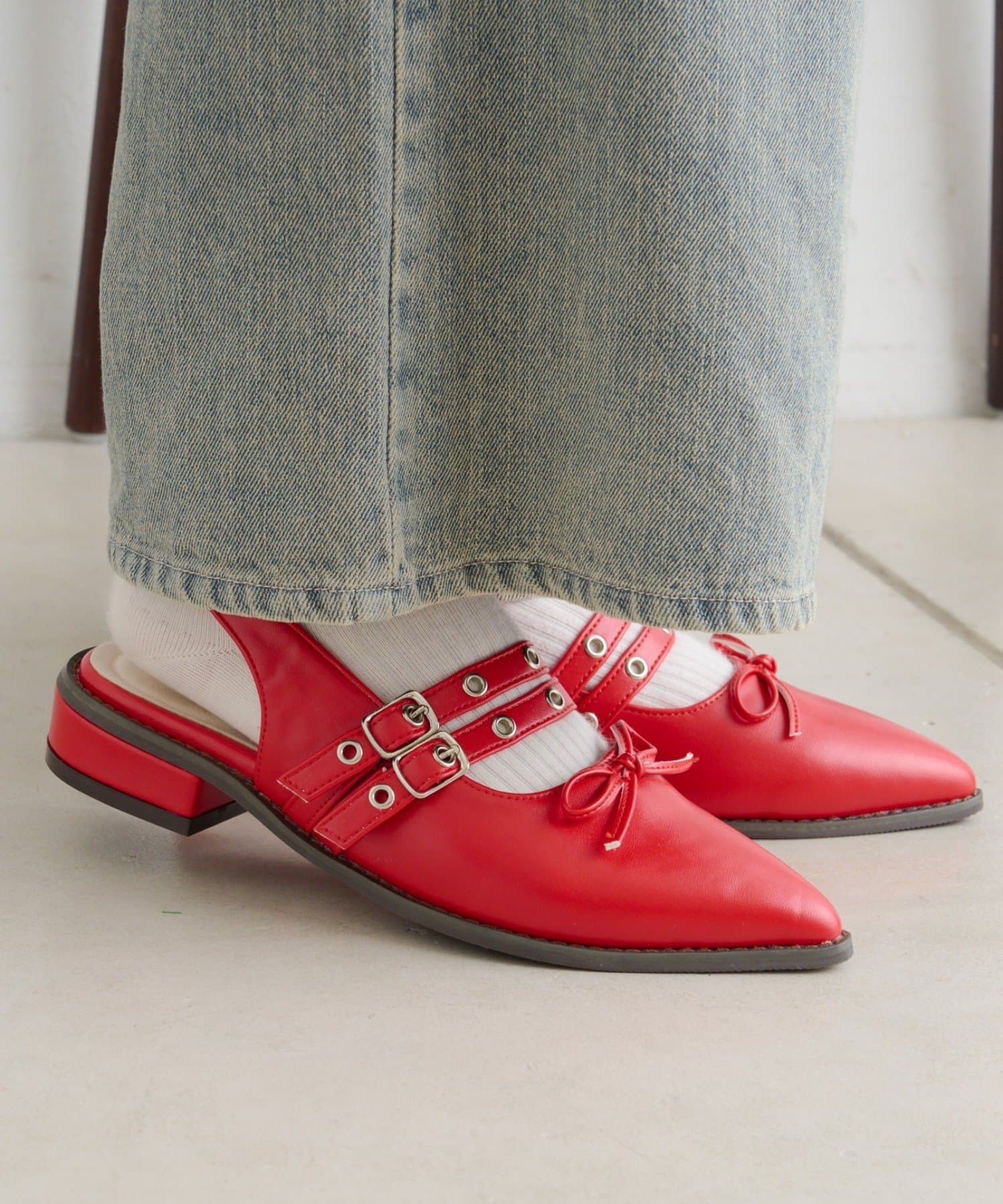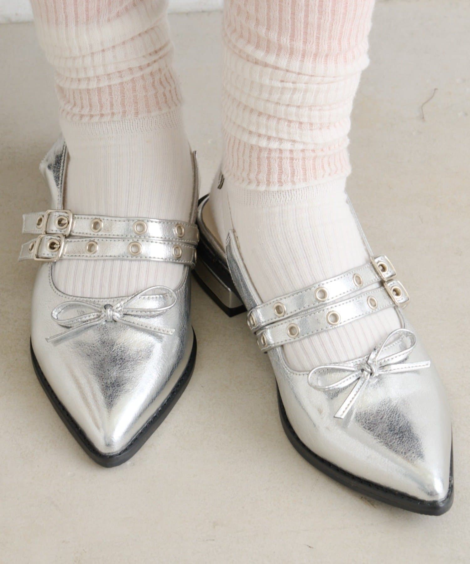 ・リボンデザインにポインテッドトゥの形を合わせたバランス感が可愛い