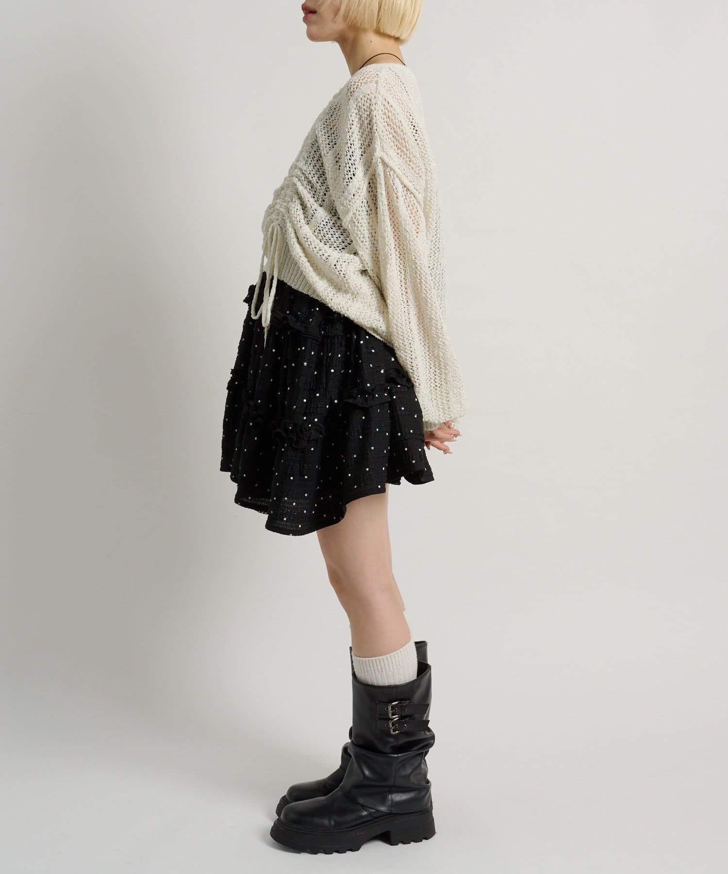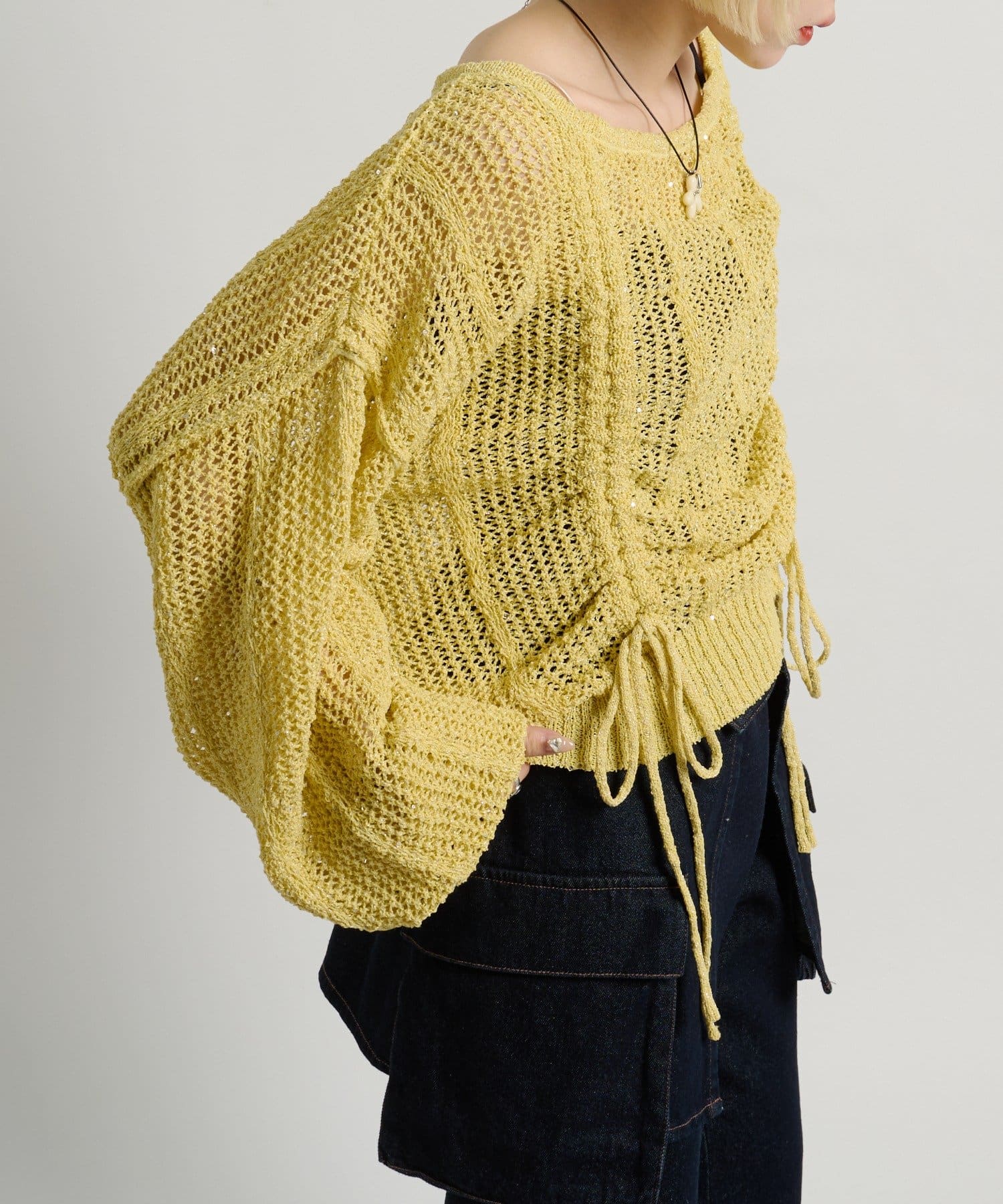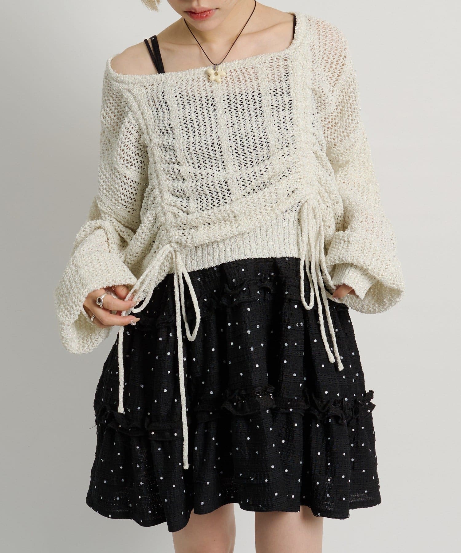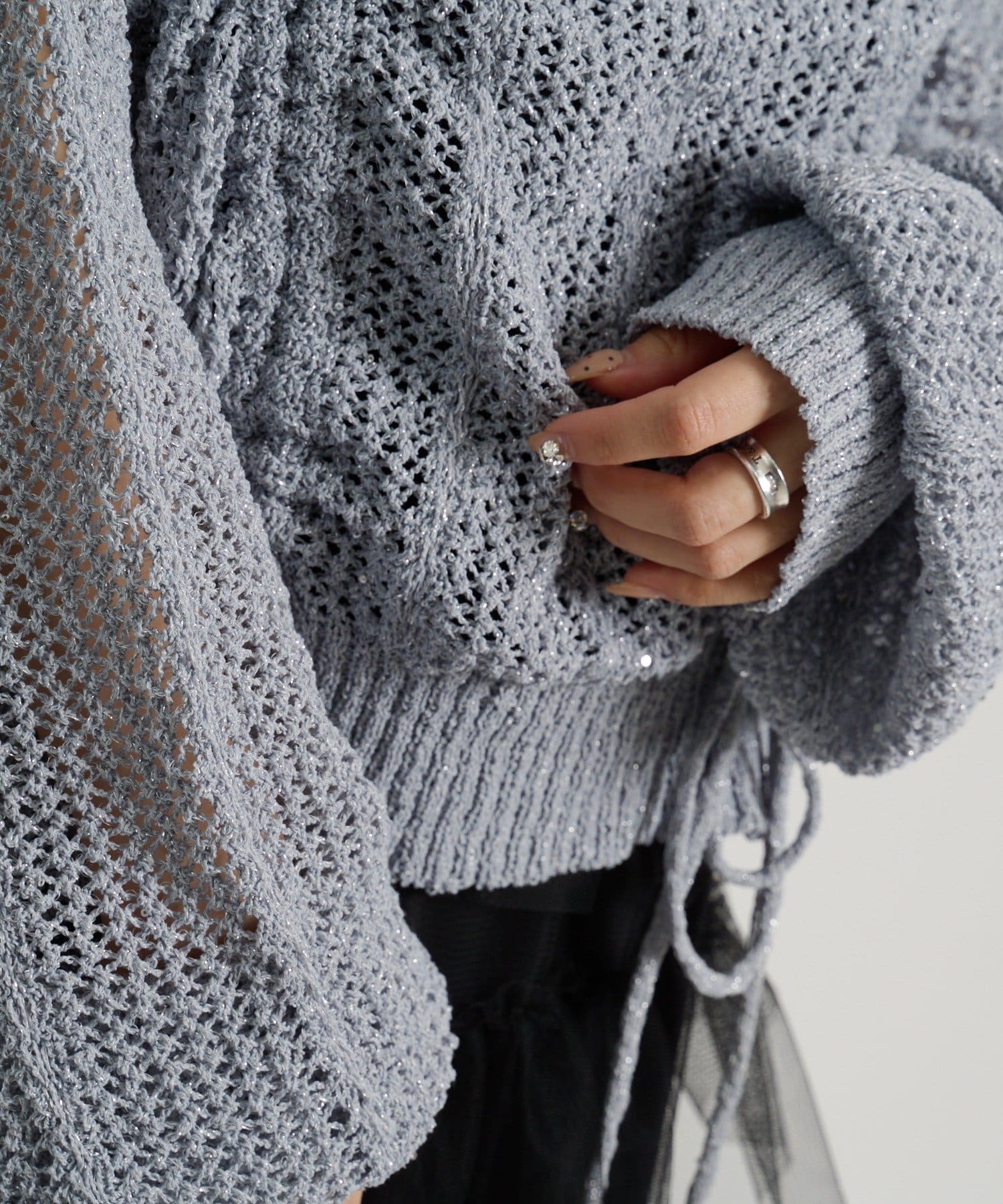繊細なラメ糸にスパンコールを織り込んだ、キラキラかわいいドロスト春ニット