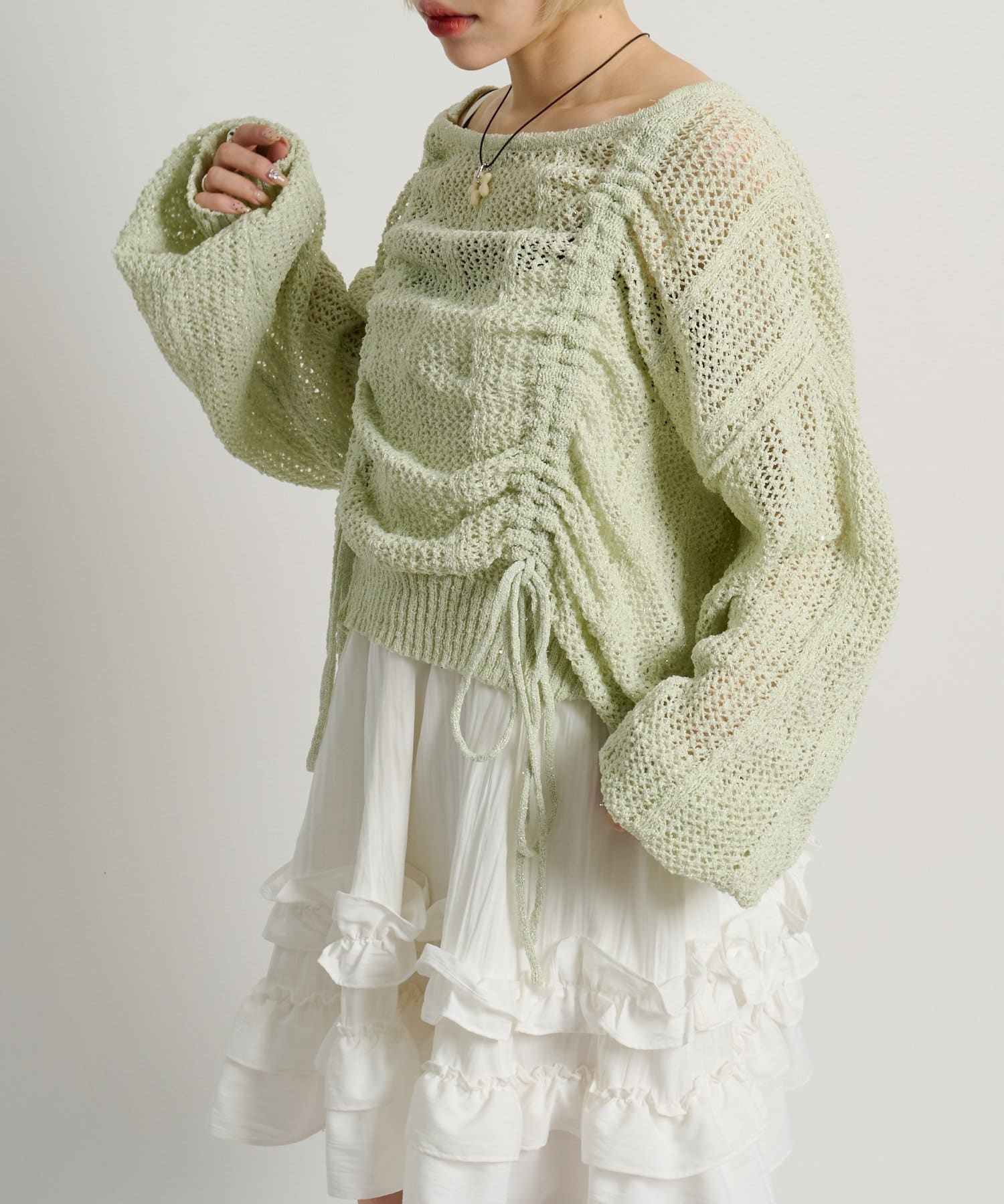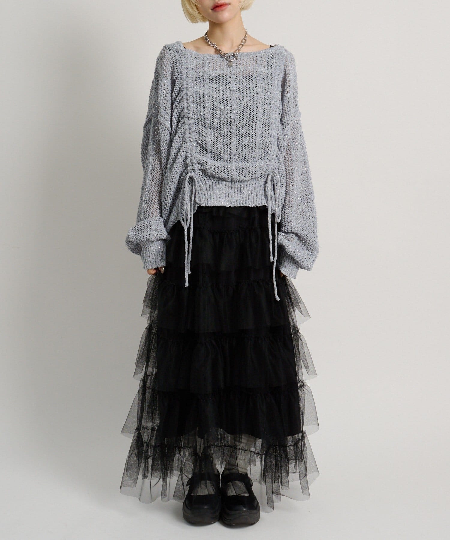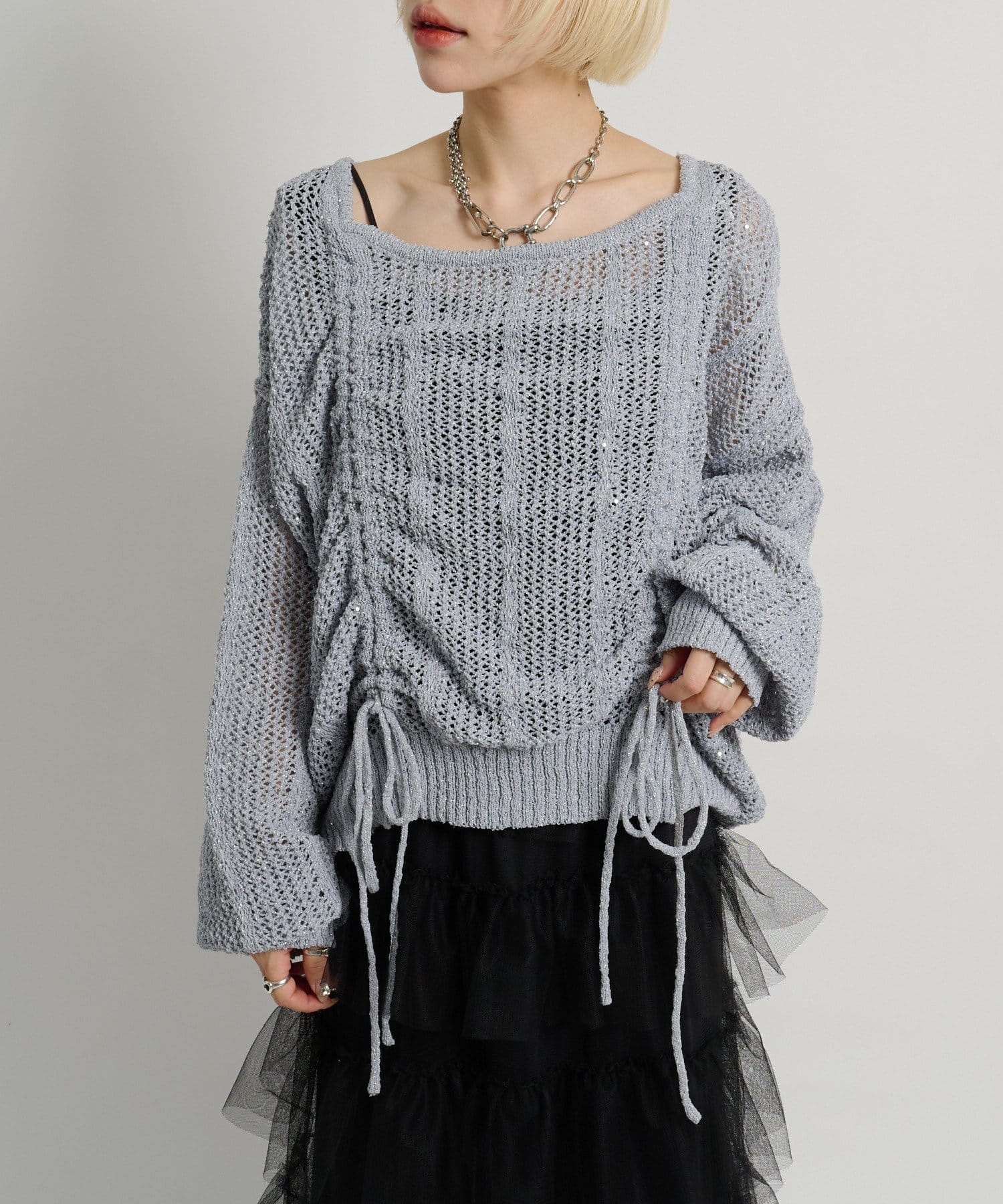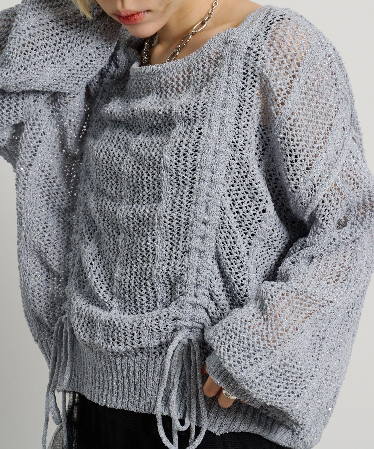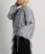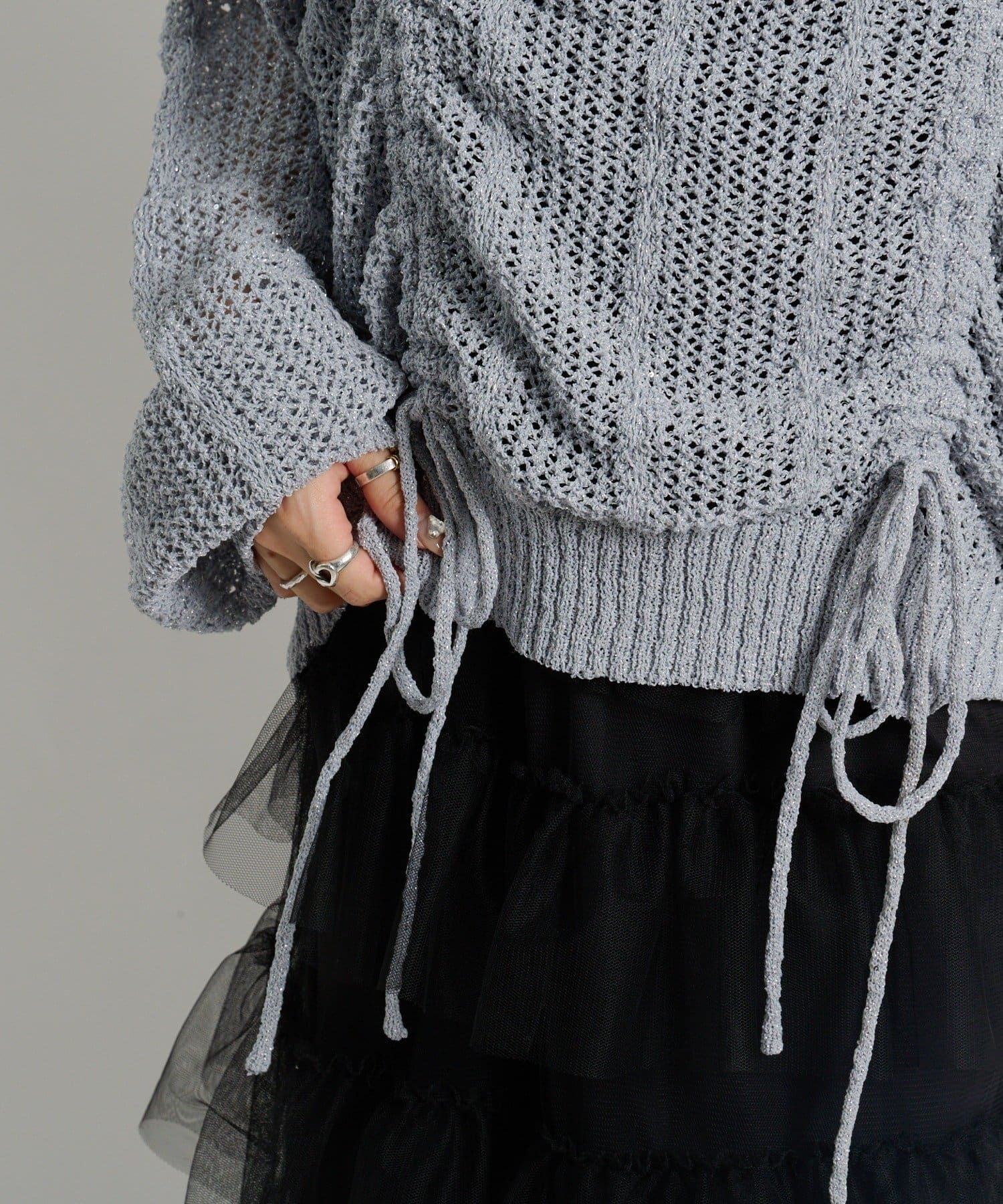 繊細なラメ糸にスパンコールを織り込んだ、キラキラかわいいドロスト春ニット