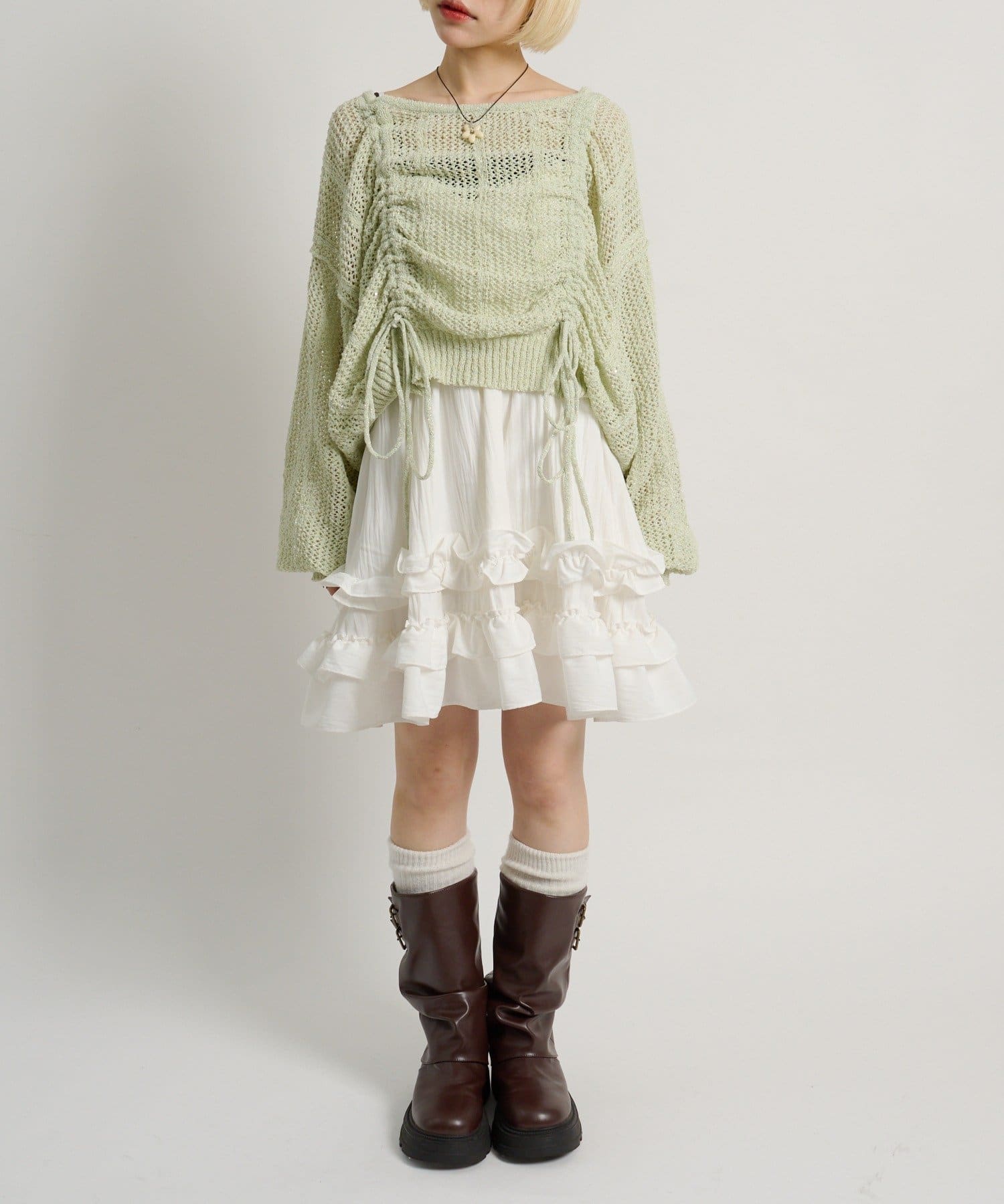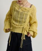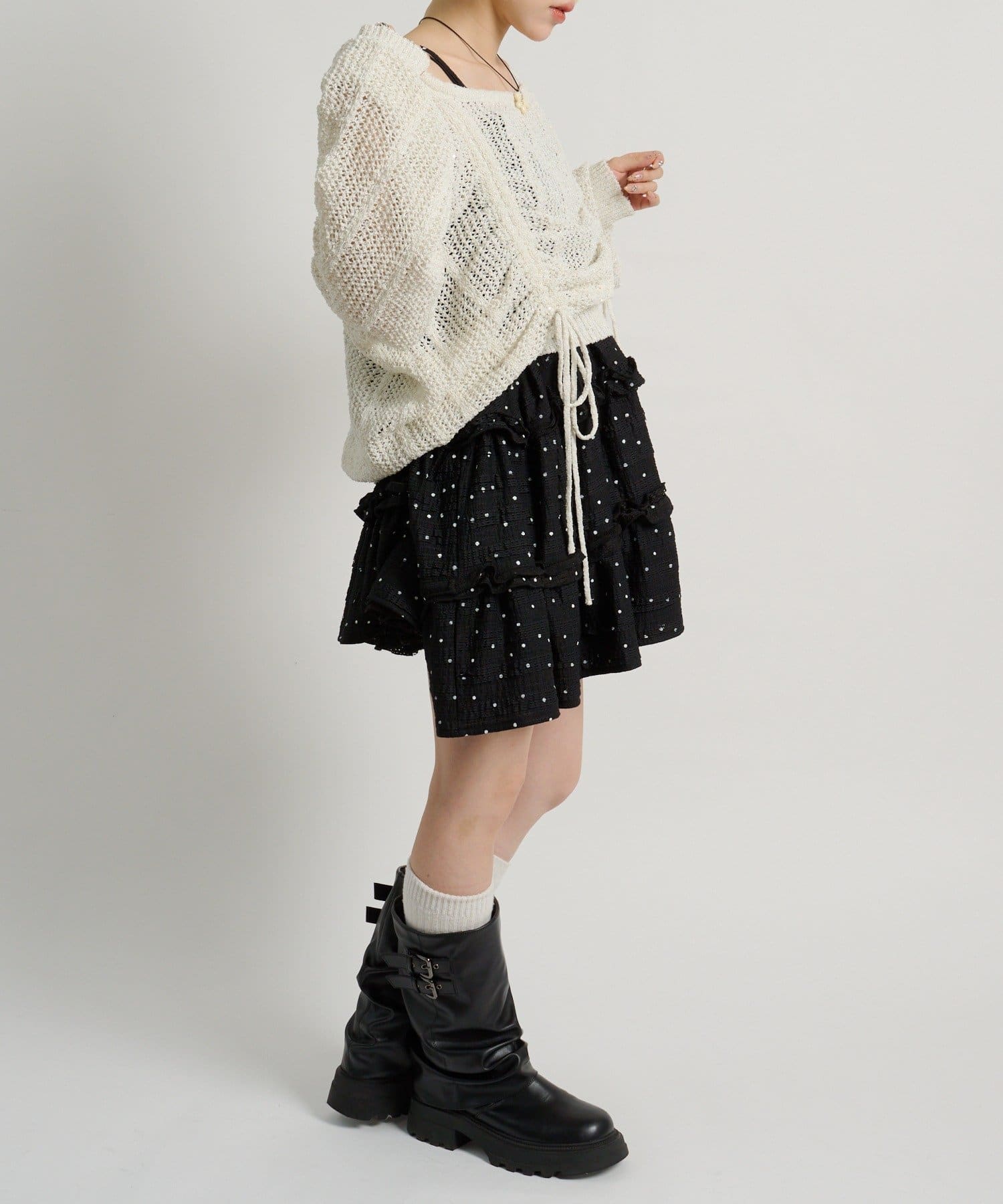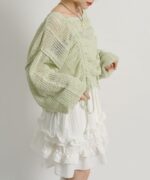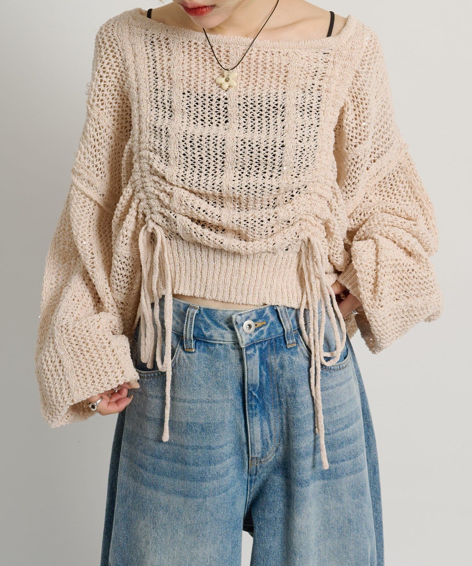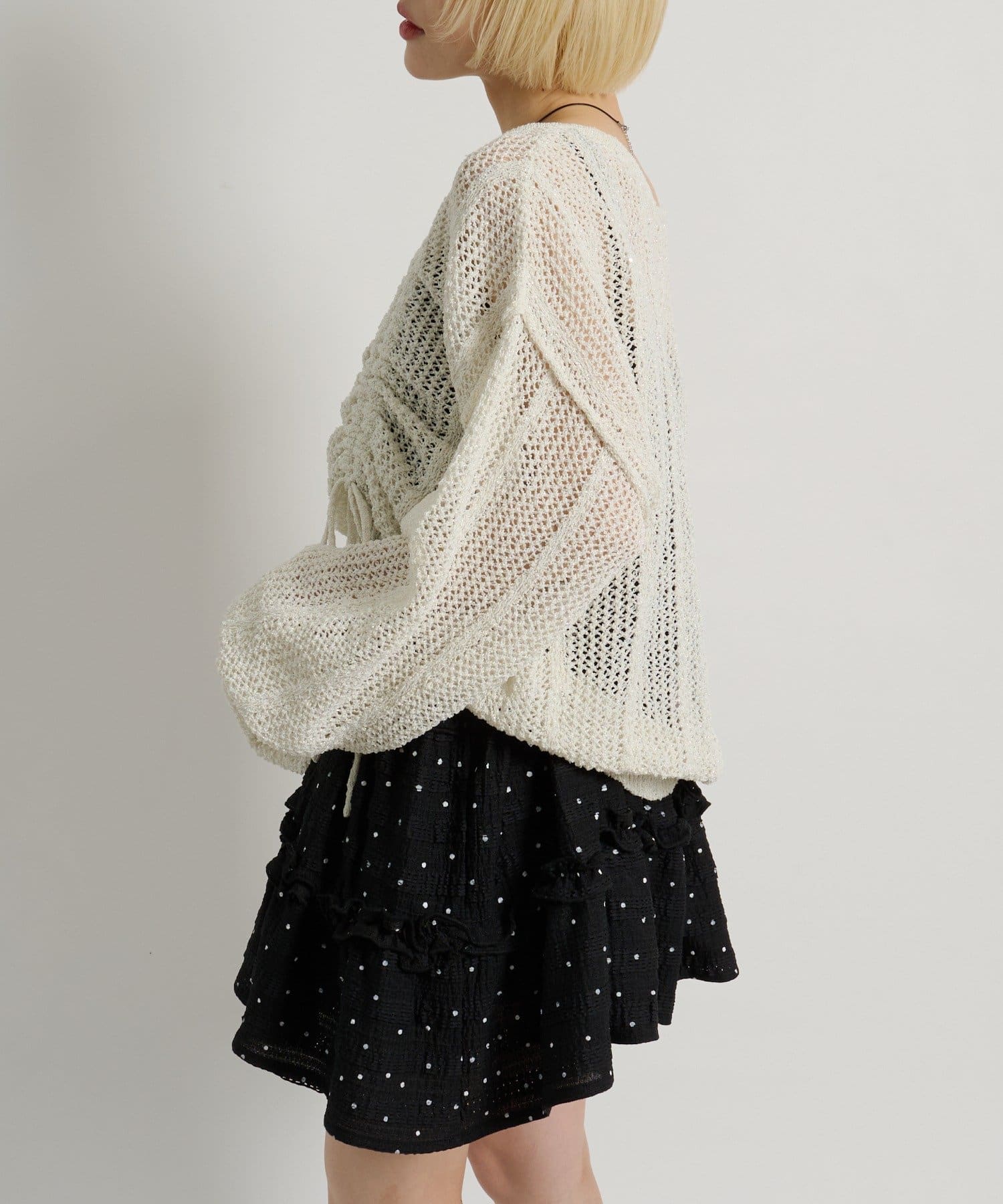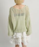繊細なラメ糸にスパンコールを織り込んだ、キラキラかわいいドロスト春ニット