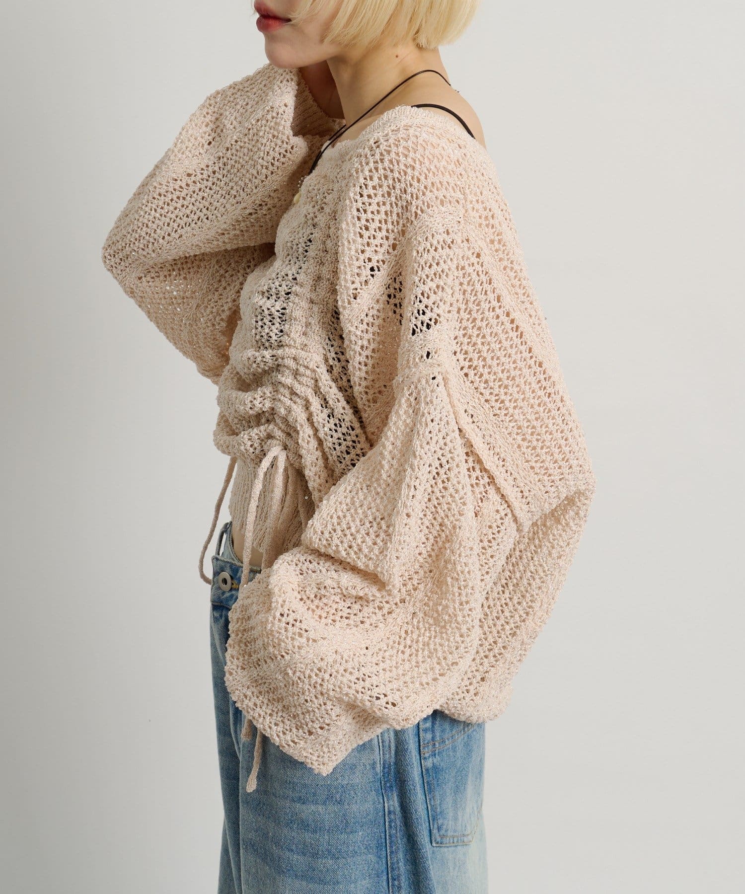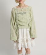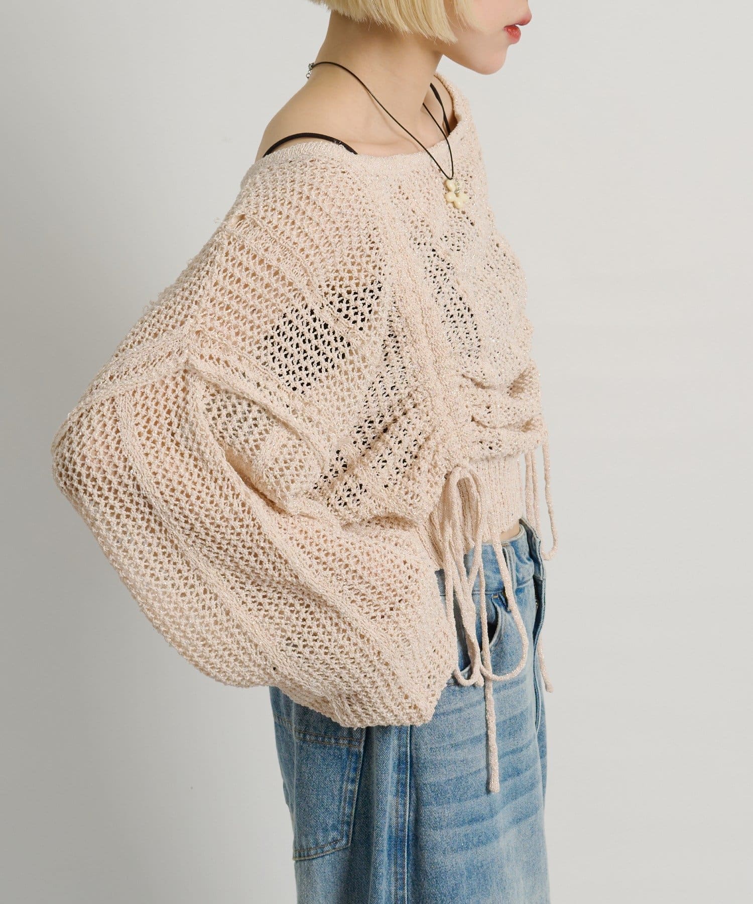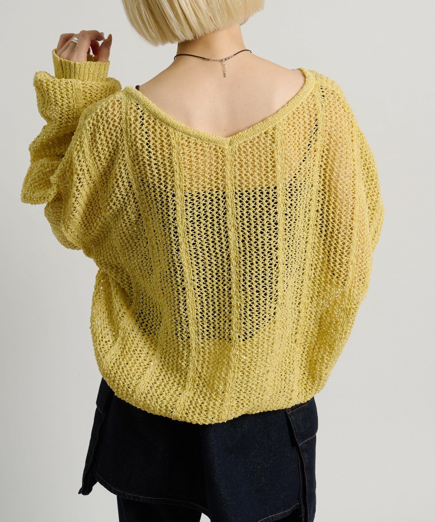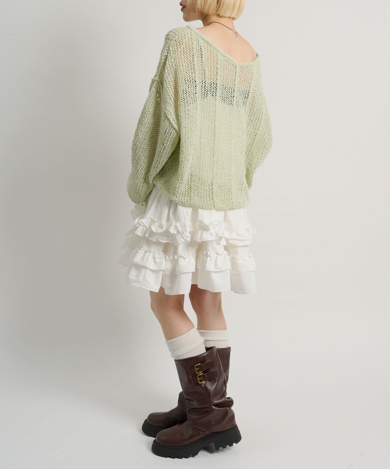 繊細なラメ糸にスパンコールを織り込んだ、キラキラかわいいドロスト春ニット